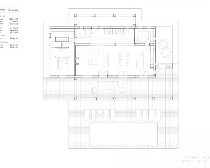 Nybygget villa i Moraira med privat basseng og havutsikt. I første etasje finner vi en stor stue-spisestue og åpen kjøkkenløsning, hovedsoverom med garderobeskap og bad, terrasse foran med tilgang til bassenget. I første etasje er det 3 soverom med innebygde garderober, 3 bad med eget bad. I tillegg har du kjeller på 81m2 med vinkjeller. Villaen skal bygges med materialer av høy kvalitet. Kjøkkenet velges av byggherren, kjøkkenskap, benkeplate og hvitevarer. Klimaanlegg med klimakontrollsystem (kondens) i stuer og soverom. Mitsubishi merke. Svømmebassenget skal bygges med et utendørs dusj (varmt/kaldt vann tilkobling). Automatisk inngangsport for bilene med fjernkontroll og automatisk gangdør. Hage velges av oppdragsgiver. Moraira er en liten by med gode restauranter, barer og mange supermarkeder rundt. Det er en veldig hyggelig strand rett ved siden av byen som er flott for familier. Strandpromenaden tilbyr en fantastisk utsikt over Penon Ifach over bukten i Calpe. Kystveien dit er vel verdt å gjøre med noen spektakulære utsikter. Moraira ligger omtrent 1 time og 15 minutter nordover opp A7 fra Alicante flyplass, det er ganske enkelt å komme til. Det er omtrent samme avstand eller litt mindre sør fra Valencia flyplass.