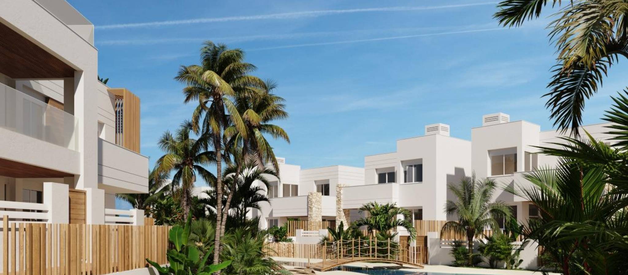 Nybyggede villaer og bungalower bare 250 meter fra stranden i Mar de Pulpí Eksklusivt boligprosjekt med villaer og bungalower nær sjøen Oppdag et eksepsjonelt nytt boligprosjekt bare 250 meter fra La Entrevista-stranden i Mar de Pulpí, Almería. Dette eksklusive boligkomplekset tilbyr to forskjellige boalternativer: 10 frittliggende villaer og 8 bungalower, hver designet for å tilby romslige interiører og utendørsområder av høy kvalitet. Dette prosjektet ligger i et av de mest fredelige og naturskjønne områdene på Costa de Almería, og er ideelt for deg som ønsker et moderne og komfortabelt hjem nær sjøen, omgitt av naturlig skjønnhet og alle nødvendige fasiliteter. Luksuriøse villaer med kjellergarasje og private terrasser Villaene har tre romslige soverom, hvert med eget bad. I første etasje finner du et romslig soverom, mens den øvre etasjen har to soverom til med tilgang til private terrasser. Kjellergarasjen, som er direkte koblet til villaen, har plass til minst to biler og sykler, med naturlig lys og ventilasjon, samt god lagringsplass. Stilfulle bungalower med private hager eller solterrasser Velg mellom bungalower i første etasje med private hager eller alternativer i øverste etasje med private solarium. Hver bungalow har to soverom, to bad og et privat basseng eller boblebad. De har også heis, noe som forbedrer tilgjengeligheten og komforten. Hovedsoverommet har walk-in-garderober og store innebygde garderober, mens store terrasser med barområder gjør det til en glede å underholde og slappe av. Komfort, stil og førsteklasses funksjoner Alle boligene i prosjektet er utstyrt med: Doble vinduer med solbeskyttelse og termisk isolasjon Elektrisk gulvvarme i alle bad Klimaanlegg (varme og kulde) Motoriserte persienner Moderne bad med hengende møbler, speil og dusjvegger Energieffektiv varmtvannsproduksjon via aerotermiske systemer Boligområdet har også et felles svømmebasseng i flere nivåer, som tilbyr et fellesområde for avslapning og hygge. Førsteklasses beliggenhet på Costa de Almería Bare 250 m fra sandstranden og kun 3 km fra San Juan de los Terreros kan beboerne nyte en rekke fasiliteter, inkludert supermarkeder, restauranter, butikker og viktige tjenester. Avstander til viktige severdigheter: Strendene i La Entrevista – 0,25 km San Juan de los Terreros – 3 km Aguilón golfbane – 7 km Águilas sentrum og marina – 12 km Murcia-Corvera flyplass – 95 km Almería flyplass – 115 km Sikre deg ditt drømmehus ved sjøen Enten du velger en villa eller en bungalow, tilbyr dette boligprosjektet en perfekt blanding av kvalitet, beliggenhet og livsstil. Kontakt oss i dag for mer informasjon eller for å avtale en visning – ditt ideelle hjem ved kysten venter på deg i Mar de Pulpí.