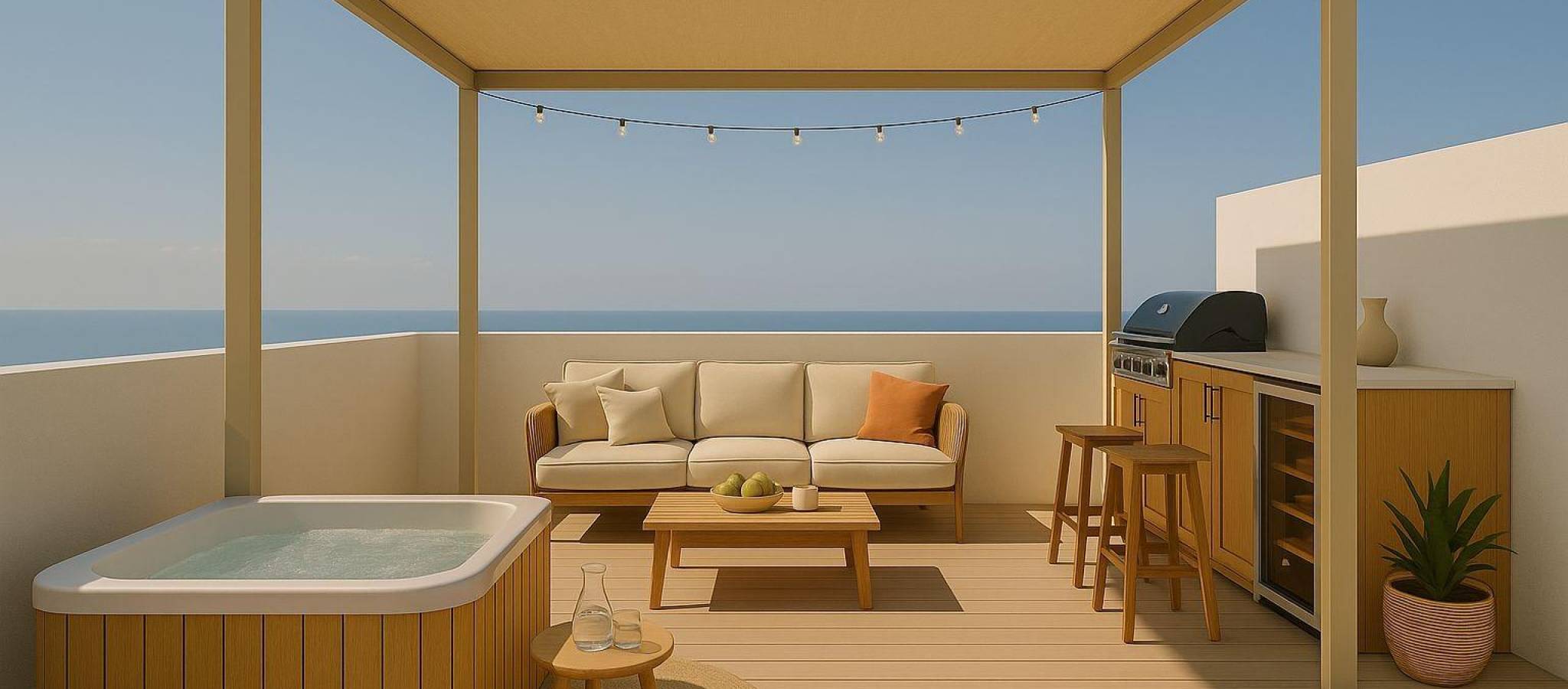 Nybyggede penthouse-leiligheter i Guardamar del Segura med privat solarium Moderne boende i hjertet av Guardamar Oppdag dette eksklusive nye boligprosjektet i sentrum av Guardamar del Segura, en sjarmerende kystby på Costa Blanca Sør, kjent for sine 11 km med sandstrender og store furuskog. Dette boligprosjektet tilbyr moderne design, utmerket finish og en uovertruffen beliggenhet bare 550 m fra stranden og nær alle tjenester som supermarkeder, rådhuset, helsestasjon, busstasjon, restauranter og butikker. Romslige boliger med privat solarium Penthouse-leilighetene har 3 soverom med innebygde garderober, 2 bad (ett ensuite), et åpent kjøkken integrert i stuen og direkte tilgang til en stor terrasse. Hver bolig har også et privat solarium på taket med bod, perfekt for å nyte solen hele dagen. Parkering er tilgjengelig i en nærliggende bygning. Eksklusive fellesarealer Bebyggelsen tilbyr godt utformede fellesarealer for avslapning og fritid: Solarium på taket med sittegrupper og lekeområde for barn Heis for enkel tilgang Livsstil i Guardamar del Segura Guardamar er mye mer enn et strandmål; det er en livlig by med tjenester og aktiviteter hele året. Hver onsdag arrangerer byen et populært ukentlig marked som tiltrekker besøkende fra omkringliggende områder. Marinaen tilbyr vannsport og aktiviteter hele året, mens sportskomplekset inkluderer tennisbaner, paddlebaner, fotballbaner og et oppvarmet innendørsbasseng. Det lokale biblioteket tilbyr også gratis Wi-Fi og offentlige datamaskiner. Strategisk beliggenhet på Costa Blanca Dette boligområdet har en utmerket beliggenhet med gode forbindelser til nærliggende attraksjoner: Guardamar-stranden: 550 m Golfbaner: 6,5 km Alicante–Elche internasjonale lufthavn: 20 km Torrevieja: 12 km Alicante sentrum: 35 km Kjøpesentre som La Zenia Boulevard: 25 km Et perfekt hjem eller en perfekt investeringsmulighet Med sin privilegerte beliggenhet, moderne design og nærhet til både stranden og viktige tjenester, er disse nybygde leilighetene i Guardamar del Segura ideelle som permanent bolig, feriebolig eller investering. Kontakt oss i dag for å avtale en visning og sikre deg ditt nye hjem ved Middelhavet.