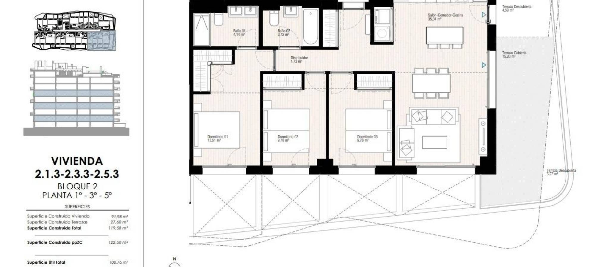 Luksusresort i Villajoyosa - et paradis ved havet Oppdag et unikt boligkompleks i Playa del Torres Dette eksklusive nybygget ligger mindre enn 5 minutters gange fra den rolige Playa del Torres i Villajoyosa, og tilbyr 164 moderne leiligheter og toppleiligheter med 1 til 3 soverom. Området er designet for å tilby den ultimate livsstilen, og kombinerer luksus, avslapning og enestående fasiliteter i rolige middelhavsomgivelser. Eksepsjonelle fasiliteter for alle beboerne Hjertet i dette prosjektet er Roof Top, som ligger på taket av blokk 2. Dette gjennomtenkte området har et fantastisk basseng med panoramautsikt, chill-out-områder, en grillsone, et flerbruksområde og et lysthus som er perfekt for sosialt samvær eller for å slappe av. Innendørs sosial salong, ideell for gourmetmiddager med venner eller som et kontorfellesskap. Komplekset har også noe for de som elsker vann: Bassenger i tropisk stil med tilgang til stranden. Et oppvarmet svømmebasseng, et barnebasseng og et oppvarmet boblebad. Treningsentusiaster kan glede seg over: Treningssentre innendørs og utendørs, komplett med en calisthenics-sirkel. En puttinggreen og minigolf for fritidsaktiviteter. Moderne hjem med førsteklasses funksjoner Hver leilighet er utstyrt med: Et fullt utstyrt kjøkken med hvitevarer av høy kvalitet, inkludert kjøleskap, mikrobølgeovn, stekeovn, oppvaskmaskin og integrert vaskemaskin/tørketrommel. Energieffektive aerotermiske systemer for varmtvann og klimaanlegg. Gulvvarme med strålevarme på badene. PVC-vinduer av høy kvalitet med varmeisolasjon og doble vinduer. Privat parkeringsplass og lagringsplass for ekstra bekvemmelighet. Bygningen har energiklassifisering A, noe som sikrer maksimal effektivitet og bærekraft. Perfekt beliggenhet i Villajoyosa Dette komplekset ligger i Playa del Torres, og tilbyr et fredelig tilfluktssted omgitt av naturskjønnhet. Strandens krystallklare vann og turkise fargetoner danner et idyllisk bakteppe for avslapning. Anlegget har en praktisk beliggenhet: 2 km fra Villajoyosas sjarmerende sentrum. 10 km fra Benidorm, med sitt pulserende natteliv og shopping. 30 minutter med bil til Alicante lufthavn. Villajoyosa, kjent for sine fargerike hus og rike historie, er fortsatt en autentisk middelhavsperle. Byen ble nylig kåret til «Beste hemmelige reisemål i Europa 2024» av European Best Destinations, og her blandes tradisjon, naturskjønnhet og ro. Drømmehuset ditt venter i Playa del Torres Opplev det beste av moderne livsstil i et naturparadis. Med sin førsteklasses beliggenhet, luksuriøse fasiliteter og moderne design er dette prosjektet perfekt for deg som ønsker deg et hjem ved sjøen. Kontakt oss i dag for å avtale et besøk og gjøre denne fantastiske eiendommen til din!