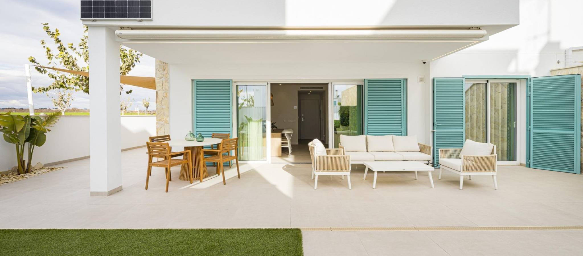 Nybygget boligkompleks med bungalowleiligheter med felles svømmebasseng i Torre de la Horadada, 800 meter fra stranden.