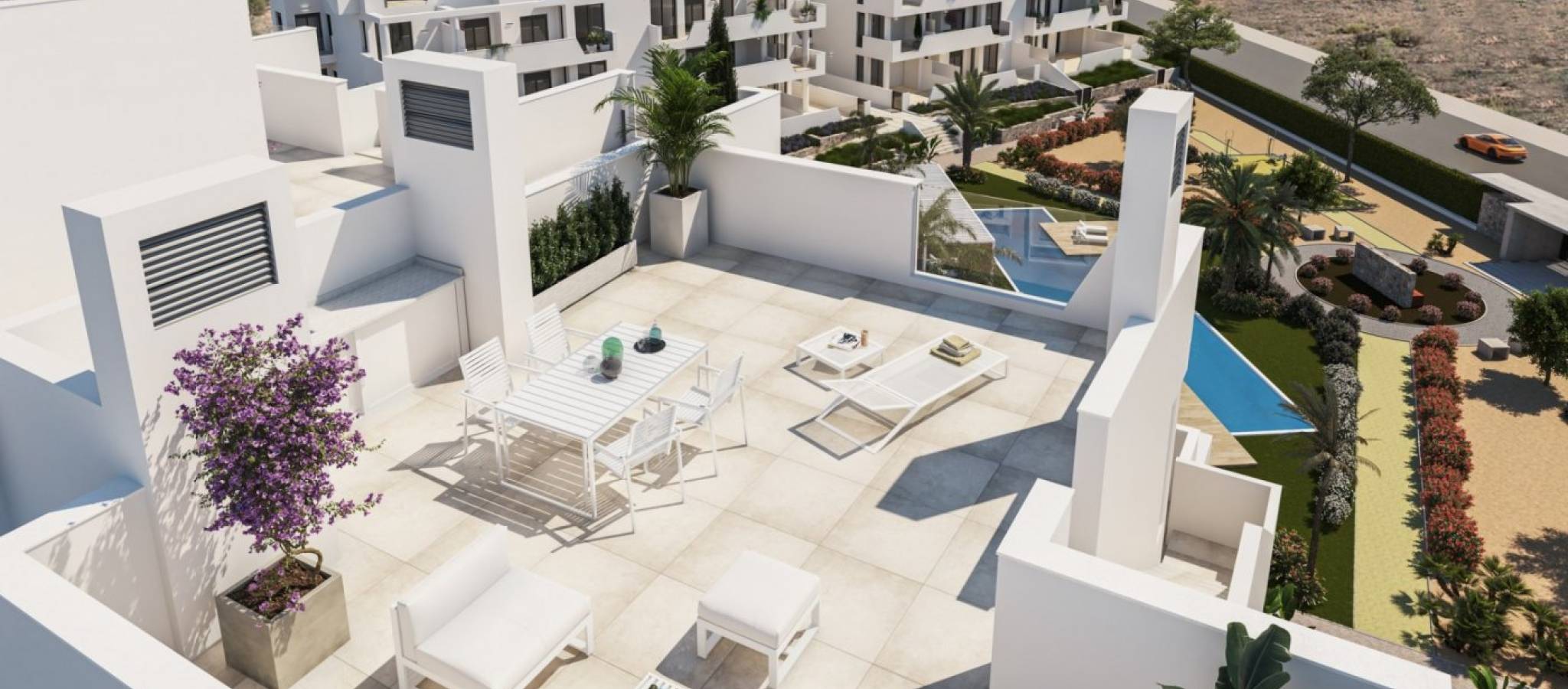 NYBYGG BOLIG I PRIVAT GATED RESORT I MURCIA-PROVINSEN Nybygget boligkompleks har 60 leiligheter fordelt på 4 blokker med terrasser for første, første og andre etasje, felles svømmebasseng, oppvarmet svømmebasseng og solarium med sommerkjøkken på toppleilighetene, for å nyte alle soltimer hver dag hele året. Eiendommene har 2 soverom og 2 bad samt parkeringsplass og bod i kjeller. Disse boligene er designet med en moderne stil og åpen planløsning, som består av et fullt utstyrt kjøkken og stue/spisestue. Eiendommene vil oppfylle de høyeste standarder og inkluderer: Kjøkken komplett møblert og utstyrt med stekeovn og mikrobølgeovn i søyle, integrert kjøleskap og oppvaskmaskin, induksjonstopp og avtrekksvifte. LED-belysning: inne i eiendommen (spisestue, kjøkken, korridorer og bad), samt i uteområder. Fôrede garderober med skuffer. Motoriserte persienner på soverom. Gulvvarme på bad. Fullt utstyrt bad med toalett, servantskap, speil, dusj med regneffekt og skjermpaneler. Pre-installasjon for kanalklimaanlegg. Forhåndsinstallasjon av ladepunkt for elbiler. Solarium med sommerkjøkken, med forhåndsinstallasjon for elektriske apparater. Felles svømmebasseng. Oppvarmet svømmebasseng. Parkeringsplass og bod i kjeller. Ligger i et privat inngjerdet feriested, med hovedinngang og 24 timers vakthold. Feriestedet er designet rundt et imponerende grøntområde på 126.000 m2. Den består av gang- og sykkelstier, sportsfasiliteter, padle- og tennisbaner, en minigolfbane, hager, hundeparker, fritidsområder, klubbhus... Også i det sentrale området er juvelen til feriestedet, en krystallklar kunstig innsjø på nesten 17.000m2 vannflate, omgitt av hvite sandstrender og palmetrær, som bringer et stykke av Karibien til Murcia-regionen. Det er 2 øyer i innsjøen, en av dem har sin egen bar, det er også "strand Chiringuitos" spredt rundt innsjøen. Anlegget har en strategisk beliggenhet mindre enn 4 km fra stranden og byen Los Alcázares, hvor du kan utøve ulike vannsporter, omgitt av flere golfbaner og byen Cartagena mindre enn 15 minutter med bil og 22 km fra Murcia flyplass, har derfor et bredt kultur-, gastronomisk- og sportstilbud innen rekkevidde.