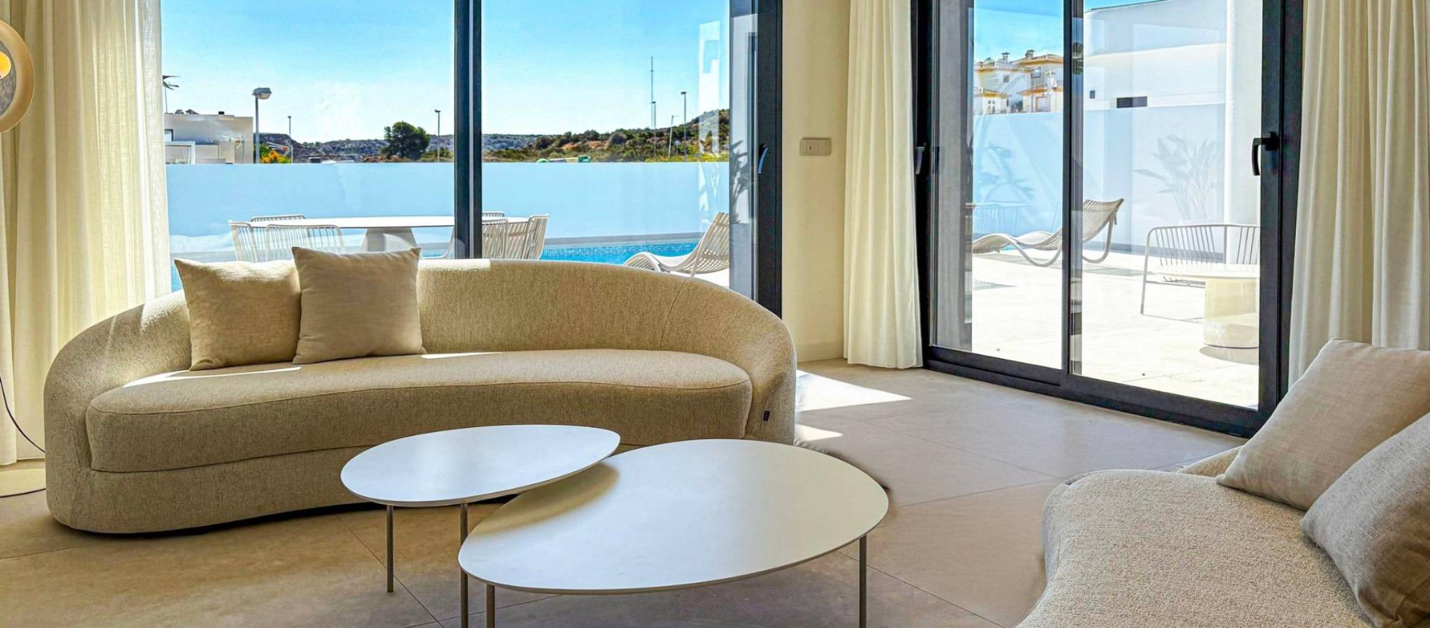 Moderne luksusvilla med fjellutsikt i Ciudad Quesada, Costa Blanca Moderne design og eksepsjonell komfort Oppdag denne elegante, nybygde villaen i Ciudad Quesada, et av de mest ettertraktede boligområdene på Costa Blanca. Villaen ligger på en 300 m² stor tomt med en vakker hage og et privat svømmebasseng på 4 x 10 m, og tilbyr den perfekte kombinasjonen av moderne arkitektur, naturlig skjønnhet og middelhavskomfort. Eiendommen har 245 m² innvendig areal fordelt på to etasjer, designet for å maksimere lys, plass og funksjonalitet. De store vinduene fyller oppholdsrommene med naturlig lys og gir fantastisk utsikt over fjellene og naturen rundt. Romslig planløsning med fleksible boalternativer Villaen har 4 soverom, med mulighet for å lage et femte soverom eller en ekstra stue, slik at den passer perfekt til din livsstil. I hovedetasjen finner du en åpen stue og spisestue som er koblet til et moderne, fullt utstyrt kjøkken med toppmoderne hvitevarer, og som skaper en kontinuerlig flyt mot terrassen og bassengområdet, ideelt for å underholde eller slappe av utendørs. I underetasjen (kjelleren) tilbyr de resterende soverommene en frisk og rolig atmosfære, med direkte tilgang til hagen. Eiendommen inkluderer også en lukket garasje, vaskerom og høykvalitets finish overalt. Høykvalitets finish og bærekraftige funksjoner Hver detalj i denne villaen er nøye designet for å tilby komfort og effektivitet. Inkluderer: Fullt utstyrt kjøkken med innebygde hvitevarer Bad med møbler, dusjvegger og elektriske håndkletørkere Kanalisert klimaanlegg (fullt installert) Pansret inngangsdør for maksimal sikkerhet Privilegert beliggenhet i Ciudad Quesada Denne villaen ligger i et eksklusivt og rolig område, og har en uovertruffen beliggenhet nær alt. La Marquesa golfbane ligger bare 1 km unna, noe som gjør det til et paradis for golfelskere. De blåflaggede strendene i Guardamar del Segura ligger bare 6 km unna, mens Torrevieja og Orihuela Costa ligger mindre enn 15 minutter unna. Alicante internasjonale lufthavn ligger omtrent 40 km (35 minutter) unna, noe som garanterer utmerkede transportforbindelser. Opplev den middelhavske livsstilen Omgitt av appelsinlunder, sportsklubber, restauranter og alle nødvendige tjenester, tilbyr Ciudad Quesada et livlig og samtidig rolig miljø. Det er det ideelle stedet for de som søker en luksuriøs bolig under solen, perfekt som permanent bolig, feriebolig eller investeringseiendom. Kontakt oss i dag for å avtale en visning og opplev det beste av middelhavslivet i ditt nye hjem i Ciudad Quesada.
