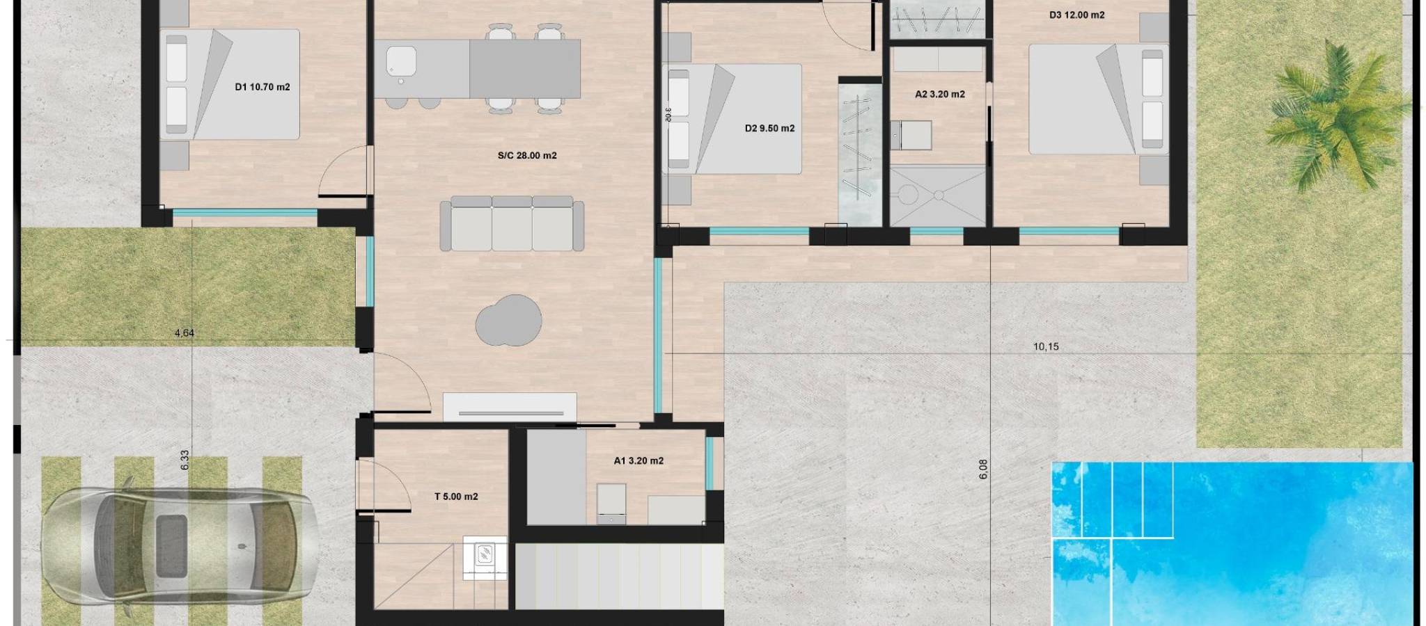 NYBYGG TOMANNSBOLIG VILLAER I ROLDAN Nybygde villaer med 3 soverom med parkering foran, har steinmur, privat svømmebasseng bak, stort takterrasse og bod i Roldan, Torre-Pacheco. Villaene er designet på ett plan med forhøyet tak til kjøkkenområdet, hver villa har wrap rundt terrasse / sol soner i første etasje og et stort privat solarium i første etasje for å nyte timer med solskinn, hele året. 3 soverom (hovedsoverom med eget bad) og separat familiebad ... designet med en moderne 'øko' stil og åpen planløsning, bestående av et utstyrt kjøkken og stue / spisestue, et oppbevaringsrom foran og en privat sommerterrasse. Villaene er utstyrt med et bakre privat svømmebasseng med utendørs dusj, solarium, terrasseområder, fullt utstyrt kjøkken og bad med led-speil, garderober med skuffer, innvendig / utvendig belysning, forhåndsinstallert klimaanlegg. Med vinklede vegger og steinkledning foran og trapperommet, gjør denne villaen virkelig pop med stil. Utviklingen ligger i et boligområde i Roldan, omgitt av tjenester, parker, idrettsanlegg, to golfbaner og bare 12 minutter fra de fantastiske strendene i Middelhavet og Mar Menor. En utvalgt signatur stil utvikling - bare 20 ett nivå moderne villaer - Alle nyter sjenerøse tomtestørrelser, med privat svømmebasseng og takterrasse. Roldan selv er en tradisjonell by med alle lokale fasiliteter du trenger, inkludert supermarkeder, restauranter, barer, helseklinikk, apotek, politistasjon, bensinstasjon, mekanikere, tannleger, leger og mer. De nærliggende golfresortene La Torre og Terrazas er lett tilgjengelige, Corvera flyplass ligger 15 minutter unna og strendene i Mar Menor bare 20 minutters kjøretur.