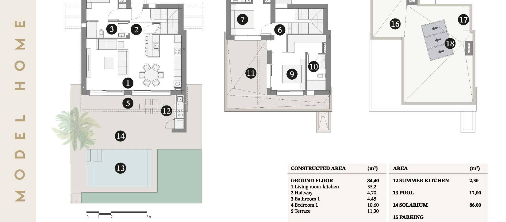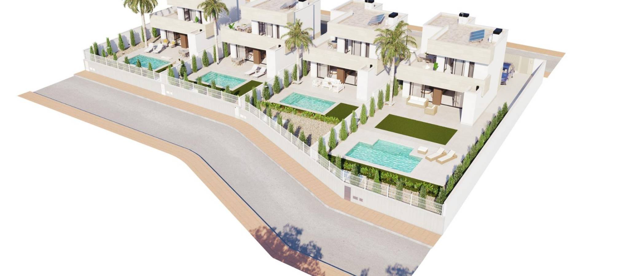 Moderne nybyggede villaer nær stranden i Santiago de la Ribera Moderne kystliv på Costa Cálida Oppdag et eksklusivt boligprosjekt med frittliggende villaer i Santiago de la Ribera, kun 750 meter fra den vakre kysten av Mar Menor. Denne sjarmerende kystbyen i Murcia-regionen er kjent for sin avslappede middelhavsstil, rene sandstrender og sol hele året. Her kan du nyte den perfekte blandingen av privatliv, komfort og nærhet til alle nødvendige fasiliteter, fritidsaktiviteter og utendørsaktiviteter. Enten som permanent bolig, feriehus eller investering med stort utleiepotensial, tilbyr disse villaene en ypperlig mulighet til å omfavne kystlivet i et av de mest attraktive områdene på Costa Cálida. Elegant design og funksjonell planløsning Hver villa er designet i en moderne arkitektonisk stil og med høy funksjonalitet, og er fordelt på to etasjer for å maksimere plass og naturlig lys. Boligene har 3 romslige soverom, hvorav ett i første etasje 3 fullt utstyrte bad, alle med eget bad Privat hage og svømmebasseng Terrasse i første etasje, ideell for soling og avslapning Privat parkering med motorisert port Denne smarte utformingen sikrer komfort og privatliv, samtidig som den gir generøse uteområder for underholdning, bespisning eller bare for å nyte middelhavsklimaet. Høy kvalitet på finish og førsteklasses funksjoner Disse eiendommene er bygget etter høye standarder med topp kvalitet på finish og moderne installasjoner, inkludert Forsterket sikkerhetsdør Motoriserte persienner Fullt utstyrt kjøkken med hvitevarer Bad med møbler, speil og gulvvarme Forhåndsinstallert for kanalisert klimaanlegg Privat svømmebasseng To solcellepaneler med mikroinverter Disse boligene er designet for bruk hele året og sikrer effektivitet, komfort og stil i hvert hjørne. Utmerket beliggenhet nær sjøen og tjenester Dette boligprosjektet ligger i et rolig boligområde, men likevel omgitt av tjenester, og tilbyr uovertruffen bekvemmelighet med rask tilgang til strender, marinaer, butikker og golfbaner. Avstander inkluderer Mar Menor-strendene 0,75 km La Ribera kjøpesenter 2 km Roda Golf 5 km Lo Pagán Marina 4 km Dos Mares kjøpesenter 3 km San Javier flyplass 6 km Murcia 40 km Cartagena 30 km Området er perfekt for naturelskere, vannsportentusiaster og alle som søker en livlig, men fredelig livsstil ved sjøen. Gjør din middelhavsdrøm til virkelighet Ikke gå glipp av sjansen til å eie en stilfull nybygget villa i en av de mest ettertraktede kystbyene i Murcia. Kontakt oss i dag for mer informasjon eller for å bestille en visning.