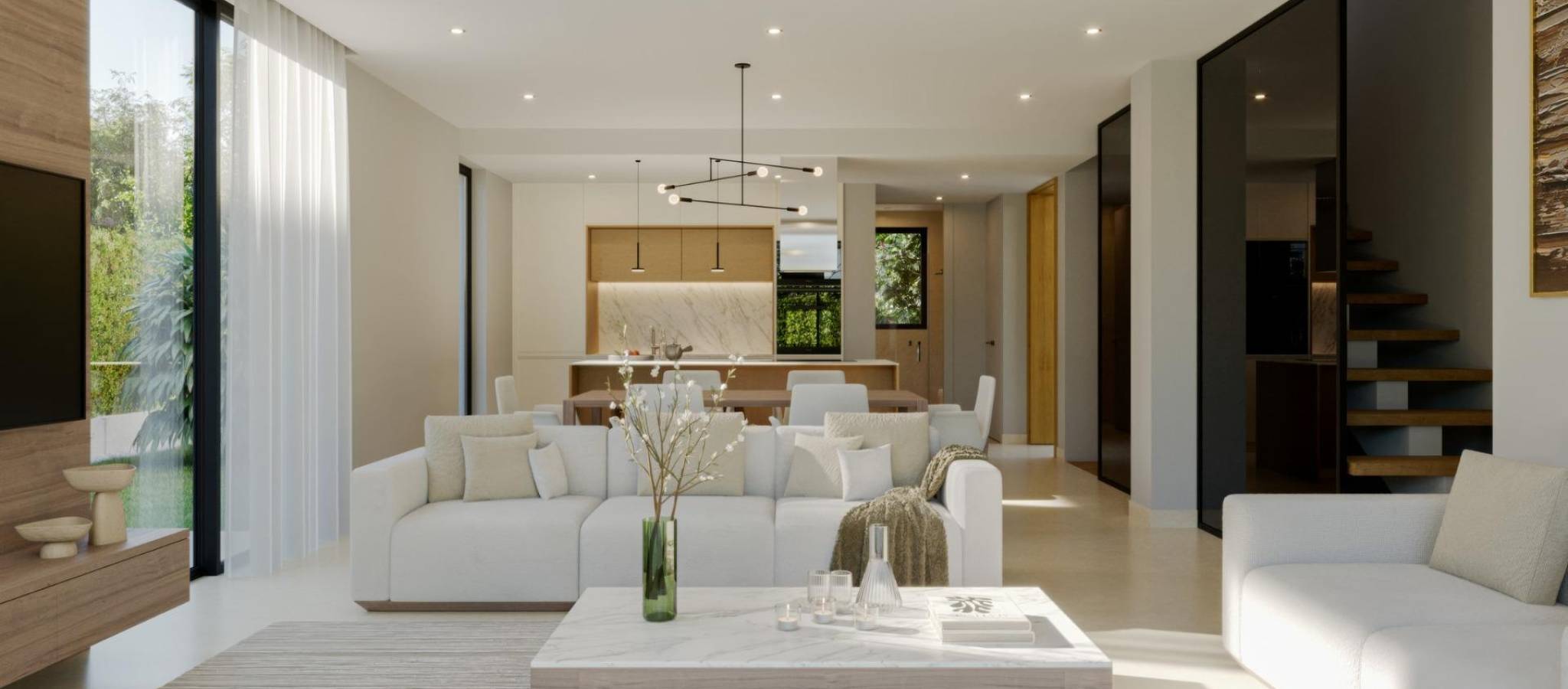 NYBYGGDE VILLAER I FINESTRAT Nybygget bolig med 9 villaer i Finestrat, i Sierra Cortina – en av de beste urbanisasjonene på Costa Blanca. Bolig består av 4 ulike typer boliger tilpasset kundenes behov. Noen av modellene kommer bygget over 1 eller 2 etasjer, med underbygg, solarium. Alle villaene har 3 soverom, 2 eller 3 bad, åpen kjøkkenløsning med stue, innebygde garderober, klimaanlegg og aerotermisk, utstyrt kjøkken, privat hage med basseng og parkering. Bolig som ligger i feriestedet Sierra Cortina, ved siden av to golfbaner, fornøyelsesparker, et stort kjøpesenter og noen få minutter fra strendene i Benidorm. Finestrat ligger i Marina Baixa-regionen på Costa Blanca, nær nabolandet Benidorm og ca. 40 kilometer fra byen Alicante og den internasjonale flyplassen. Landsbyen ligger i fjellsiden av Puig Campana og tilbyr vakker utsikt over fjellene, kysten og Middelhavet.