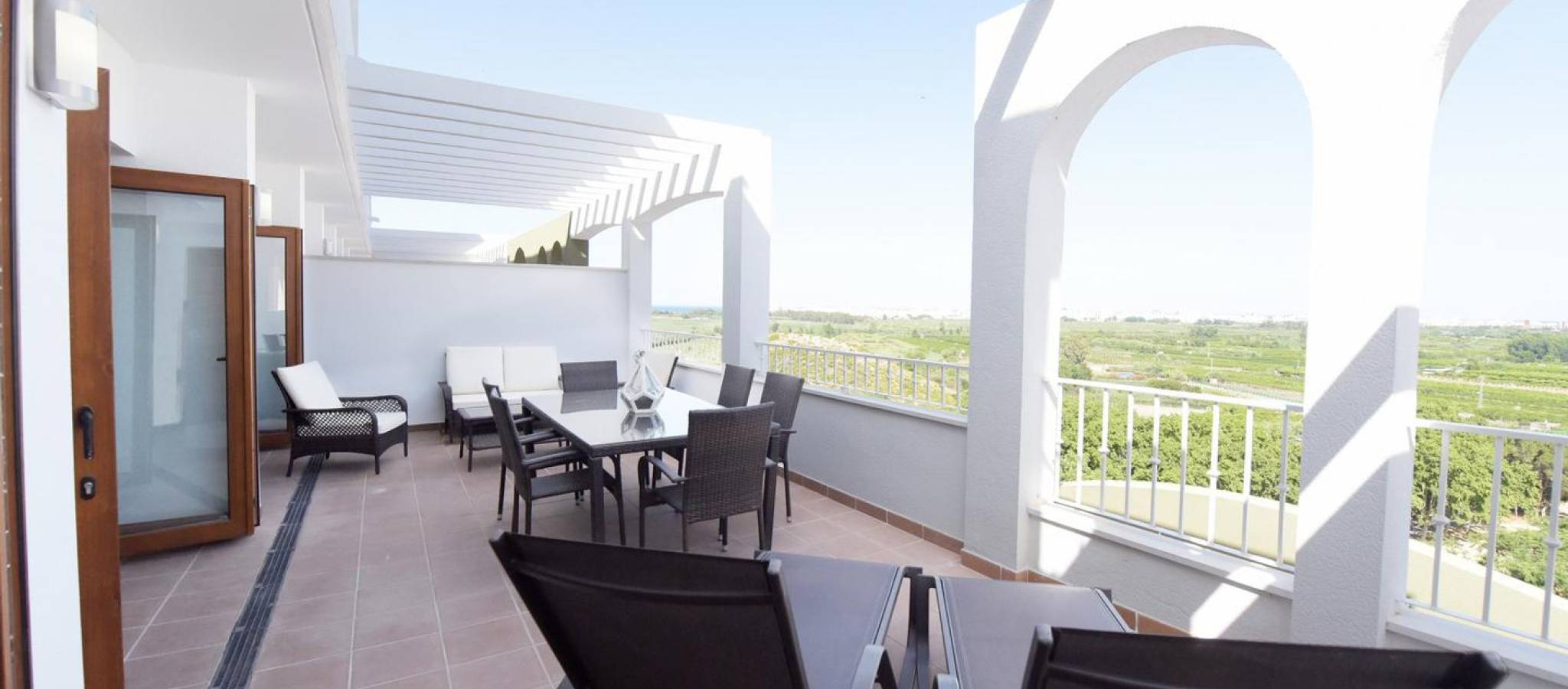 Nybyggede leiligheter med havutsikt i Xeresa Costa Blanca Nord Moderne boligområde med panoramautsikt Vi presenterer et eksepsjonelt nybygget boligprosjekt i et privat inngjerdet boligområde i Xeresa, med 1-, 2- og 3-roms leiligheter med 1 eller 2 bad og fantastisk utsikt. Hver bolig har en romslig terrasse på over 15 m2, med panoramautsikt over appelsinlundene, de omkringliggende fjellene eller Middelhavet i det fjerne. Dette boligprosjektet er designet for komfort, lys og naturlige omgivelser, og er ideelt for de som søker en fredelig livsstil nær kysten. Førsteklasses beliggenhet nær strender og tjenester Bare 3 km fra stranden og kun 1 km fra den sjarmerende landsbyen Xeresa, har beboerne enkel tilgang til butikker, kafeer og viktige tjenester. Togstasjonen i Xeraco, som ligger 3 km unna, tilbyr direkte forbindelser til Valencia by, mens den populære kystbyen Gandia ligger mindre enn 5 km fra komplekset, med kjøpesentre, restauranter, fritidsfasiliteter og en vakker marina. Høykvalitetsboliger designet for komfort og lys Alle leilighetene er gjennomtenkt designet slik at de viktigste oppholdsrommene får direkte naturlig lys og utsikt. Den åpne planløsningen forsterker romfølelsen og skaper en moderne, harmonisk atmosfære som er ideell for å nyte middelhavslivet. Boligene inkluderer parkering og bod, heis, forhåndsinstallert luftkanal-klimaanlegg, innredet og utstyrt kjøkken med induksjonstopp, avtrekksvifte, stekeovn og oppvaskmaskin, samt førsteklasses Porcelanosa-overflater overalt. Fellesfasiliteter i resort-stil Beboerne kan nyte tre spektakulære svømmebassenger, inkludert ett med fossefall og et annet tropisk basseng med hydromassasje. Fellesanlegget tilbyr også vakre hager med gangstier, et fullt utstyrt treningsstudio med toppmoderne maskiner, et flerbruks sosialt klubblokale, avslapningsområder med solsenger, dusjer og parasoller, samt store grønne områder designet for fritid og velvære. Avstander til interessante steder Strand 3 km Xeresa sentrum 1 km Xeraco togstasjon 3 km Gandia 5 km Valencia by 60 km Valencia flyplass 70 km Gandia Marina 6 km Nyt middelhavslivet i naturen og nær sjøen Oppdag en enestående mulighet til å eie et moderne hjem med utsikt over sjøen eller fjellene i et fredelig, men likevel godt tilknyttet miljø. Kontakt oss i dag for mer informasjon eller for å avtale en visning og sikre deg ditt nye hjem i Xeresa.