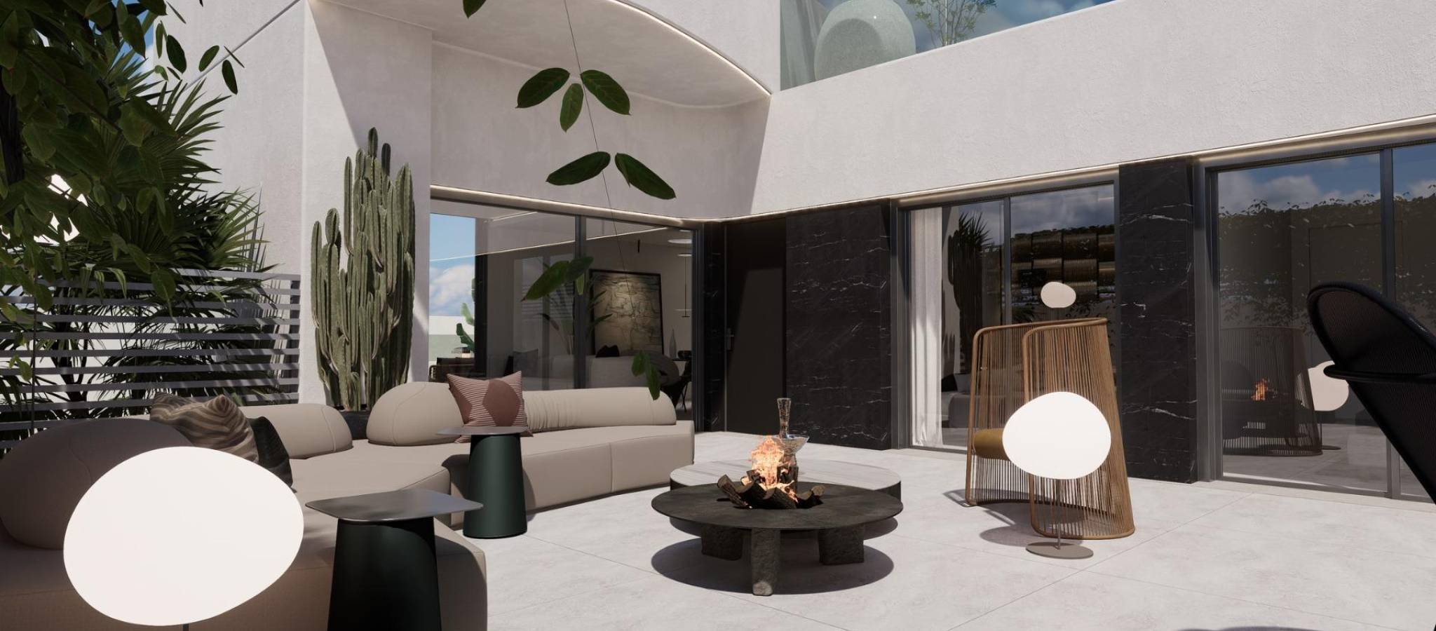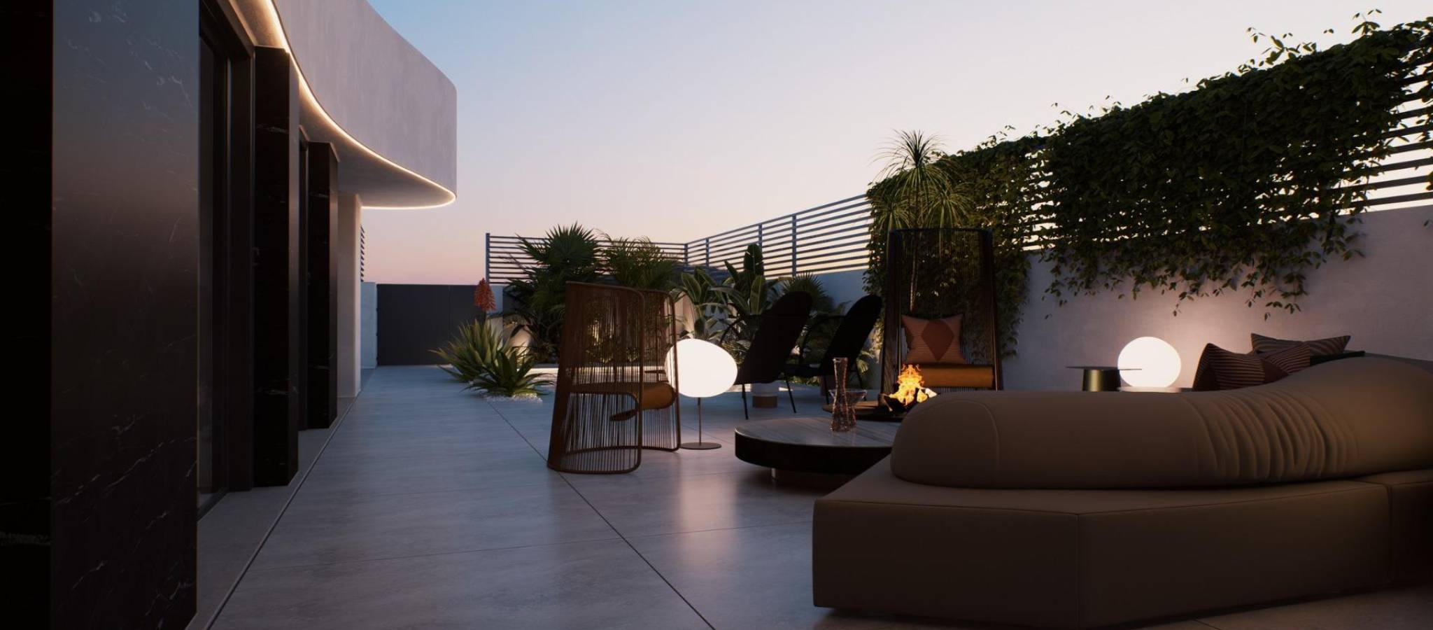 NYBYGDE VILLAER I ROJALES Nybygget eksklusivt boligkompleks med totalt 41 luksuriøse frittliggende villaer i Rojales. Hver av disse romslige villaene er på ca. 125 m2 og tilbyr muligheten til å tilpasse materialene etter kundens smak, med forskjellige tomtestørrelser, alt fra 336 m2 til den største på 420 m2. Villaene er optimalt orientert for å kunne nyte en behagelig temperatur hele året, med en L-form som gjør at praktisk talt hele huset har utsikt og tilgang til den romslige og luksuriøse hagen. Under byggeprosessen vil kvalifisert personell stå til rådighet for å utføre alle design og spesifikke behov hos kundene. Hagene er områder som vi er lidenskapelig opptatt av i våre prosjekter, og de er ideelle for avslapning og nytelse. Fra hagen og bassengområdet har du tilgang til hele eiendommen. Det eksklusive svømmebassenget, sammen med et stort solarium, er høydepunktene i dette drømmeområdet, designet for å gi full tilfredshet når du bor i vår utvikling. Med ankomsten av det gode været vil hagen og svømmebassenget være hovedpersonene, og du vil definitivt bli forelsket i ditt nye hjem. - Fullt utstyrt kjøkken i amerikansk stil. - Romslig stue og spisestue med store vinduer som skaper en komfortsone med naturlig lys i hele huset. - Luftsone og gulvvarme i hele huset. - Innvendig og utvendig LED-belysning. - Hovedsuite med eget bad og omkledningsrom og to doble soverom med gjestebad. - Hjemmeautomatisering. - Innebygde garderober med skyvedører i lys farge. Komplett innvendig finish. Bo i en moderne villa og nyt golf, strand, klima og middelhavsstil! Fasilitetene som er tilgjengelige i Rojales har også forbedret seg over tid, så det er nå hjem til et bredt utvalg av barer, restauranter, butikker og supermarkeder, sammen med flere banker, tannklinikker, apotek, frisørsalonger, aviskiosker, tobakksforretninger og et nytt medisinsk senter som ligger i Doña Pepa-urbaniseringen. Bare 10 minutter fra de beste strendene på Costa Blanca og 30 minutter fra Alicante internasjonale lufthavn.
