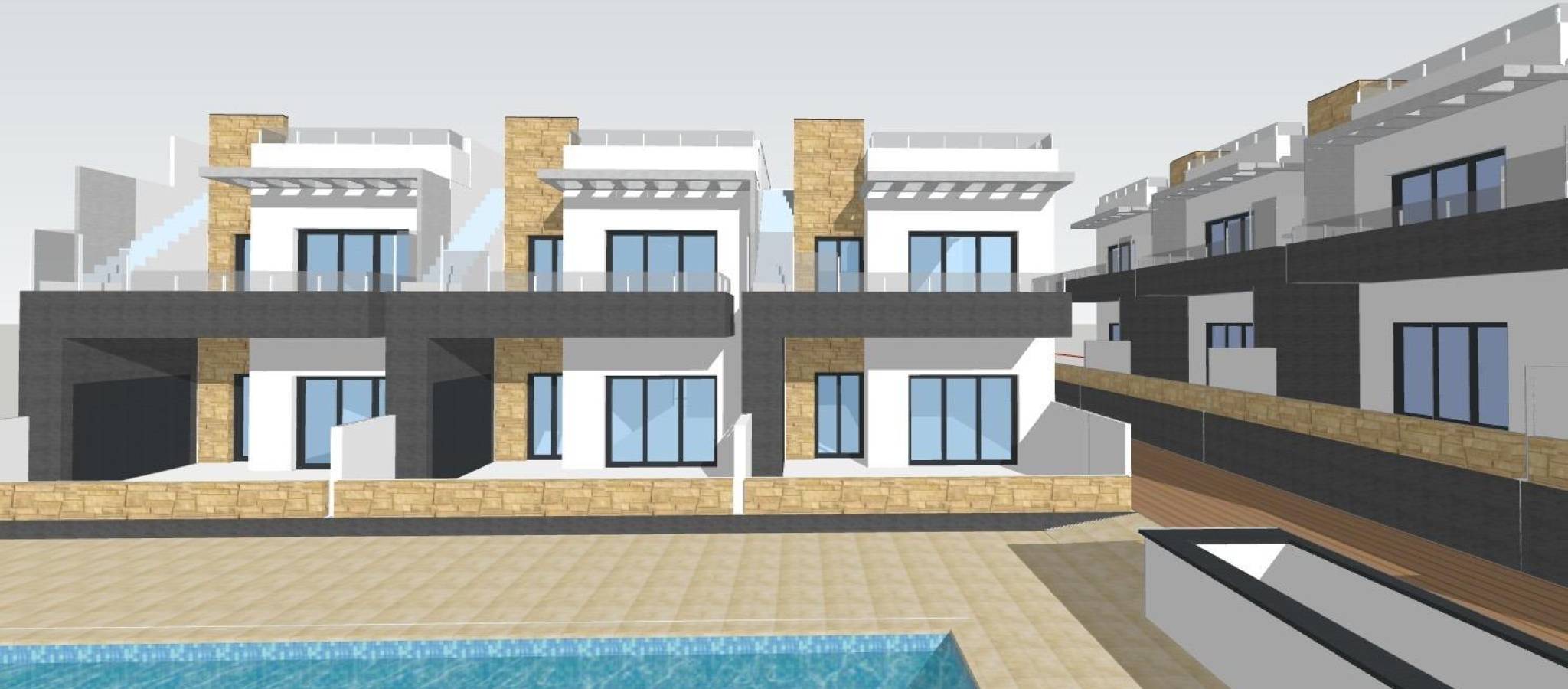 Nye bungalower til salgs i Bigastro Moderne boende på Costa Blanca Sør Eksklusivt boligprosjekt med 14 moderne boliger Oppdag dette nye boligprosjektet med 14 moderne bungalower i Bigastro, Alicante. Prosjektet ligger i et voksende område av byen, i gangavstand fra sentrum, og tilbyr komfort, stil og utmerket verdi i et fredelig middelhavsmiljø. Hver bolig er designet med høykvalitets finish og funksjonelle planløsninger som er ideelle for både permanent boende og ferieopphold. Moderne boliger med valg mellom planløsninger i første eller øverste etasje Prosjektet tilbyr romslige boliger med 3 soverom og 2 bad, inkludert eget bad i hovedsoverommet. Kjøpere kan velge mellom bungalower i første etasje med store private terrasser eller enheter i øverste etasje med terrasse og privat solarium på taket med åpen utsikt. Alle boliger har en underjordisk parkeringsplass og et bod, noe som gir maksimal bekvemmelighet. Komfort, design og energieffektivitet Hver bungalow har et åpent kjøkken integrert i stuen, innebygde garderober, en privat terrasse og forhåndsinstallert luftkondisjonering. Varmt vann leveres av et effektivt aerotermisk system, som sikrer lavere energiforbruk. Utbyggingen inkluderer også et stort felles svømmebasseng omgitt av vakre hager, perfekt for å slappe av og nyte det solrike klimaet på Costa Blanca. Førsteklasses beliggenhet med utmerkede transportforbindelser Bigastro er en sjarmerende by i Vega Baja-regionen, kjent for sin rolige atmosfære, lokale fasiliteter og utmerkede transportforbindelser. Fra dette boligområdet kan beboerne enkelt nå Bigastro sentrum 0,5 km Orihuela 5 km Playas de Guardamar del Segura 15 km Centro Comercial Zenia Boulevard 20 km Aeropuerto Internacional de Alicante 48 km Hospital Vega Baja 10 km Motorveien AP 7 gir rask tilgang til Alicante, Murcia og de omkringliggende kystbyene, noe som gjør Bigastro til et ideelt sted både å bo og pendle fra. Et voksende område med alle nødvendige tjenester Bigastro tilbyr supermarkeder, skoler, idrettsanlegg, parker og en rekke lokale butikker og restauranter. Kombinasjonen av bekvemmelighet, fredelige omgivelser og gode transportforbindelser har gjort det til et stadig mer populært boligområde for både lokale og internasjonale kjøpere. Sikre deg ditt nye hjem i Bigastro i dag Enten du er på jakt etter et moderne feriested eller en komfortabel bolig for hele året, er dette nybyggprosjektet i Bigastro en mulighet du ikke bør gå glipp av. Kontakt oss nå for mer informasjon eller for å avtale en visning.