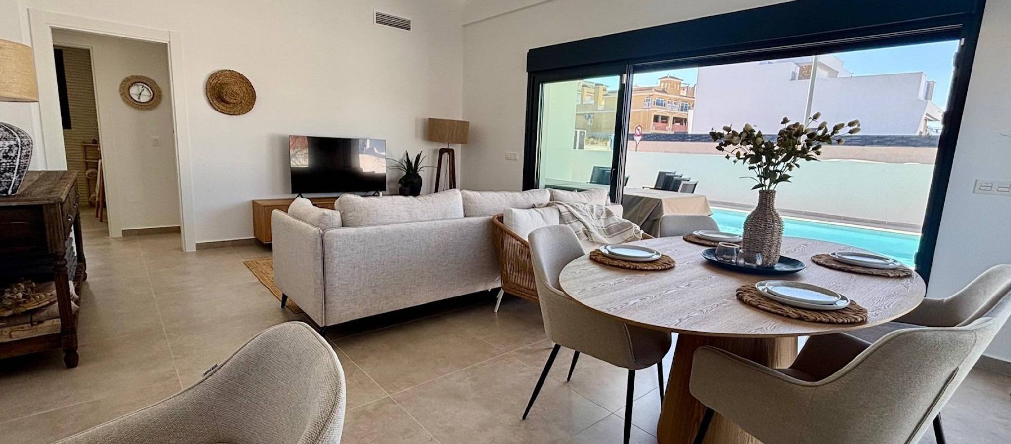 Moderne nybyggede villaer til salgs i Rafal: Costa Blanca-liv med stil og komfort Moderne villaer i en sjarmerende spansk landsby Oppdag disse eksepsjonelle nybyggede villaene som ligger i utkanten av Rafal, en tradisjonell og pittoresk by i hjertet av Costa Blanca. Rafal tilbyr en fredelig livsstil omgitt av frukthager, lokale butikker, kafeer og vennlige nabolag, samtidig som det gir utmerket tilgang til viktige fasiliteter. Byen ligger bare 30 km fra Alicante og den internasjonale flyplassen, og kun en kort kjøretur fra vakre middelhavsstrender og topp golfbaner. Premiumvillaer designet for moderne livsstil Hver villa ligger på en romslig tomt på over 370 m², og tilbyr god plass utendørs, privatliv og komfort. Disse enetasjesboligene har 3 romslige soverom og 2 moderne bad, perfekt designet for både familieliv og ferieliv. Det store uteområdet inkluderer et privat svømmebasseng på 7 x 3,5 m, over 100 m² åpen terrasse og en 15 m² overbygd veranda som er ideell for å slappe av i skyggen. Kjøpere har også muligheten til å legge til et solarium på taket og et oppbevaringsrom mot en ekstra kostnad, noe som gir enda mer plass til å nyte middelhavsklimaet og panoramautsikten. Høy kvalitet og energieffektivitet Disse villaene er bygget etter eksepsjonelle standarder med førsteklasses materialer og avanserte energisparende funksjoner. Høydepunkter inkluderer Vinduer fra Schüco for maksimal isolasjon og holdbarhet Motoriserte persienner Fotovoltaiske solcellepaneler for redusert energiforbruk Automatisk vanningsanlegg for hagen Motorisert inngangsport for kjøretøy Oppvarmede badegulv Hver detalj er designet for å gi komfort, effektivitet og en stilig, moderne finish. Ideell beliggenhet nær strender, golfbaner og tjenester Rafals strategiske beliggenhet gir enkel tilgang til viktige severdigheter Strendene i Guardamar del Segura 9 km Golfbanene La Finca og Vistabella 10 km Byen Orihuela 7 km Alicante internasjonale lufthavn 30 km Torrevieja 20 km Selve byen tilbyr supermarkeder, restauranter, skoler, medisinske tjenester og idrettsanlegg, noe som gjør den til et perfekt bosted året rundt. Nyt roen, solen og middelhavslivet Disse nybygde villaene i Rafal gir en enestående mulighet til å nyte en fredelig livsstil med alle moderne bekvemmeligheter, privat basseng og utmerket tilknytning til det beste Costa Blanca har å tilby, til en uovertruffen pris. Kontakt oss i dag for å sikre deg din nye villa i Rafal og begynn å leve det middelhavslivet du fortjener.