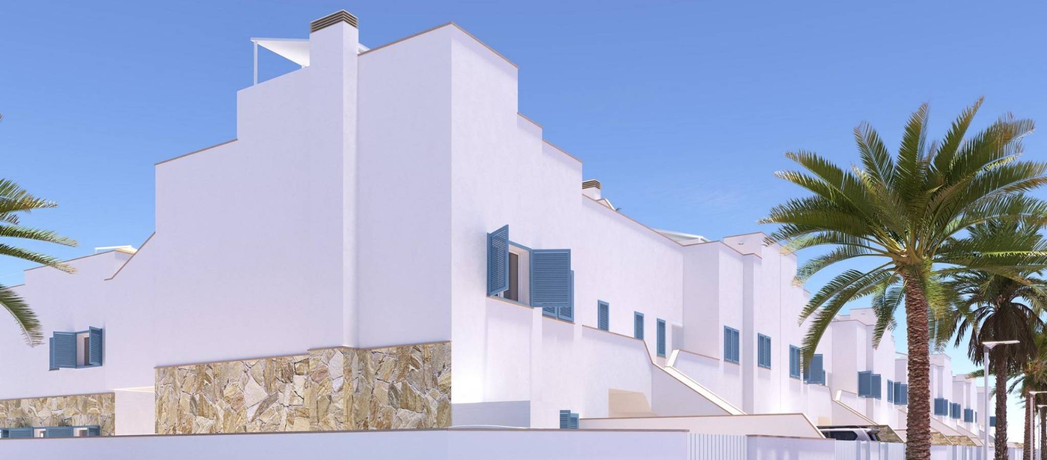 NYBYGD BOLIGKOMPLEKS I TORRE DE LA HORADADA Nybygget boligkompleks med bungalowleiligheter med felles svømmebasseng i Torre de la Horadada, 800 meter fra stranden. Alle eiendommene har 3 soverom, 2 bad, åpen kjøkkenløsning med stue, garderober og terrasse. Alle eiendommene har private hager og parkeringsplass. Pluss bungalower i toppetasjen har privat solarium. Torre de la Horadada ligger sør for Alicante med en vakker beliggenhet ved kysten. De vakre strendene i Torre de la Horadada og Mil Palmeras har fin sand og en vakker strandpromenade. Det er mange restauranter, barer og butikker, og du kan også drive med vannsport, dykking og snorkling. Det er gode forbindelser, bare 40 minutter fra flyplassene i Alicante og Murcias Corvera, med store kommersielle kjøpesentre og flere golfbaner innen rekkevidde.