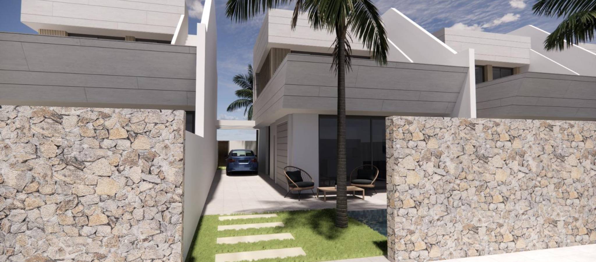 NYBYGDE VILLAER I SAN JAVIER Nybyggprosjekt av frittliggende villaer i San Javier. Nybygde villaer er fordelt over to etasjer pluss den romslige takterrassen med vakker utsikt over omgivelsene. I første etasje er det en lys stue med åpen kjøkkenløsning og utgang til terrassen, et dobbelt soverom med garderobe og et bad. I første etasje er det to romslige soverom, det ene med innebygd garderobe og det andre med omkledningsrom og bad en suite. Privat hage med basseng og parkeringsplass. San Javier ligger nær alle fasiliteter med lett tilgang til stranden, vannsport, butikker og transportnettverket. Her kan du nyte alle fasilitetene som San Javier har å tilby, som de lokale butikkene, barene og restaurantene, i tillegg til å være i nærheten av kjøpesentre, flyplassen i Murcia og alle de vakre stedene som finnes langs Mar Menor. Corvera/Murcia flyplass ligger 30 minutter unna, og Alicante flyplass ligger 45 minutter unna.