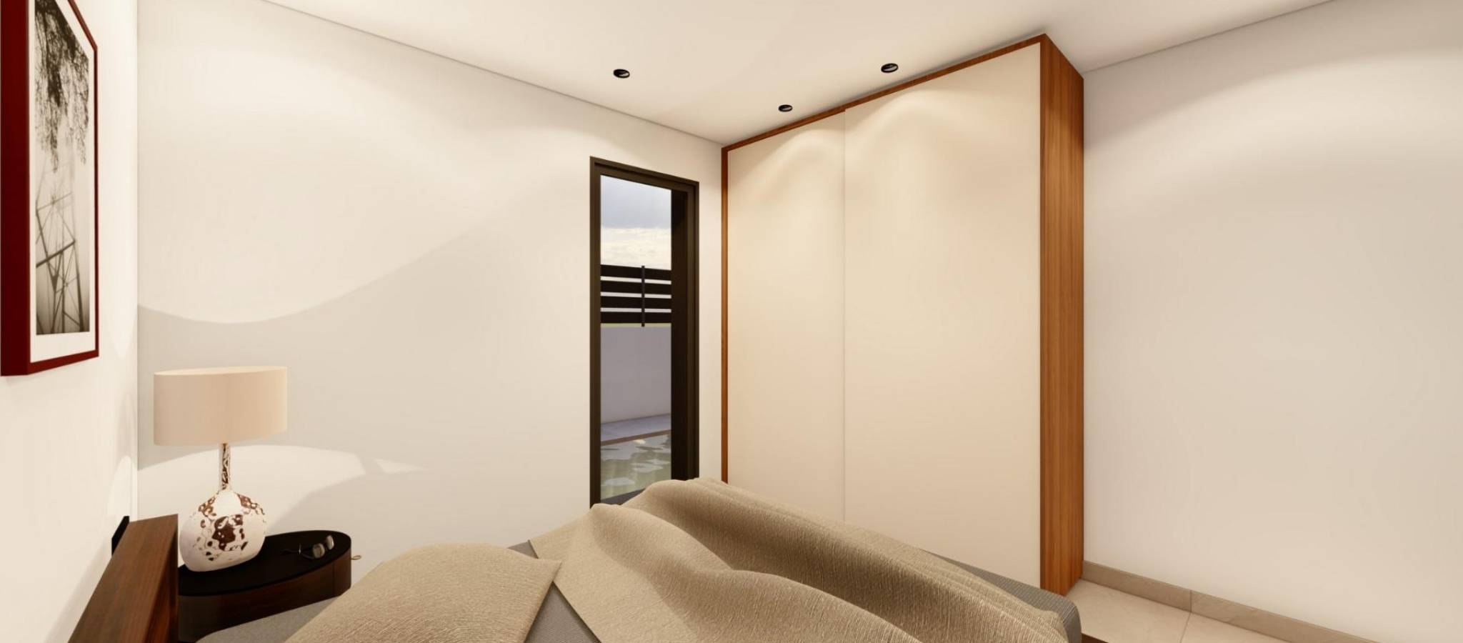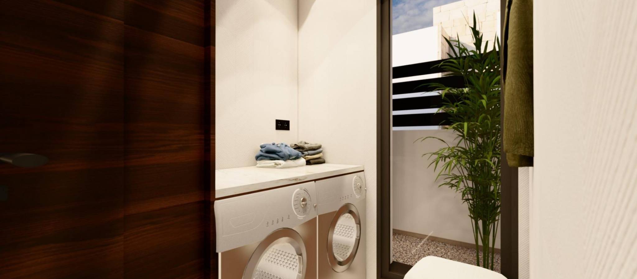 Moderne frittliggende villaer i Monteazul Benijofar med valgfritt basseng og solarium Førsteklasses beliggenhet mellom Benijofar og Ciudad Quesada Disse moderne frittliggende villaene ligger i den ettertraktede urbanisasjonen Monteazul, et fredelig boligområde mellom Benijofar og Ciudad Quesada. Nabolaget tilbyr en utmerket balanse mellom komfort, ro og bekvemmelighet, med barer, restauranter, supermarkeder og viktige daglige tjenester bare en kort spasertur unna. De vakre strendene i Guardamar del Segura ligger omtrent 9 km fra boligkomplekset, mens Alicante internasjonale lufthavn ligger rundt 38 km unna. Golfentusiaster kan nyte La Marquesa Golf bare 5 km unna og Vistabella Golf 14 km unna. Marinaen i Torrevieja ligger omtrent 14 km fra villaene. Stilig boareal i ett plan Hver villa er gjennomtenkt designet i ett plan, og tilbyr en praktisk og komfortabel planløsning som er perfekt både for ferier og helårsbeboelse. Boligene har 3 soverom og 2 bad, inkludert et hovedsoverom med eget bad og en romslig walk-in-garderobe. Et separat vaskerom og privat parkeringsplass på tomten gir ekstra bekvemmelighet. Interiør av høy kvalitet og moderne funksjoner Villaene har innredede bad med møbler, speil og dusjvegg. Ytterligere funksjoner inkluderer forhåndsinstallert klimaanlegg, fullt utstyrt kjøkken og motoriserte persienner i alle soverom, noe som sikrer komfort og moderne funksjonalitet i alle rom. Valgfritt privat basseng og solarium Kjøpere har muligheten til å legge til et privat svømmebasseng eller et solarium på taket mot en ekstra kostnad, slik at du kan tilpasse uteområdet ditt og forbedre din middelhavsstil. Utmerket tilknytning og rolige omgivelser Villaene ligger i et rolig nytt boligområde og tilbyr enkel tilgang til motorveien AP7, som gir deg rask tilgang til nærliggende kystbyer, marinaer, golfbaner og shoppingområder. Denne misunnelsesverdige beliggenheten gjør prosjektet ideelt for de som søker en avslappet livsstil nær både fasiliteter i innlandet og attraksjoner ved kysten. Kontakt oss i dag for å avtale en visning og sikre deg ditt nye hjem i Benijofar.