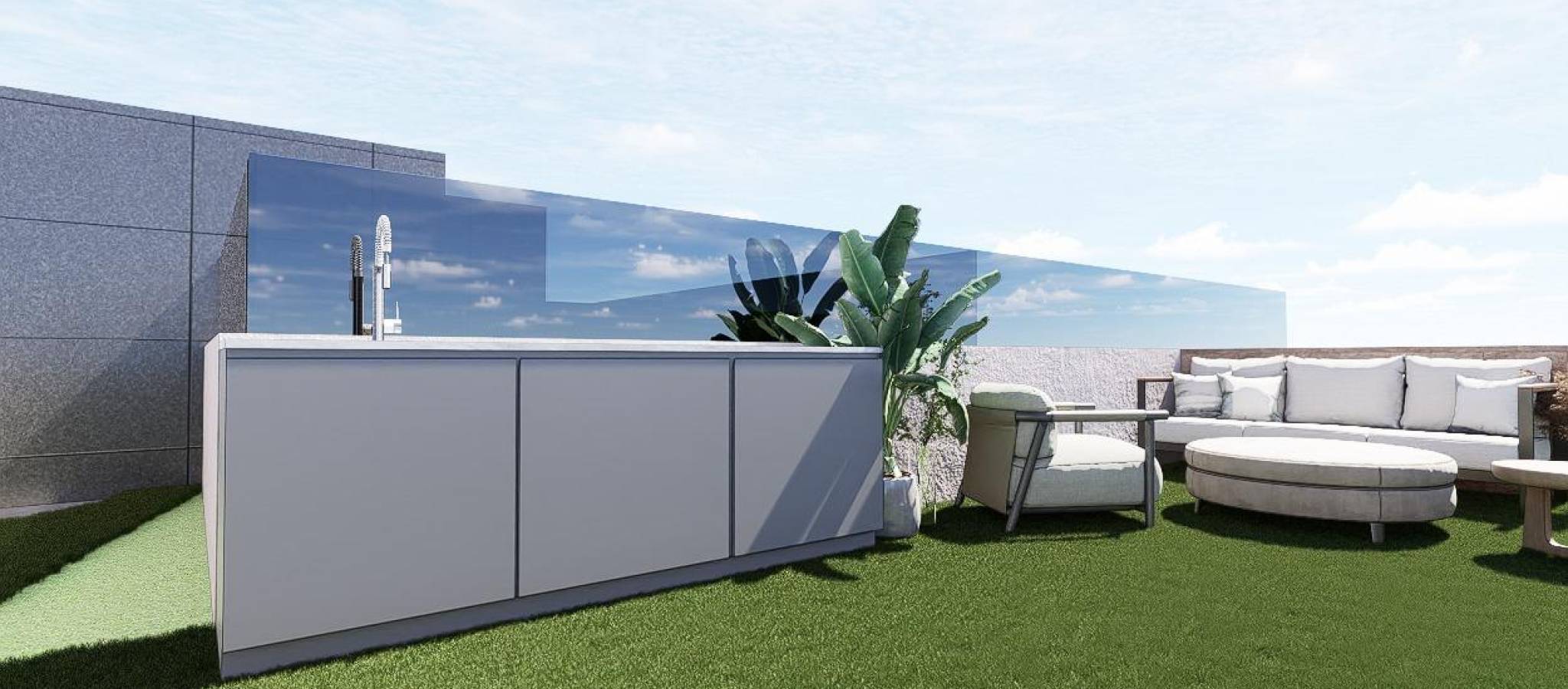 Nybygde leiligheter i Pilar de la Horadada med privat boblebad Førsteklasses beliggenhet i hjertet av Pilar de la Horadada Dette eksklusive nybygget ligger i det pulserende sentrum av Pilar de la Horadada i Alicante, og tilbyr en uslåelig kombinasjon av moderne livsstil og middelhavssjarm. Pilar de la Horadada er en pittoresk spansk by i den sørligste delen av Costa Blanca, kjent for sitt innbydende samfunn, sjarmerende torg og nærhet til fantastiske strender. Leilighetsalternativer og funksjoner Boligkomplekset består av syv omhyggelig utformede leiligheter, som tilbyr en rekke ulike planløsninger som passer til ulike behov: Første etasje: En romslig leilighet med 3 soverom og privat takterrasse. Første etasje: Fire leiligheter med 1 eller 2 soverom, hver med eget solarium. Toppleiligheter: To eksklusive leiligheter med 3 soverom og store private terrasser. Alle leilighetene har førsteklasses finish, inkludert: Fullt utstyrt kjøkken med moderne hvitevarer. Forhåndsinstallert luftkondisjonering med kanaler for din bekvemmelighet. Utvendig snekkerarbeid i aluminium med termisk brudd for forbedret isolasjon. Doble vinduer (4+14+4 Climalit eller lignende) for energieffektivitet. Stilige bad med nedhengt toalett (Roca Gap eller lignende), dusjer med regndusj, speil og kabinetter. Private boblebad i hvert hus, perfekt for avslapping. Ytterligere fasiliteter for et liv i høyden Prosjektet tilbyr En parkeringsplass for hver leilighet i første etasje. Heis som gir tilgang fra første etasje til solariumsnivået. Et sommerkjøkken i hvert solarium, ideelt for utendørs underholdning. Praktisk tilgang til viktige severdigheter Denne beliggenheten gir enkel tilgang til viktige fasiliteter og attraksjoner: Strender: Sandstrendene i Torre de la Horadada og Mil Palmeras ligger bare 3 km unna, en 5-minutters kjøretur eller en naturskjønn sykkeltur. Golfbaner: Den nærmeste golfbanen ligger 8 km unna, perfekt for golfentusiaster. Kjøpesentre: Zenia Boulevard, et av de største kjøpesentrene i området, ligger 12 km unna. Flyplasser: Corvera (Murcia) lufthavn: Corvera (Murcia) lufthavn ligger 40 minutter (40 km) unna, og Alicante lufthavn ligger 55 minutter (55 km) unna med bil. Oppdag middelhavsstilen Pilar de la Horadada kombinerer roen i en kystby med bekvemmeligheten ved et moderne liv, med supermarkeder, restauranter, barer og livlige torg innen gangavstand. Planlegg besøket ditt i dag Ikke gå glipp av muligheten til å eie ditt drømmehus i dette ettertraktede området på Costa Blanca. Kontakt oss nå for å avtale en visning eller for mer informasjon!