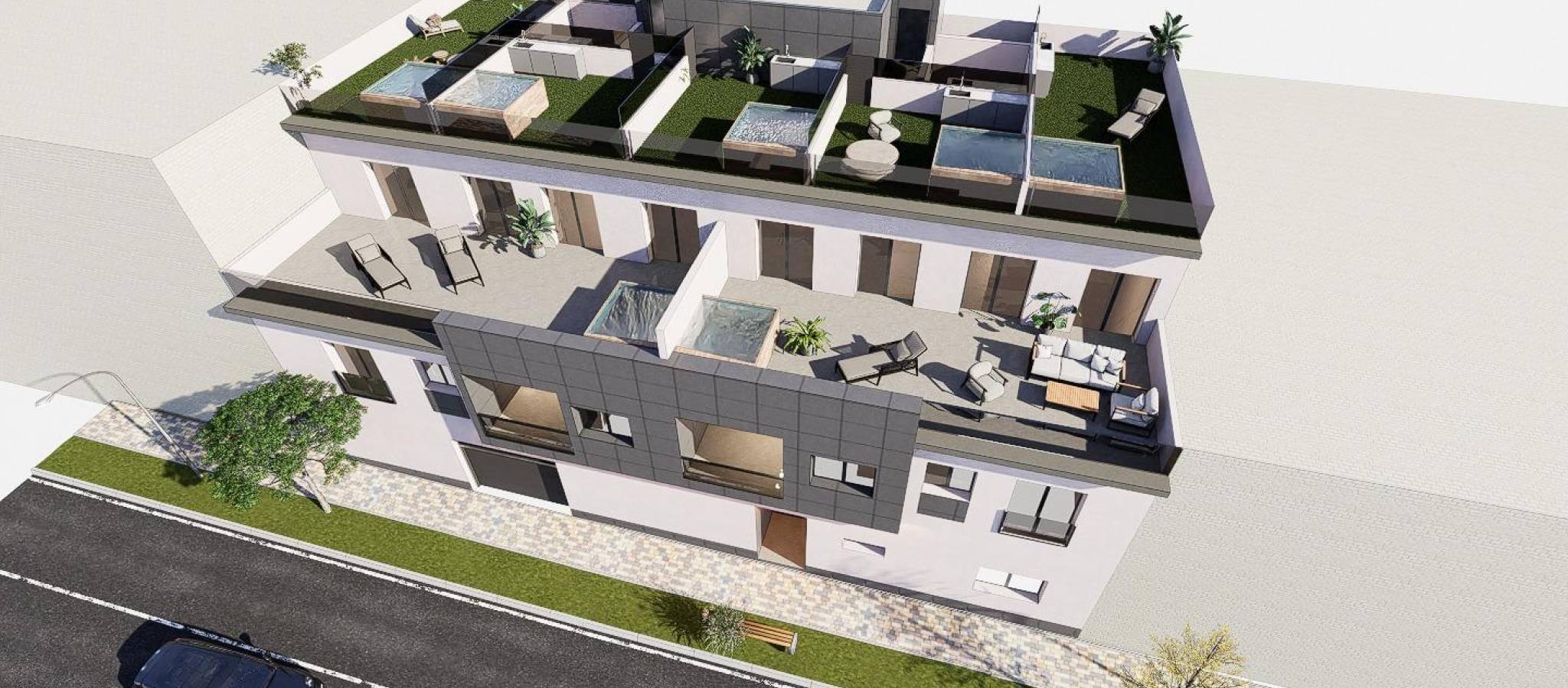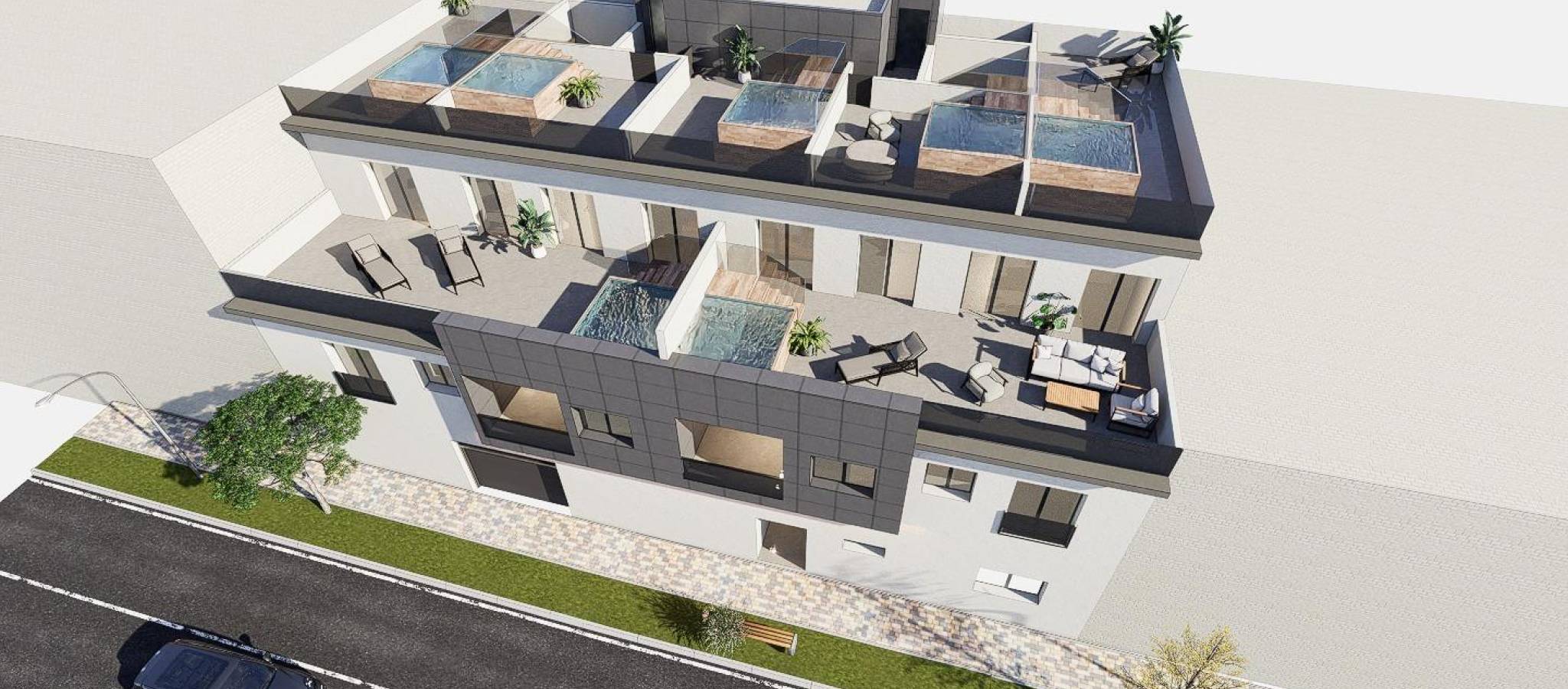 Nybygde leiligheter i Pilar de la Horadada med privat boblebad Førsteklasses beliggenhet i hjertet av Pilar de la Horadada Dette eksklusive nybygget ligger i det pulserende sentrum av Pilar de la Horadada i Alicante, og tilbyr en uslåelig kombinasjon av moderne livsstil og middelhavssjarm. Pilar de la Horadada er en pittoresk spansk by i den sørligste delen av Costa Blanca, kjent for sitt innbydende samfunn, sjarmerende torg og nærhet til fantastiske strender. Leilighetsalternativer og funksjoner Boligkomplekset består av syv omhyggelig utformede leiligheter, som tilbyr en rekke ulike planløsninger som passer til ulike behov: Første etasje: En romslig leilighet med 3 soverom og privat takterrasse. Første etasje: Fire leiligheter med 1 eller 2 soverom, hver med eget solarium. Toppleiligheter: To eksklusive leiligheter med 3 soverom og store private terrasser. Alle leilighetene har førsteklasses finish, inkludert: Fullt utstyrt kjøkken med moderne hvitevarer. Forhåndsinstallert luftkondisjonering med kanaler for din bekvemmelighet. Utvendig snekkerarbeid i aluminium med termisk brudd for forbedret isolasjon. Doble vinduer (4+14+4 Climalit eller lignende) for energieffektivitet. Stilige bad med nedhengt toalett (Roca Gap eller lignende), dusjer med regndusj, speil og kabinetter. Private boblebad i hvert hus, perfekt for avslapping. Ytterligere fasiliteter for et liv i høyden Prosjektet tilbyr En parkeringsplass for hver leilighet i første etasje. Heis som gir tilgang fra første etasje til solariumsnivået. Et sommerkjøkken i hvert solarium, ideelt for utendørs underholdning. Praktisk tilgang til viktige severdigheter Denne beliggenheten gir enkel tilgang til viktige fasiliteter og attraksjoner: Strender: Sandstrendene i Torre de la Horadada og Mil Palmeras ligger bare 3 km unna, en 5-minutters kjøretur eller en naturskjønn sykkeltur. Golfbaner: Den nærmeste golfbanen ligger 8 km unna, perfekt for golfentusiaster. Kjøpesentre: Zenia Boulevard, et av de største kjøpesentrene i området, ligger 12 km unna. Flyplasser: Corvera (Murcia) lufthavn: Corvera (Murcia) lufthavn ligger 40 minutter (40 km) unna, og Alicante lufthavn ligger 55 minutter (55 km) unna med bil. Oppdag middelhavsstilen Pilar de la Horadada kombinerer roen i en kystby med bekvemmeligheten ved et moderne liv, med supermarkeder, restauranter, barer og livlige torg innen gangavstand. Planlegg besøket ditt i dag Ikke gå glipp av muligheten til å eie ditt drømmehus i dette ettertraktede området på Costa Blanca. Kontakt oss nå for å avtale en visning eller for mer informasjon!