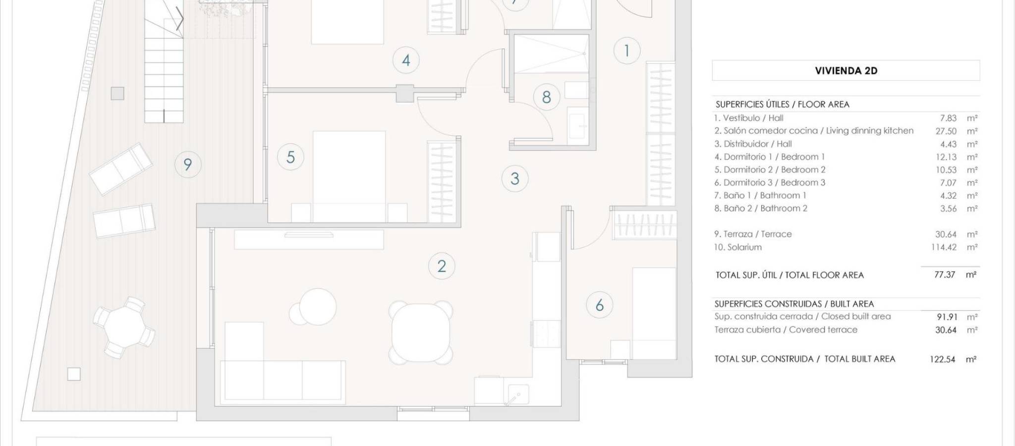 Nybyggede leiligheter i Benijofar med sentral beliggenhet Moderne boligliv i Benijofar Dette eksklusive nybyggprosjektet i Benijofar tilbyr bare 11 moderne boliger designet for å kombinere moderne arkitektur, komfort og materialer av høy kvalitet. Prosjektet omfatter leiligheter i første og andre etasje med romslige terrasser, samt penthouse-leiligheter med terrasser og private solarium. Beliggende i et sentralt, men likevel fredelig område i Benijofar og vendt mot en stor grønn sone, nyter boligkomplekset godt av utmerket naturlig lys hele dagen og en behagelig åpen utsikt. Moderne leiligheter med førsteklasses funksjoner Hver eiendom er nøye designet for å oppfylle høye standarder for kvalitet og funksjonalitet. Alle boliger har privat garasjeplass og bod i kjelleren, med praktisk heisadgang. Beboerne kan også nyte et stilfullt felles svømmebasseng omgitt av anlagte fellesområder, ideelt for avslapning og sosialt samvær. Toppetasjene skiller seg ut med sine romslige solarium, som gir mulighet for å installere et utekjøkken og har boblebad, noe som skaper et unikt uterom som er perfekt for underholdning eller avslapning under middelhavssolen. Høy kvalitet og energieffektivitet Boligkomplekset er bygget med stor vekt på holdbarhet, effektivitet og moderne estetikk. Funksjonene inkluderer: Forhåndsinstallert luftkanal for klimaanlegg og oppvarming Utvendig snekkerarbeid med termisk isolasjon og doble vinduer Aerotermisk system for varmt vann Møblerte kjøkken med hvitevarer inkludert Innvendig og utvendig belysningspakke inkludert Bad med servantskap, speil og dusjvegger Boblebad inkludert i penthouse-solariumene Hver detalj er valgt for å sikre et komfortabelt, effektivt og elegant bomiljø. Benijofar Livsstil og beliggenhet Benijofar er en av de mest sjarmerende byene i Vega Baja-området, kjent for sin avslappede atmosfære, sikkerhet og utmerkede livskvalitet. Alle daglige tjenester som supermarkeder, skoler, legesentre, restauranter og fritidsområder ligger innen 5 minutter. Byen tilbyr den perfekte balansen mellom tradisjonelt spansk liv og moderne fasiliteter. Viktige avstander til interessante steder Guardamar del Segura-strendene: 8 km La Finca og La Marquesa golfbaner: 6 km Rojales vannpark: 4 km Zenia Boulevard kjøpesenter: 17 km Alicante flyplass: 35 km Ditt nye hjem på Costa Blanca venter Disse nybygde leilighetene i Benijofar tilbyr en eksepsjonell kombinasjon av beliggenhet, kvalitet og design. Kontakt oss i dag for å avtale en visning og sikre deg ditt nye hjem på Costa Blanca.
