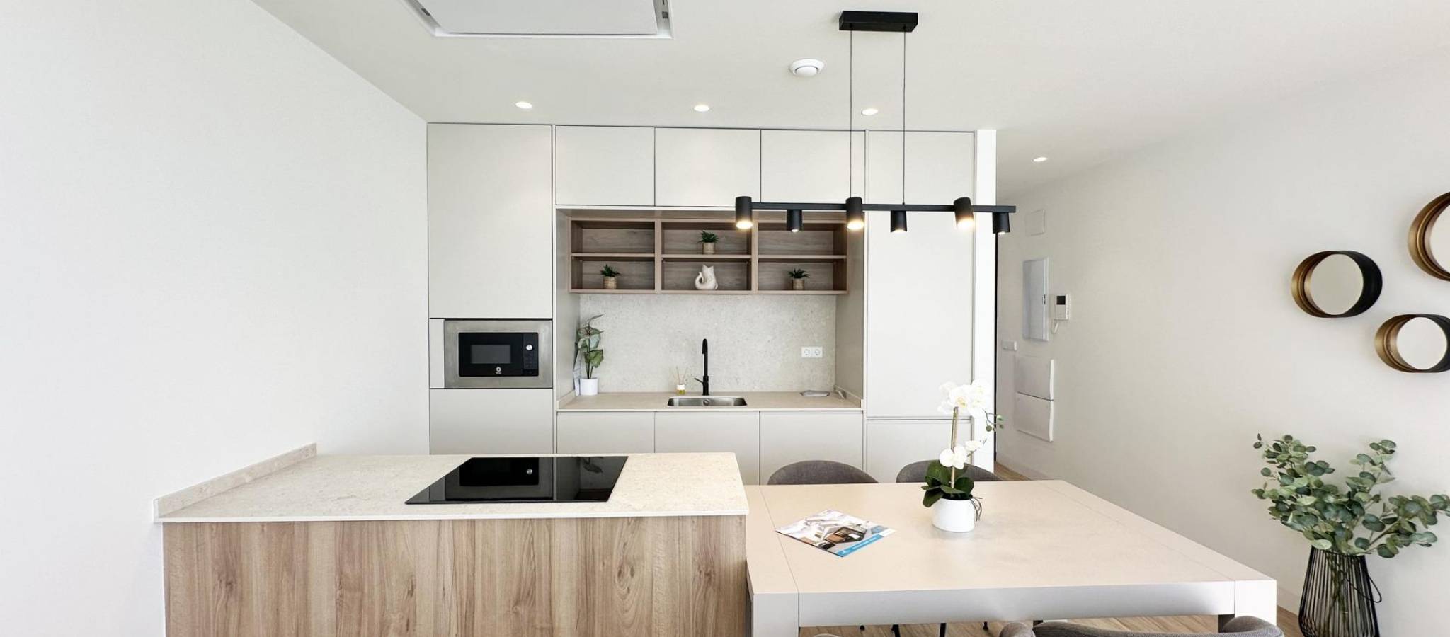 Eksklusive nybyggede villaer 300 m fra stranden i Torre de la Horadada Luksuriøst kystliv i en førsteklasses beliggenhet Oppdag dette eksklusive nybyggprosjektet i Torre de la Horadada, en av de mest ettertraktede kystbyene sør i Alicante. Disse villaene ligger bare 300 m fra Middelhavet og innen gangavstand fra butikker, restauranter og daglige tjenester, og tilbyr en enestående mulighet til å nyte Costa Blanca-livsstilen. Torre de la Horadada er kjent for sin avslappede atmosfære, vakre promenade og fine sandstrender, noe som gjør den ideell både for permanent opphold og ferie. Siste nøkkelklar villa fullt utstyrt Dette boutique-prosjektet består av bare fire uavhengige villaer, hvor den siste enheten er nøkkelklar og fullt møblert. Villaen leveres komplett med møbler, hvitevarer og sentral klimaanlegg, slik at du kan flytte inn umiddelbart og begynne å nyte ditt nye hjem ved sjøen. Villaen ligger på en privat tomt på ca. 207 m2 og har et bygget areal på ca. 130 m2 fordelt på første etasje, andre etasje og et privat solarium på taket. Moderne design med privat basseng og solarium Villaen har et moderne design med åpne og lyse rom. Innvendig finner du tre romslige soverom og tre bad, en stue/spisestue med åpen kjøkkenløsning og direkte tilgang til hagen og det private svømmebassenget. Solterrassen på taket er et ideelt sted å slappe av, sole seg eller nyte den åpne utsikten, og skaper et perfekt uteområde hele året. Høy kvalitet og komfort Eiendommen er bygget etter høye standarder og har en forsterket inngangsdør, motoriserte persienner i soverommene, et privat svømmebasseng og et grunnleggende hjemmestyresystem for elektronisk kontroll. Kanalisert klimaanlegg er fullt installert, noe som sikrer komfort i alle årstider. En privat parkeringsplass på tomten gir ekstra bekvemmelighet og sikkerhet. Torre de la Horadada og omegn Torre de la Horadada tilbyr et sjarmerende kystmiljø med en lang strandpromenade, marinaer og et bredt utvalg av restauranter, barer og lokale butikker. De nærliggende strendene Torre de la Horadada og Mil Palmeras er blant de beste i området, og er ideelle for svømming, vannsport, snorkling og dykking. Området har gode transportforbindelser og er omgitt av golfbaner, kjøpesentre og fritidstilbud. Avstander til viktige severdigheter Strand: 0,3 km Plaza Nueva shoppingområde: 0,2 km Lo Romero Golf: 7 km Marinaen i Torre de la Horadada: 1,5 km Murcia Corvera flyplass: 45 km Alicante flyplass: 50 km Ditt nye hjem ved Middelhavet venter Denne nøkkelferdige villaen i Torre de la Horadada er en unik mulighet til å eie et moderne hjem bare noen skritt fra stranden. Kontakt oss i dag for å avtale en visning og sikre deg denne eksepsjonelle nybygde villaen på Costa Blanca.