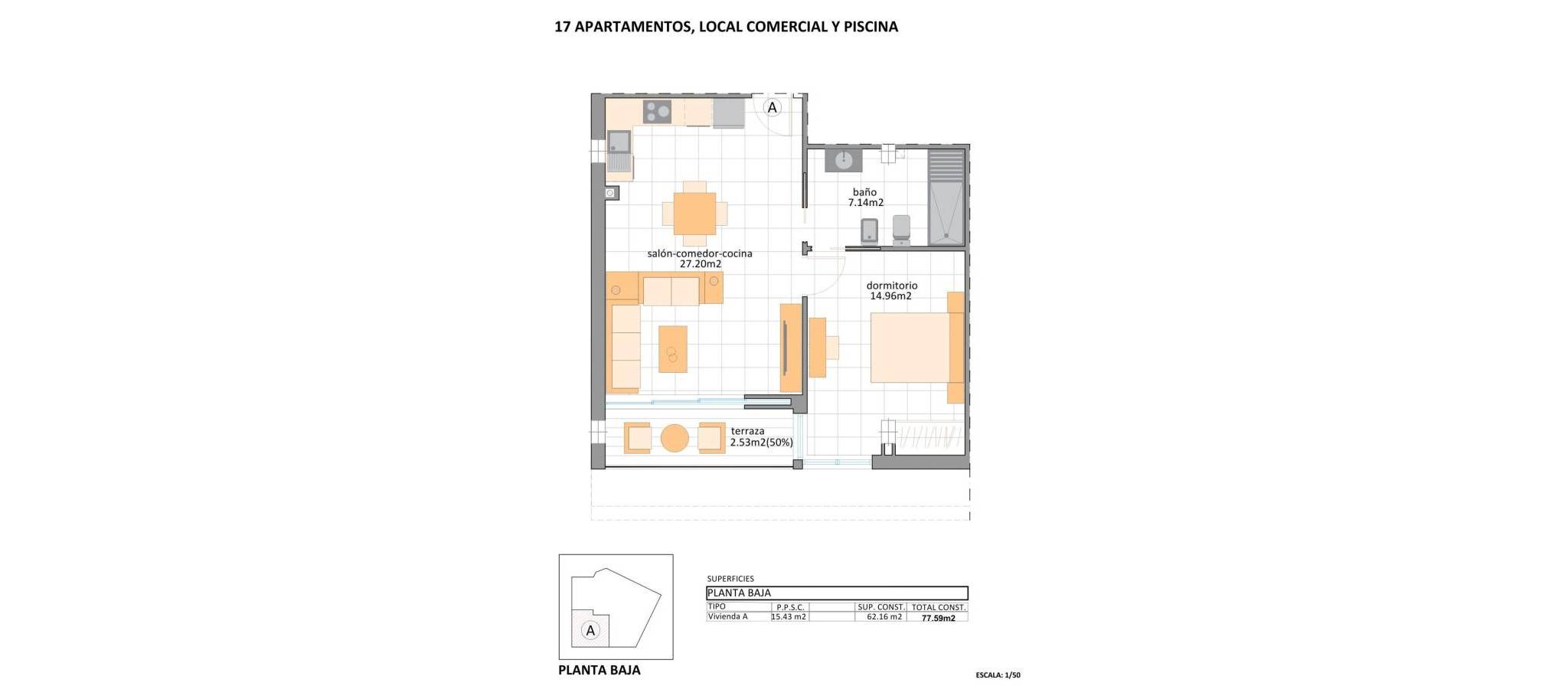 Nybyggede turistleiligheter nær stranden i Lo Pagan, San Pedro del Pinatar Eksklusivt boligområde ved kysten med turistlisens Dette nybygde boligkomplekset består av 17 moderne leiligheter med turistlisens, og ligger i Lo Pagan, San Pedro del Pinatar, bare 700 meter fra stranden. Dette prosjektet ligger i et av de mest attraktive områdene i Mar Menor og tilbyr en utmerket mulighet til å nyte middelhavslivet samtidig som man drar nytte av et stort potensial for utleieinvesteringer. Lo Pagan er et veletablert kystområde kjent for sin avslappede atmosfære, naturlige gjørmebad og nærhet til både Mar Menor og Middelhavet. Moderne studioer og leiligheter med ett soverom Prosjektet tilbyr romslige studioer på over 45 m2 samt leiligheter med ett soverom, alle designet med tanke på funksjonalitet og komfort. Hver bolig har store terrasser som utvider boarealet utendørs, ideelt for å nyte det milde klimaet hele året. Åpne kjøkken smelter sømløst sammen med lyse oppholdsrom, og skaper innbydende og praktiske interiører. Alle eiendommer har et privat bod, noe som gir ekstra bekvemmelighet for eiere og gjester. Høy kvalitet og fullt utstyrte boliger Alle leilighetene er bygget etter høye kvalitetsstandarder og leveres fullt møblerte og klare til bruk. Badene har innebygde møbler, opplyste speil, elektriske håndklestativ og dusjvegger. Kjøkkenene er fullt utstyrt med moderne hvitevarer og moderne skap. Klimaanlegg med split-enheter er fullt installert, noe som sikrer komfort gjennom alle årstider. Store skyvedører med tre skinner mellom stuen og terrassen gir maksimal åpning, integrerer innendørs og utendørs oppholdsrom og forbedrer naturlig lys. Fellesarealer på taket med basseng og solarium Boligkomplekset har attraktive fellesarealer designet for avslapning og fritid. På taket kan beboerne nyte et felles svømmebasseng og solarium med åpen utsikt, lett tilgjengelig med heis. Dette høytliggende området tilbyr en perfekt setting for å slappe av, sole seg eller sosialisere mens man nyter kystmiljøet. Livet i Lo Pagan og San Pedro del Pinatar San Pedro del Pinatar har en privilegert beliggenhet mellom to hav, noe som gjør det til et populært reisemål for strandelskere og vannsportentusiaster. Området tilbyr marinaer, seilklubber og rolige, grunne farvann som er ideelle for familier. Lo Pagan er spesielt kjent for sine naturlige gjørmebad og sin livlige strandpromenade fylt med restauranter, kafeer og lokale butikker. Byen tilbyr også idrettsanlegg, et innendørs svømmebasseng og aktiviteter året rundt, støttet av et behagelig vinterklima. Viktige avstander til interessante steder Stranden i Lo Pagan: 0,7 km San Pedro del Pinatar marina og havn: 1,5 km Dos Mares kjøpesenter: 2 km Lo Romero Golf: 10 km Murcia Corvera flyplass: 35 km Alicante flyplass: 80 km Invester eller nyt middelhavslivet Kontakt oss i dag for å få mer informasjon eller for å avtale visning av disse nybygde turistlisensierte leilighetene i Lo Pagan, San Pedro del Pinatar, og sikre deg din plass ved sjøen.