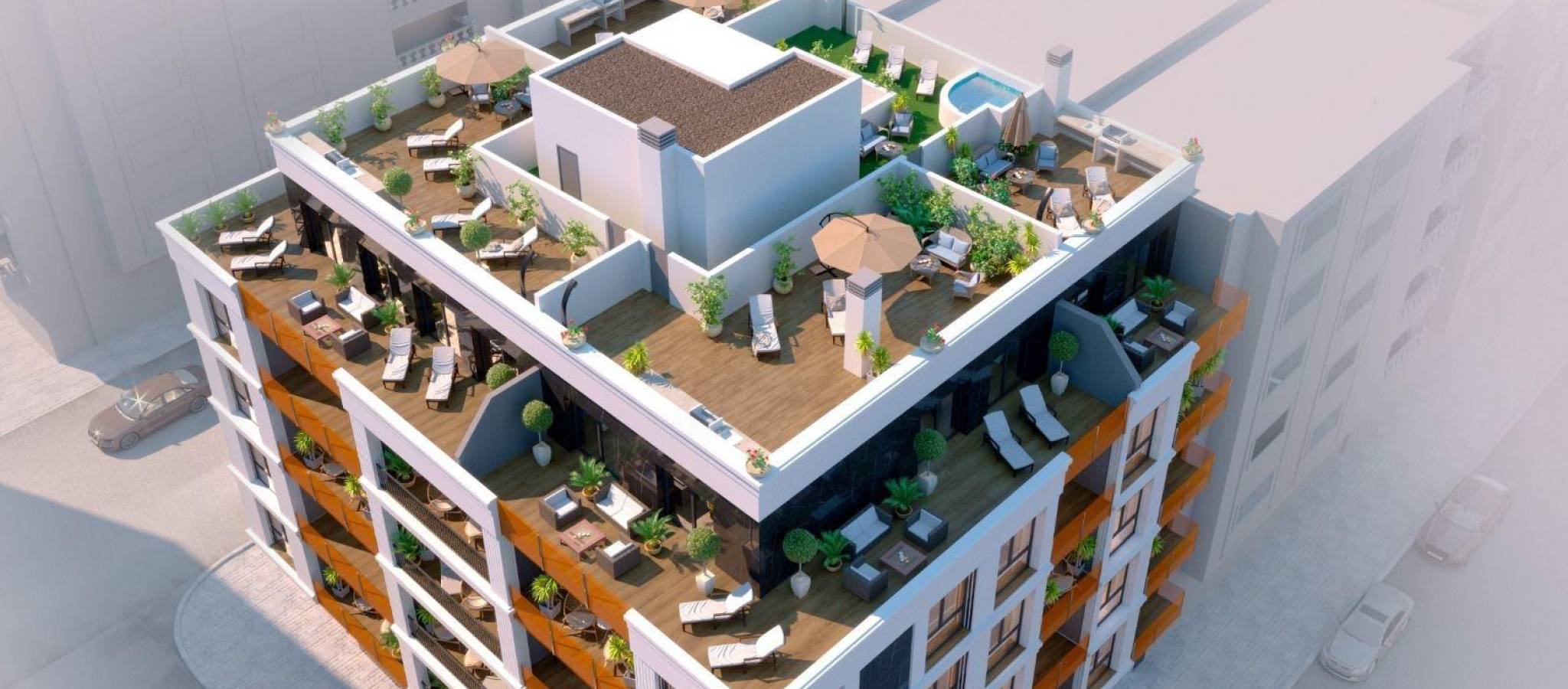 Moderne nybyggede leiligheter i sentrum av Torrevieja på Costa Blanca Eksklusivt boligprosjekt med førsteklasses fasiliteter Oppdag et eksklusivt nybyggprosjekt med 35 moderne leiligheter i hjertet av Torrevieja. Denne boligkomplekset tilbyr leiligheter med 1, 2 eller 3 soverom og 2 eller 3 bad, samt luksuriøse penthouse-leiligheter med private solterrasser. Dette boligkomplekset er designet for komfort og stil, og kombinerer moderne arkitektur med høykvalitets finish og eksepsjonelle fellesfasiliteter. Førsteklasses beliggenhet i sentrum av Torrevieja Dette boligprosjektet ligger bare 600 meter fra Acequion-stranden og har en av de mest privilegerte beliggenhetene i Torrevieja. Med supermarkeder, restauranter, medisinske tjenester, butikker og offentlig transport innen gangavstand, er dette det perfekte valget for de som søker en komfortabel middelhavsstil nær alt. Torrevieja er kjent for sitt milde middelhavsklima, vakre sandstrender og livlige strandpromenader, noe som gjør det til et av de mest populære reisemålene på Costa Blanca. Ferieanleggstilbud for velvære og avslapning Bygningen har et eksepsjonelt utvalg av fellesfasiliteter. I første etasje finner du et oppvarmet svømmebasseng, et sosialt klubblokale og et fullt utstyrt treningsstudio. Solterrassen på taket er en ekte oase for avslapning med solsenger, finsk sauna, grillplass og mini-jacuzzi. Både trapper og heis fører til taket, noe som gir komfort og tilgjengelighet for alle beboere. Høykvalitetsboliger med moderne design Disse nybygde leilighetene har åpne kjøkken i amerikansk stil integrert med stuen, romslige terrasser, innebygde garderober og fullt utstyrte kjøkken med hvitevarer. Badene har møbler, dusjvegger og gulvvarme for maksimal komfort. Det er også forhåndsinstallert for sentral klimaanlegg. Valgfri underjordisk parkering og bod er tilgjengelig mot en ekstra kostnad. Omgitt av natur og kystens skjønnhet Torrevieja er kjent for sine naturlige saltlaguner og beskyttede naturparker. Naturparken La Mata og Torrevieja ligger like ved byen og tilbyr vakre stier og fantastiske rosa og grønne saltsjøer. Dette unike miljøet gir en sunn livsstil og fantastiske landskap. Avstander til viktige severdigheter Acequion-stranden 0,6 km Torrevieja marina 1,5 km La Mata naturpark 4 km Villamartin Golf 8 km Alicante lufthavn 45 km Murcia lufthavn 60 km Lev middelhavslivet Ikke gå glipp av muligheten til å eie et moderne hjem i en av de mest attraktive kystbyene i Spania. Kontakt oss i dag for å avtale et besøk og sikre deg en plass i dette eksepsjonelle nye prosjektet.