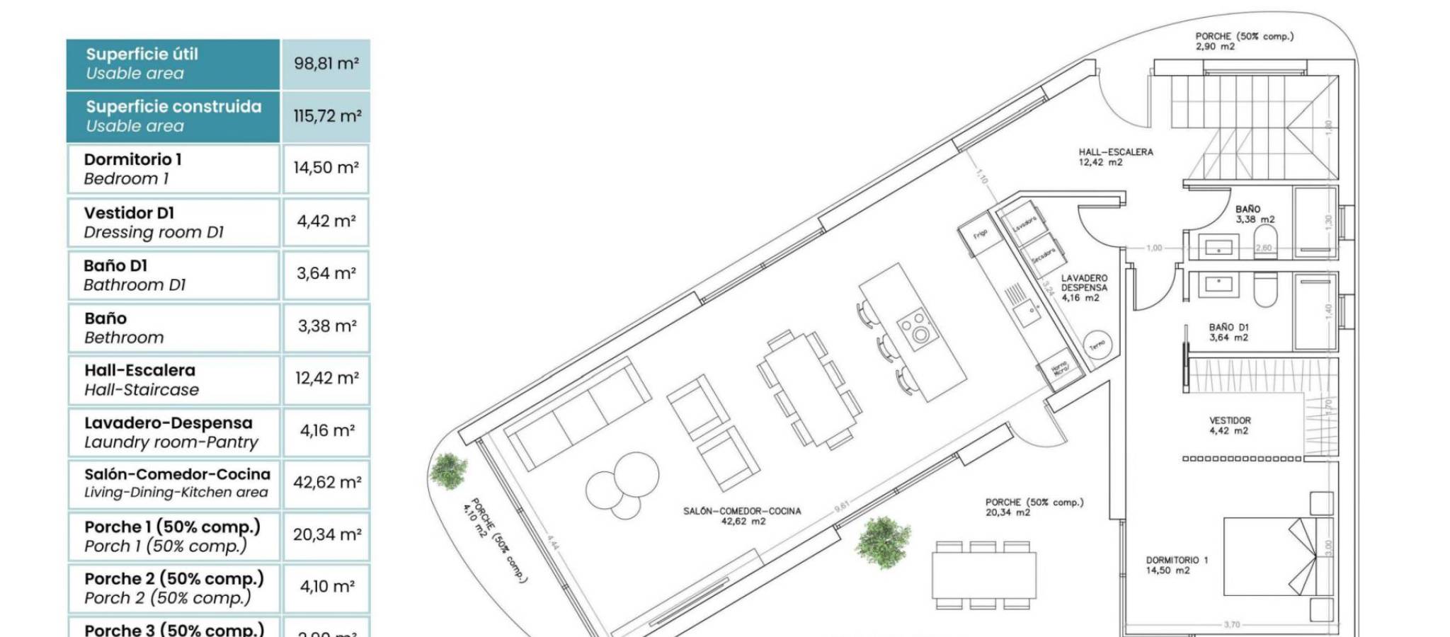Villa i La Zenia som redefinerer begrepet middelhavsluksus Bare 700 meter fra stranden i La Zenia, en av de mest eksklusive på Orihuela Costa, kombinerer denne imponerende villaen moderne design, eksklusive omgivelser og en uovertruffen beliggenhet. Et hjem skapt for de som søker det eksepsjonelle: privatliv, absolutt komfort og en unik opplevelse av livet ved havet. Denne frittliggende luksusvillaen ligger på en stor tomt på 592 m² og har 3 soverom og 4 bad, fordelt på to etasjer med store og lyse rom. I første etasje flyter en spektakulær åpen stue-spisestue over i designerkjøkkenet og åpner seg gjennom store vinduer mot den private hagen og bassenget med boblebad, noe som skaper en perfekt kontinuitet mellom inne og ute. Dette området blir en ekte oase av avslapning, ideell for å nyte det privilegerte klimaet på Costa Blanca. Baksiden av huset har egen inngang og privat parkeringsplass for 2 biler, noe som garanterer komfort og privatliv. På samme etasje ligger et hovedsoverom med garderobe og eget bad, i tillegg til et ekstra bad for gjester. Første etasje har to ekstra soverom, begge med eget bad, garderobe og direkte tilgang til en stor terrasse med spektakulær utsikt over omgivelsene. I øverste etasje ligger det private solariet, utstyrt med dusj og sommerkjøkken, et eksklusivt rom for å nyte de gyldne solnedgangene over havet og golfbanen. Hver detalj er nøye utvalgt for å tilby maksimal komfort og raffinement: doble vinduer, pansret inngangsdør, elektriske persienner, videodørtelefon, hjemmestyring, komplette bad med gulvvarme, aerotermisk system, sentral klimaanlegg og LED-belysning innvendig og utvendig. Det møblerte kjøkkenet er utstyrt med hvitevarer av høy kvalitet, med mulighet for tilpasning av finishen, og fullfører dette mesterverket av design og eleganse. Beliggenheten er uovertruffen. Bare noen få minutter unna ligger noen av Middelhavets mest eksklusive golfbaner, som Villamartín Golf, Las Ramblas Golf, Campoamor Golf og Las Colinas Golf & Country Club, som alle er internasjonalt anerkjente destinasjoner. I tillegg ligger Alicante-Elche internasjonale lufthavn bare 45 minutter unna med bil, og Murcia-Corvera lufthavn 35 minutter unna, noe som gir perfekte forbindelser til de viktigste europeiske byene. Omgitt av de mest ikoniske strendene på Orihuela Costa, som La Zenia, Cala Capitán og Cala Cerrada, og like i nærheten av det eksklusive kjøpesenteret La Zenia Boulevard, kombinerer denne villaen privatliv, eleganse og nærhet til alt som definerer den mest eksklusive middelhavsstilen. Denne villaen er ikke bare et hjem, men et arkitektonisk verk designet for de som søker det ekstraordinære. Kontakt oss og oppdag privilegiet ved å bo i en av de mest eksklusive villaene på Costa Blanca.