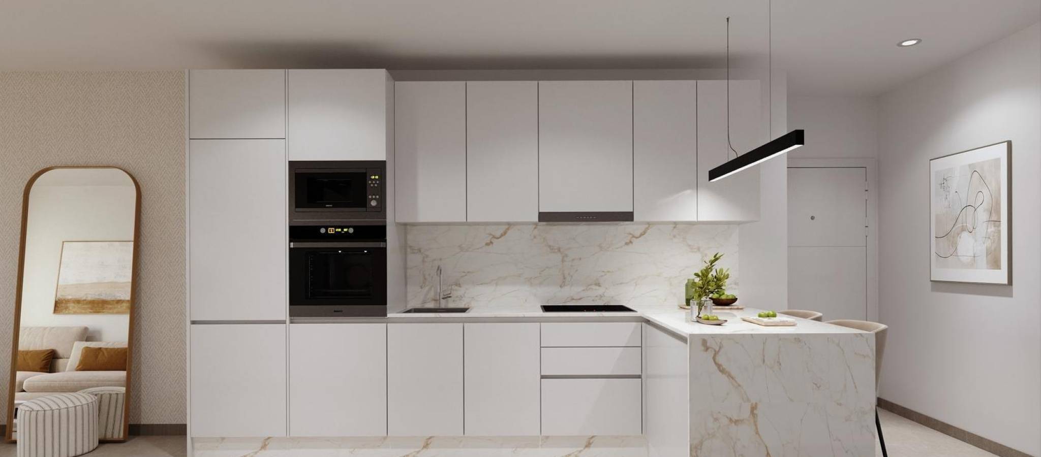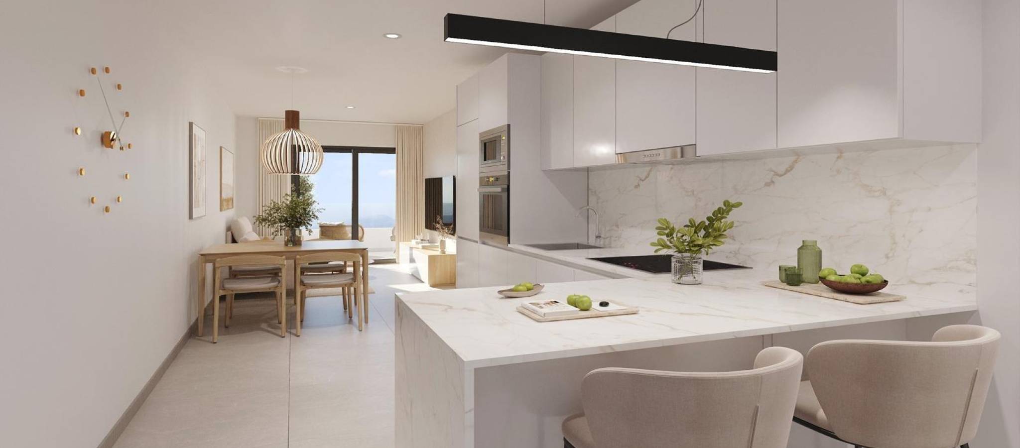 Nybyggede leiligheter i Torrevieja Bare 600 m fra Playa del Cura Privilegert beliggenhet i hjertet av Torrevieja Oppdag disse splitter nye leilighetene og penthouse-leilighetene i et av de mest ettertraktede områdene i Torrevieja, bare 600 m fra Playa del Cura og 300 m fra strandpromenaden. Dette livlige nabolaget ligger i sentrum av byen og tilbyr alle nødvendige tjenester i gangavstand, inkludert supermarkeder, butikker, restauranter, kafeer og offentlig transport. Torrevieja er en kjent kystby på Costa Blanca, kjent for sitt milde middelhavsklima, livlige atmosfære og livsstil ved havet hele året. Moderne leiligheter med romslig planløsning Dette eksklusive nye prosjektet består av bare 12 leiligheter og penthouse-leiligheter med 1 til 3 soverom, designet for å tilby komfort, funksjonalitet og moderne stil. Leilighetene på mellometasjene har store terrasser, mens penthouse-leilighetene har en ekstra privat solterrasse, ideell for soling eller utendørs måltider. Alle boligene har et åpent kjøkken som er koblet til stuen, noe som skaper lyse og innbydende interiører. Soverommene har innebygde skap, og badene er fullt utstyrt med møbler, speil og dusjvegger. Det er valgfrie parkeringsplasser tilgjengelig mot en ekstra kostnad. Kvalitetsfinish og energieffektive funksjoner Leilighetene er bygget med materialer av høy kvalitet og med stort fokus på energieffektivitet. Utvendig aluminiumsvinduer har termisk broteknologi og doble vinduer for varme- og lydisolering. Motoriserte persienner gir ekstra komfort og sikkerhet. Hver bolig har forhåndsinstallert klimaanlegg og sentralvarme, forsterkede inngangsdører og hvitlakkerte innerdører. Varmtvannet produseres ved hjelp av et aerotermisk system, som reduserer energiforbruket og forbedrer bærekraften. Solterrasse på taket med felles svømmebasseng Beboerne kan nyte en eksklusiv solterrasse på taket med felles svømmebasseng, tilgjengelig med heis eller trapper. Dette private området er perfekt for å slappe av, sole seg og nyte panoramautsikten over byen. Det tilbyr et rolig tilfluktssted over de livlige gatene i Torrevieja og gir en betydelig merverdi til prosjektet. Livsstil og omgivelser i Torrevieja Torrevieja er kjent for sin lange kystlinje, sandstrender og ikoniske saltverk. Naturparken Lagunas de La Mata y Torrevieja ligger omtrent 5 km unna og tilbyr turstier og unike landskap. Flere golfbaner, som Villamartin Golf og Las Colinas Golf, ligger mellom 12 og 18 km unna. Yachthavnen og havnen i Torrevieja ligger omtrent 1 km unna. Alicante lufthavn ligger omtrent 45 km unna og Murcia internasjonale lufthavn ligger omtrent 65 km unna, begge med gode forbindelser til Europa. Ditt hjem ved kysten venter på deg Ikke gå glipp av denne muligheten til å kjøpe en moderne, nybygd leilighet nær stranden i Torrevieja. Kontakt oss i dag for mer informasjon eller for å avtale en privat visning.