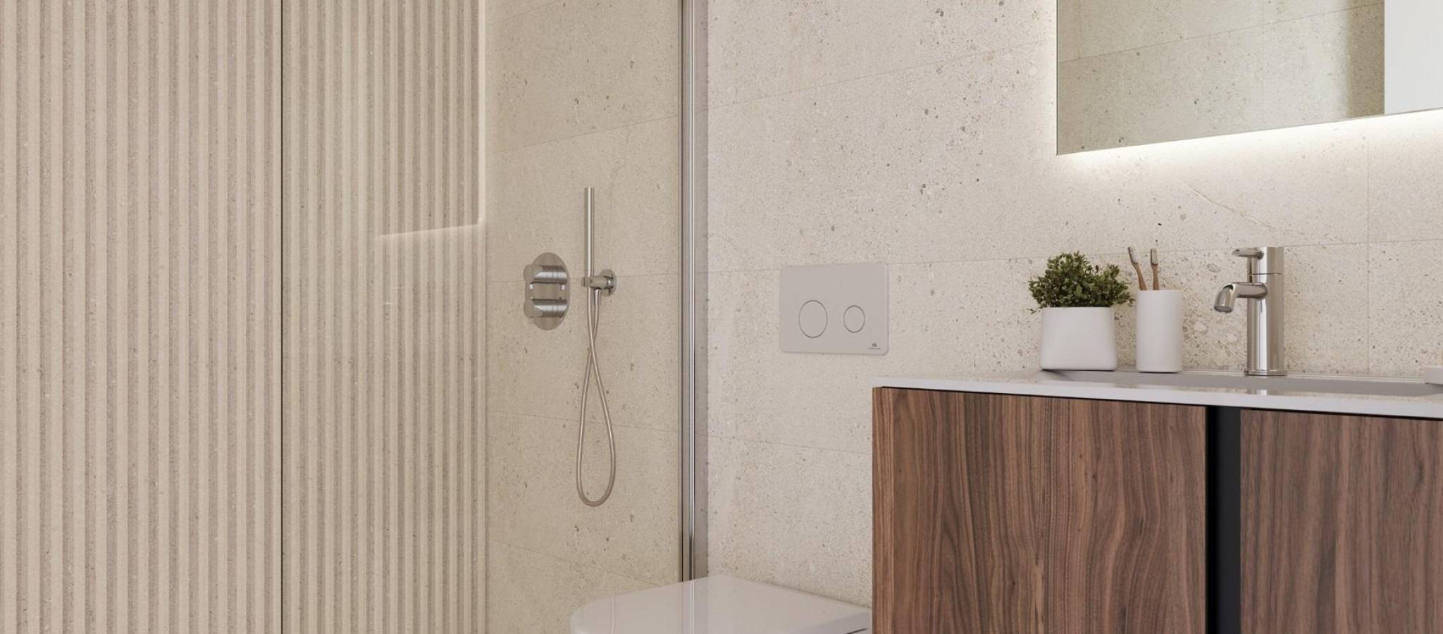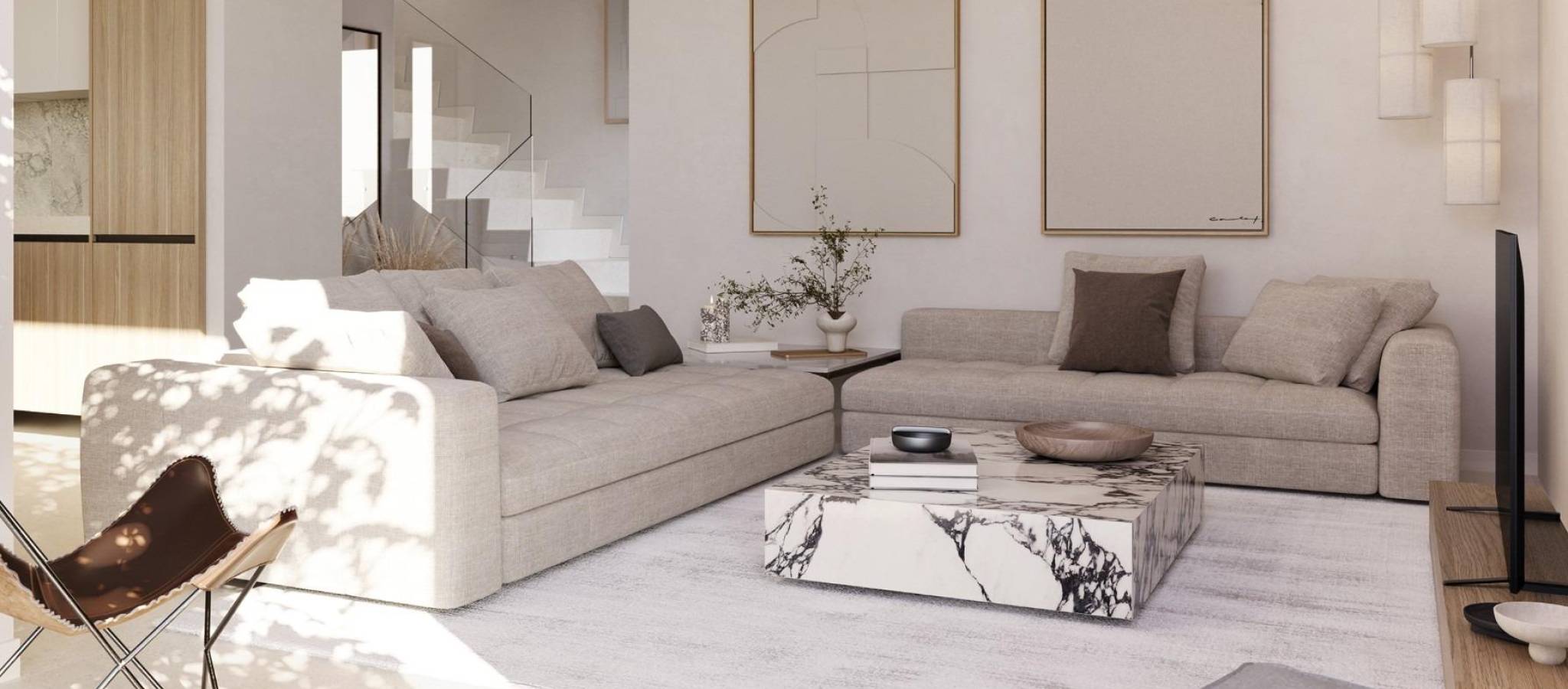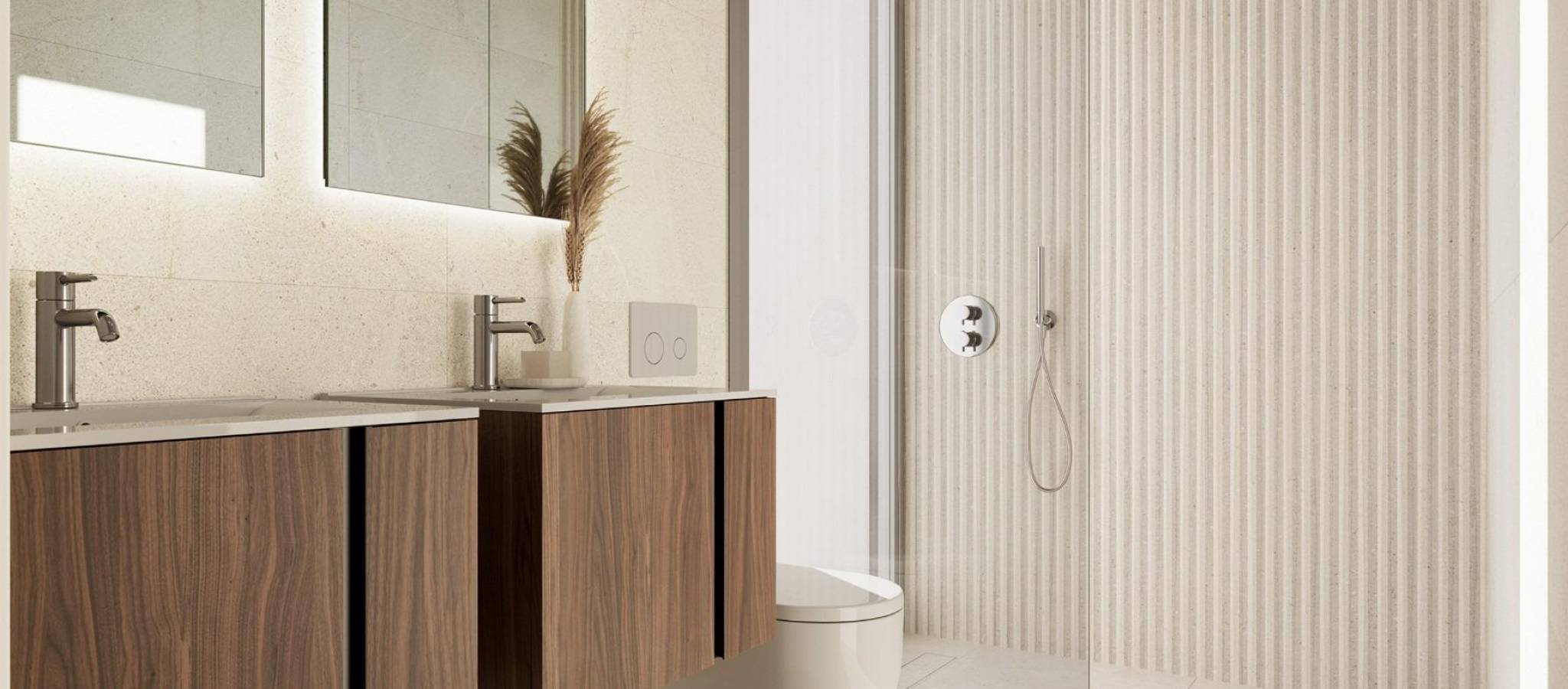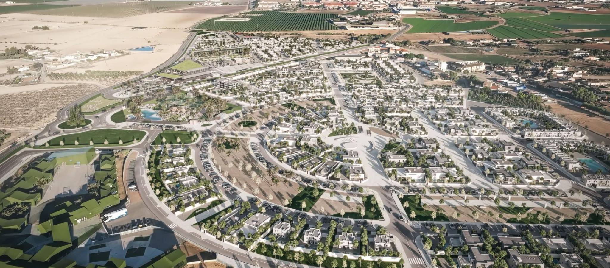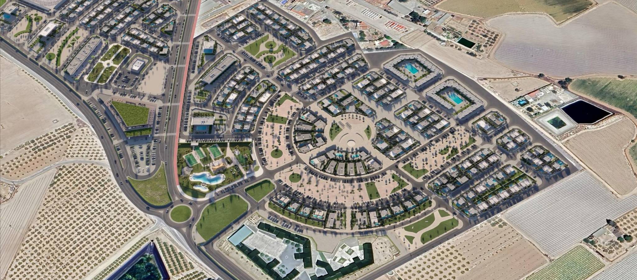Nybyggede villaer på El Alba Mediterranean Resort i Torre Pacheco Moderne livsstil i et voksende ferieanlegg Oppdag dette eksklusive nybyggprosjektet med kun 6 uavhengige og semi-uavhengige villaer i El Alba Mediterranean Resort i Torre Pacheco, Murcia. Dette nye boligområdet kombinerer moderne arkitektur, fritidsfasiliteter og en avslappet middelhavsstil. Området ligger mellom Terrazas de la Torre Golf Club og byen Roldan, og tilbyr ro og fred samtidig som det ligger nær alle nødvendige tjenester, inkludert supermarkeder, restauranter, barer og banker. Moderne villaer med privat uteplass Disse moderne villaene er fordelt på to etasjer og tilbyr et valg mellom 2 eller 3 soverom og 2 bad. Hver bolig har et åpent kjøkken og stue som er designet for å maksimere naturlig lys og komfort. Første etasje har åpne terrasser som er ideelle for å nyte det milde klimaet, mens første etasje åpner ut mot en privat hage med svømmebasseng. Parkering er tilgjengelig på hver private tomt. Interiøret er elegant og funksjonelt, noe som gjør disse boligene ideelle for permanent opphold, feriebruk eller investering. Soverommene er utstyrt med innebygde garderober med skuffer, og badene er fullt utstyrt med møbler, speil og dusjvegger. Høykvalitets spesifikasjoner og finish Alle villaene er bygget etter høye standarder med kvalitetsmaterialer og finish. Kjøkkenene er fullt møblerte og utstyrt med hvitevarer, mens Porcelanosa-finish er brukt i kjøkken, bad og fliser, noe som gir et eksklusivt preg. Ytterligere funksjoner inkluderer utvendig snekring med termisk isolasjon og doble vinduer, motoriserte persienner i soverommene og forhåndsinstallert luftkondisjonering. Hver bolig har også et privat svømmebasseng. Fasiliteter på ferieanlegget og lokale bekvemmeligheter El Alba Mediterranean Resort tilbyr et utmerket utvalg av fellesfasiliteter designet for alle aldre. Beboerne kan nyte et klubbhus med restaurant og avslapningsområde, felles svømmebasseng, bowlingområde, paddlebaner og en lekeplass for barn. Et lite kjøpesenter er under utvikling på ferieanlegget, noe som gir ytterligere bekvemmelighet med butikker og tjenester i nærheten av hjemmet. Utmerket beliggenhet nær golf, strender og flyplasser Resortet er omgitt av flere prisbelønte golfbaner, noe som gjør det til et attraktivt alternativ for golfentusiaster. Strendene i Mar Menor ligger omtrent 15 km unna, og tilbyr rolige farvann og et bredt utvalg av vannsport. Murcia internasjonale lufthavn ligger bare 20 km unna, mens Cartagena ligger rundt 30 km unna og Murcia by omtrent 40 km unna. Alicante lufthavn ligger omtrent 90 km unna. Enkel tilgang til motorveinettet gjør det mulig å reise raskt og bekvemt gjennom hele regionen. Ditt nye hjem på Costa Calida Disse nybygde villaene i El Alba Mediterranean Resort tilbyr utmerket verdi, moderne design og en strategisk beliggenhet nær golf, strender og tjenester. Kontakt oss i dag for å få mer informasjon eller for å avtale en visning og sikre deg en plass i dette spennende nye prosjektet i Torre Pacheco.