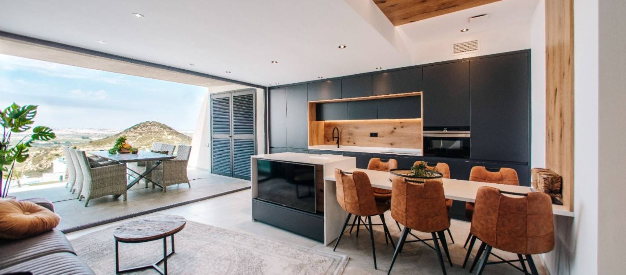 LUKSUS- OG DESIGNLEILIGHET VED SIDEN AV GOLFBANEN Luksusleilighet med 2 romslige soverom, 2 bad, hvorav ett av soverommene har eget bad. Leiligheten har et kjøkken som er åpent mot stuen og spisestuen, en terrasse på 22 m2 med utsikt over hagen og en parkeringsplass + bod. Eiendommen har et privat solarium med tilgang fra fellesheisen, og noen av leilighetene har privat svømmebasseng på takterrassen. Fellesområdene har et felles utendørsbasseng og en innendørs badstue med treningsrom. Omgitt av golfbaner som La Finca, La Marquesa, Villamartin, Las Colinas og Campoamor Golf. Nær store byer som Alicante og Murcia. Rojales ligger bare 5 km fra sandstrendene Guardamar, El Moncayo og La Mata. Litt lenger unna ligger strendene i Torrevieja og Orihuela Costa, der de berømte kjøpesentrene Habaneras og La Zenia Boulevard ligger.