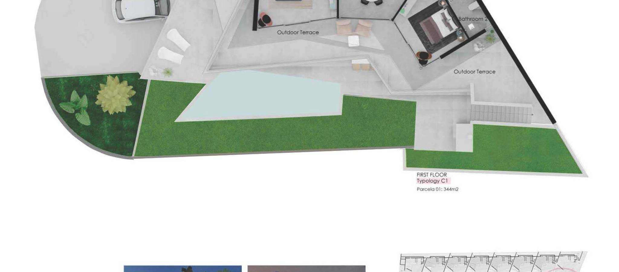Luksuriøse nybyggede villaer med havutsikt i Benitachell Eksklusive villaer i Golden Valley, Poble Nou de Benitachell Oppdag dette enestående nybyggprosjektet med 16 frittliggende villaer med fantastisk havutsikt, beliggende i den prestisjetunge urbanisasjonen Golden Valley i Poble Nou de Benitachell, Alicante. Dette privilegerte området ligger mellom de populære kystbyene Moraira og Javea, og tilbyr et fredelig bomiljø omgitt av natur, men likevel nær strender, restauranter og viktige tjenester. Den høye beliggenheten garanterer panoramautsikt over Middelhavet og en rolig livsstil på Costa Blanca. Moderne arkitektur og elegant design Disse moderne villaene har avantgarde-arkitektur kombinert med romslige interiører fylt med naturlig lys. Hvert hjem er nøye designet for å gi komfort, privatliv og funksjonalitet, og blander innendørs og utendørs liv sømløst. Rene linjer, store vinduer og åpne planløsninger skaper en atmosfære av lys, raffinement og middelhavsjarm. Romslige planløsninger med private hager og bassenger Hver villa har et areal på ca. 290 m2 og ligger på private tomter på over 300 m2. Boligene har 3 eller 4 soverom med eget bad, samt et gjestetoalett. Planløsningen er fordelt på tre etasjer og inkluderer en kjeller med privat garasje for to biler og, i noen enheter, ekstra plass til treningsrom, ekstra soverom, vaskerom eller bod. Første etasje har åpen stue og spisestue med fullt utstyrt kjøkken, direkte tilgang til terrassen og privat svømmebasseng, ett soverom med eget bad og gjestetoalett. Øverste etasje har to ekstra soverom med eget bad og en stor åpen terrasse som er ideell for å nyte utsikten over havet. Høy kvalitet og energieffektivitet Alle villaene har privat svømmebasseng, grillplass og avslapningsområde. Spesifikasjonene inkluderer elektriske persienner, en pansret inngangsdør, fullt utstyrt kjøkken med Bosch-apparater, aerotermisk system for varmt vann og fullt installert klimaanlegg. Prosjektet har energiklasse A, som sikrer effektivitet, komfort og redusert energiforbruk. Førsteklasses beliggenhet på Costa Blanca Poble Nou de Benitachell er en sjarmerende by kjent for sin autentiske spanske atmosfære, vakre landskap og nærhet til noen av de beste strendene på Costa Blanca. Området har supermarkeder, restauranter, medisinske tjenester og internasjonale skoler i nærheten. Viktige avstander: Moraira-stranden 6 km Javea-stranden 8 km Benitachell sentrum 2 km La Sella Golf 12 km Marina de Moraira 7 km Alicante lufthavn 95 km Valencia lufthavn 120 km Din drømmebolig med havutsikt Disse eksklusive nybygde villaene i Golden Valley kombinerer luksus, design og en privilegert beliggenhet med fantastisk havutsikt. Kontakt oss i dag for å avtale en privat visning og sikre deg din nye middelhavsbolig i Benitachell.