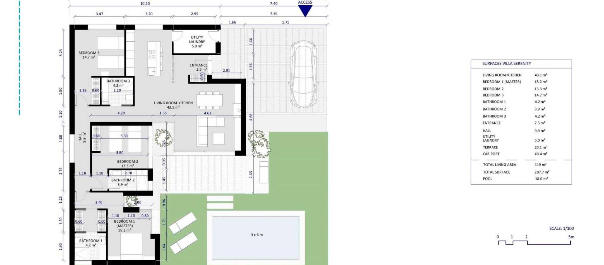 NYBYGG VILLAER I ALTAONA GOLF RESORT, MURCIA Ny utvikling av vakre villaer i Altaona Golf Resort, Murcia. Ligger i et privilegert miljø hvor vi kan leve stille, i kontakt med naturen og fjellene, får vi livskvalitet, frisk luft og åpne områder. Den vakre villaen på 1 plan har 3 soverom, 3 bad, åpen kjøkkenløsning med stue, private hager med basseng og parkeringsplass. Eksklusivt nybygd bolig som ligger i Altaona Golf bare 15 minutters kjøretur fra sentrum av Murcia by og 20 minutter fra strendene, kan du nyte roen og sikkerheten som tilbys av 18-hulls golfbanen og bekvemmeligheten av å bo nær alle fasiliteter. Murcia Corvera flyplass ligger bare 15 minutter unna med bil.