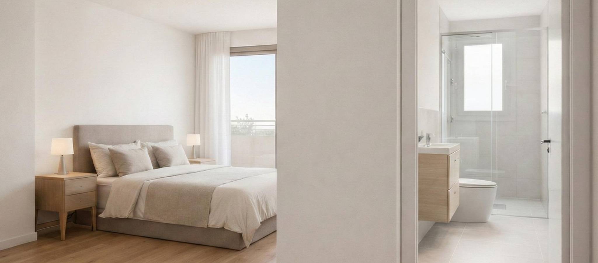 Moderne leiligheter og penthouse med solarium i San Javier nær Mar Menor Førsteklasses beliggenhet i San Javier nær stranden Dette nye boligprosjektet med 16 moderne boliger ligger i den livlige byen San Javier i Murcia, bare 3,5 km fra det rolige vannet i Mar Menor. Området er kjent for sitt solrike klima året rundt, avslappede kystliv og gode tjenester. Innen gangavstand finner du supermarkeder, restauranter, idrettsanlegg og daglige fasiliteter, noe som gjør dette til et ideelt sted både for permanent opphold og ferieturer. Middelhavskysten ligger bare en kort 10-minutters kjøretur unna, og byr på et bredt utvalg av strender og strandpromenader. Valg mellom første etasje med hage eller øverste etasje med privat solarium Kjøpere kan velge mellom leiligheter i første etasje med 3 soverom og 2 bad, hvorav det ene er en suite, med terrasse foran og privat hage bak med sommerkjøkken. Alternativt tilbyr leilighetene i øverste etasje 2 soverom og 2 bad, også med en suite, terrasse foran og et stort privat solarium med sommerkjøkken, perfekt for å nyte solen hele året. Hver planløsning er nøye utformet for å maksimere utendørsoppholdet og naturlig lys. Attraktive fellesarealer for avslapning Boligkomplekset har et vakkert anlagt fellesareal med svømmebasseng med boblebad, sykkelparkering og grønne hager hvor beboerne kan slappe av og sosialisere i fredelige omgivelser. Kvalitetsfunksjoner designet for moderne komfort Hver bolig er bygget etter høye standarder for komfort og energieffektivitet. Utvendig snekring i antrasitt PVC med termisk brytning og doble vinduer gir utmerket isolasjon og solbeskyttelse. Kjøkkenene er fullt utstyrt med hvitevarer. Boligene har forhåndsinstallert kanalisert klimaanlegg og et aerotermisk system for varmt vann, som sikrer lavere energiforbruk. Badene leveres med servantskap, speil og dusjvegg. Hver bolig har også en tildelt parkeringsplass. Utmerket tilknytning og nærliggende severdigheter San Javier tilbyr utmerkede veiforbindelser og enkel tilgang til viktige destinasjoner i regionen. Mar Menor-strendene 3,5 km Middelhavsstrendene 10 km Roda Golf og Mar Menor Golf 8 km Los Alcazares Marina 7 km Murcia Corvera flyplass 30 km Alicante flyplass 75 km Zenia Boulevard kjøpesenter 30 km Nyt middelhavslivet i San Javier Dette prosjektet tilbyr den perfekte kombinasjonen av beliggenhet, komfort og friluftsliv nær sjøen og golfbaner. Kontakt oss i dag for mer informasjon eller for å avtale en visning av ditt fremtidige hjem i San Javier.