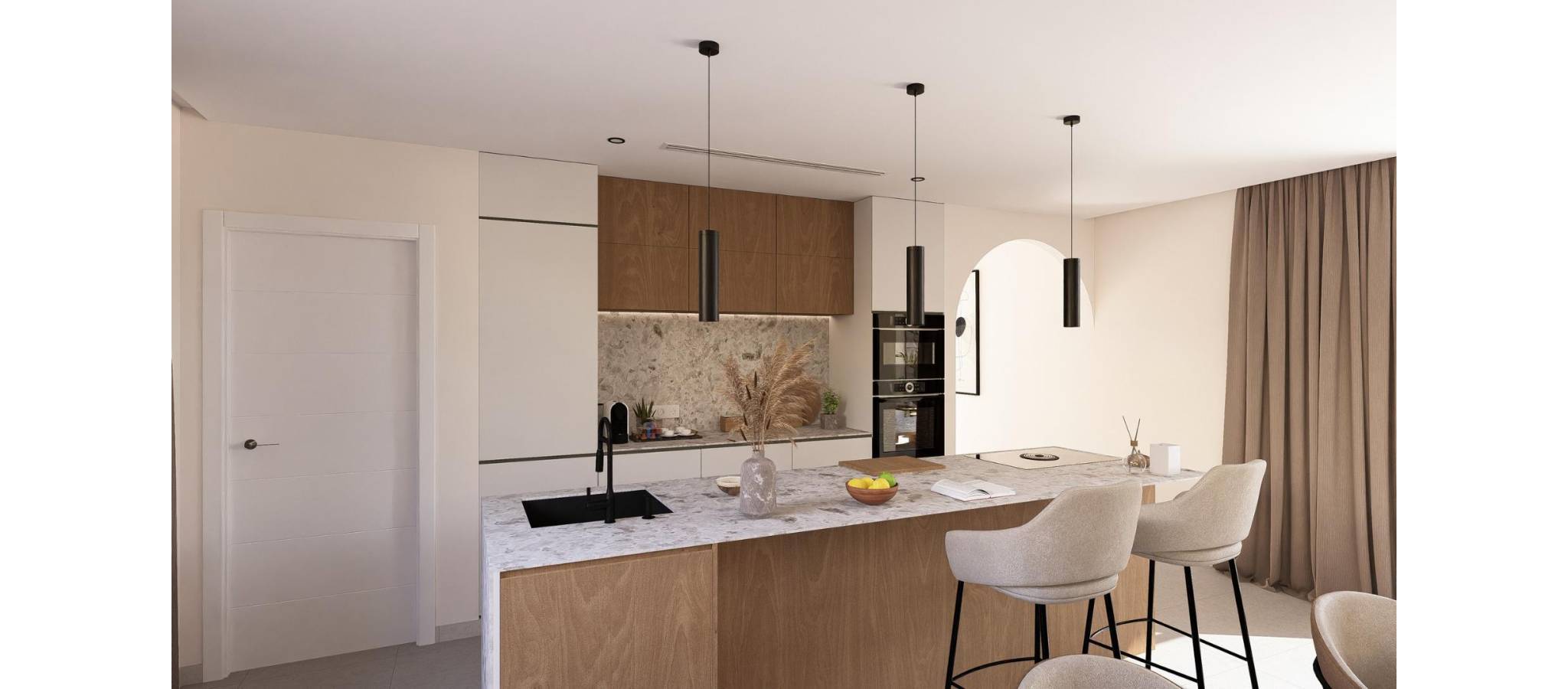 Moderne villaer i ett plan i Altaona Golf Resort Murcia Førsteklasses golfresort nær Murcia by Oppdag denne eksklusive samlingen av nybygde frittliggende villaer i det prestisjetunge Altaona Golf Resort i Murcia. Dette boligområdet ligger i trygge og fredelige omgivelser, omgitt av natur og en 18-hulls golfbane, og tilbyr den perfekte balansen mellom ro og tilgjengelighet. Altaona Golf ligger bare 15 km fra Murcia sentrum, hvor du finner kjøpesentre, restauranter, skoler og medisinske tjenester, mens strendene på Costa Calida ligger bare 20 km unna. Murcia Corvera lufthavn ligger praktisk til 15 km fra feriestedet, noe som gjør dette til et ideelt sted for både permanent bolig og feriebolig. Moderne design i ett plan med privat hage og basseng Disse elegante villaene er designet i ett plan for maksimal komfort og funksjonalitet. Kjøpere kan velge mellom 2, 3 eller 4 soverom og 2 eller 3 bad pluss et gjestetoalett. Hver bolig har et åpent kjøkken og stue som går sømløst over i utendørsterrassen og den private hagen med svømmebasseng. En privat parkeringsplass er inkludert i tomten, noe som sikrer bekvemmelighet og privatliv. Energieffektive boliger med høykvalitetsfunksjoner Alle villaene har energisertifikat klasse A, noe som sikrer utmerket energieffektivitet og lave driftskostnader. Eiendommene har kanalisert klimaanlegg med varmepumpe i hele huset unntatt badene, og elektrisk gulvvarme i stuen og badene med uavhengige termostater per sone. Et mekanisk ventilasjonssystem fornyer luften i kjøkken, bad, vaskerom og gjestetoalett, noe som forbedrer komforten innendørs. Kjøkkenet er utstyrt med avtrekksvifte og elektrisk induksjonstopp. LED-belysning er inkludert i stuen, gangen og uteområdene, mens de øvrige rommene er forberedt for at eieren kan tilpasse belysningen. Soverommene er utstyrt med USB-ladepunkter for ekstra bekvemmelighet. Smart hjem-teknologi og sikkert boligområde Hver villa har et videointercom-system, smart hjem-automatisering med to intelligente brytere og motorisert kjøretilgang til det inngjerdede boligområdet. Den private hagen leveres anlagt med dryppvanningssystem og et innbydende privat svømmebasseng, ideelt for å nyte middelhavsklimaet hele året. Avstander til viktige severdigheter Altaona golfbane 0,1 km Murcia sentrum 15 km Strendene i Los Alcazares og Mar Menor 20 km Murcia Corvera flyplass 15 km Kjøpesentre og tjenester 10 km Hacienda Riquelme Golf Resort 12 km Din nye livsstil i Altaona Golf venter Nyt golf, natur, sikkerhet og moderne komfort i et av de mest attraktive feriestedene i Murcia-regionen. Kontakt oss i dag for å få mer informasjon eller for å avtale et besøk til disse vakre nybygde villaene.