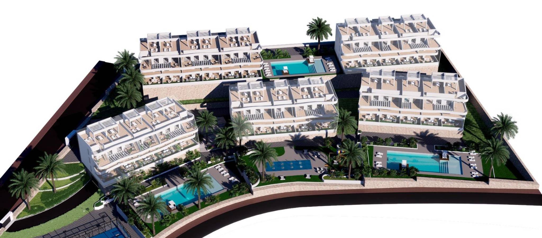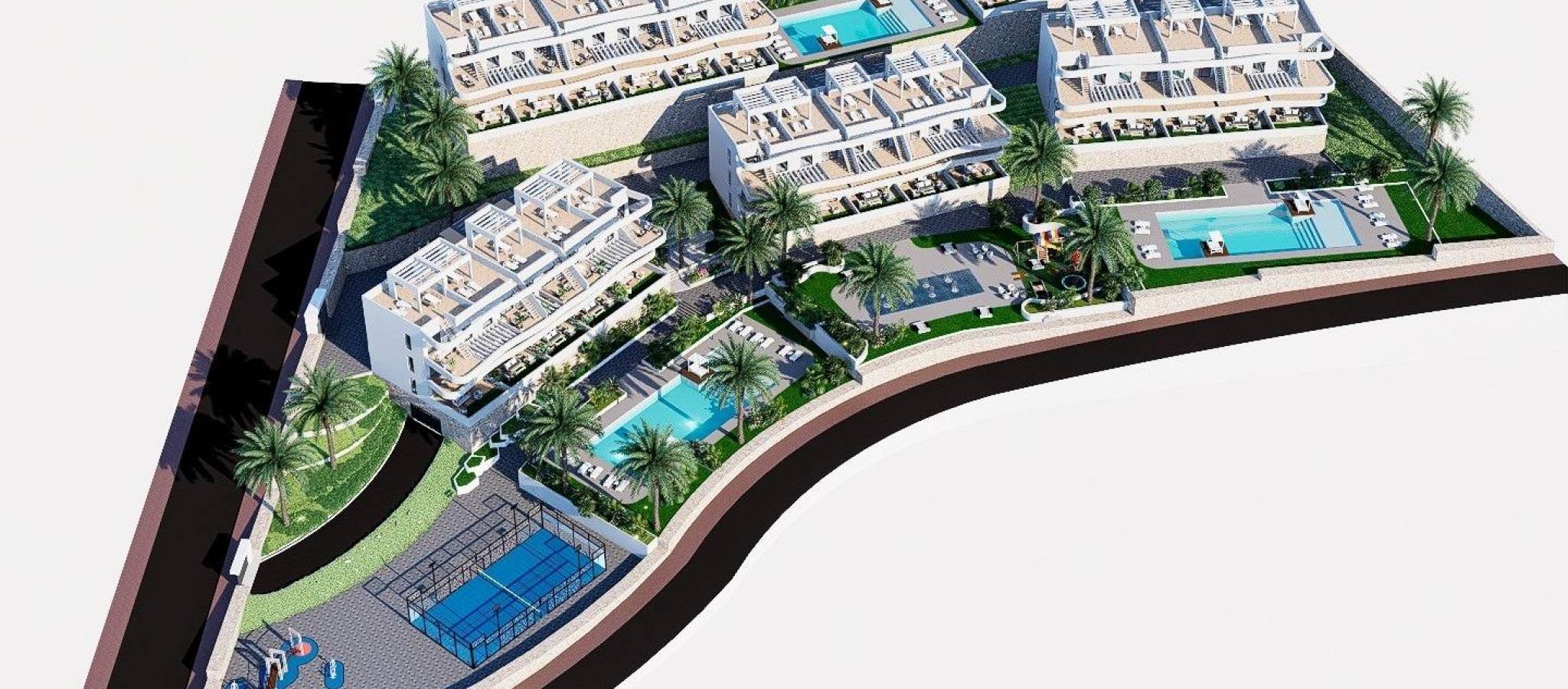 NYBYGD BOLIGKOMPLEKS I FINESTRAT Nybygget boligkompleks i Balcon de Finestrat. Dette komplekset består av moderne leiligheter med 2 soverom, 2 bad, åpen kjøkkenløsning med stue. Noen av leilighetene vil ha havutsikt. Leilighetene i første etasje har private hager, leilighetene i mellometasjen har terrasser og leilighetene i toppetasjen har terrasser og private solarium. Alle leilighetene har privat underjordisk parkeringsplass. Eiendommene har tilgang til fellesområdet med 3 svømmebassenger, parkering, padle, lekeplass, calisthenics. Det er en flott mulighet og privilegium å kunne leve med dette miljøet av golf og strand, nær alle fasiliteter av alle tjenester som regnes som et av de beste stedene å investere. Finestrat ligger i Marina Baixa-regionen på Costa Blanca. Benidorm ligger bare en fem minutters kjøretur fra eiendommene og tilbyr alle tjenestene du trenger, inkludert butikker, barer, restauranter, supermarkeder, banker, apotek og flere private internasjonale skoler. I nærheten ligger strendene Levante, Poniente og Cala de Finestrat, som er blant de beste i Europa, og som er tildelt Blått flagg av EU. Alle fritidstjenester som temaparkene Aqua Natura, Terra Mítica, Terra Natura, Aqualandia og Mundomar, Sierra Cortina og Villaitana golfbaner, fotturer og klatring i Puig Campana, en makeløs naturlig setting eller nyt nautisk sport. Avstand til sjøen 4 km, til flyplassen 26 km og til golf 1 km.