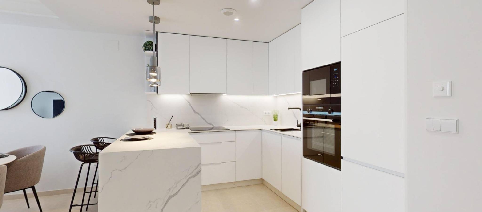 NYBYGG BOLIGKOMPLEKS I LOMAS DE CABO ROIG Nybygget luksusboligkompleks som ligger i Lomas de Cabo Roig. Kompleks med 24 leiligheter og toppleiligheter med 2 og 3 soverom, 2 bad, med flotte fellesarealer, hage og lekeområde rundt, stort svømmebasseng (inkludert barneområde og boblebad) relax/BBQ, treningsklubb og coworking-område, offentlig toalett og underjordisk parkering. Komplekset har installert et fullt utstyrt treningsstudio og fullt utstyrt coworking-område med vakker hageutsikt. Den luksuriøse opplevelsen arkitektonisk fortreffelighet sikrer et intimt kompleks som gir sikkerhet og privatliv. Lomas de Cabo Roig ligger en kilometer inn i landet fra kysten av Cabo Roig med vakre strender, en del av Orihuela Costa. Det ligger i et område som er godt forbundet med veier, har mange fasiliteter og kjøpesentre i nærheten. Lomas de Cabo Roig ligger 30 minutter fra Alicante flyplass og 1 time Murcia - Corvera flyplass.