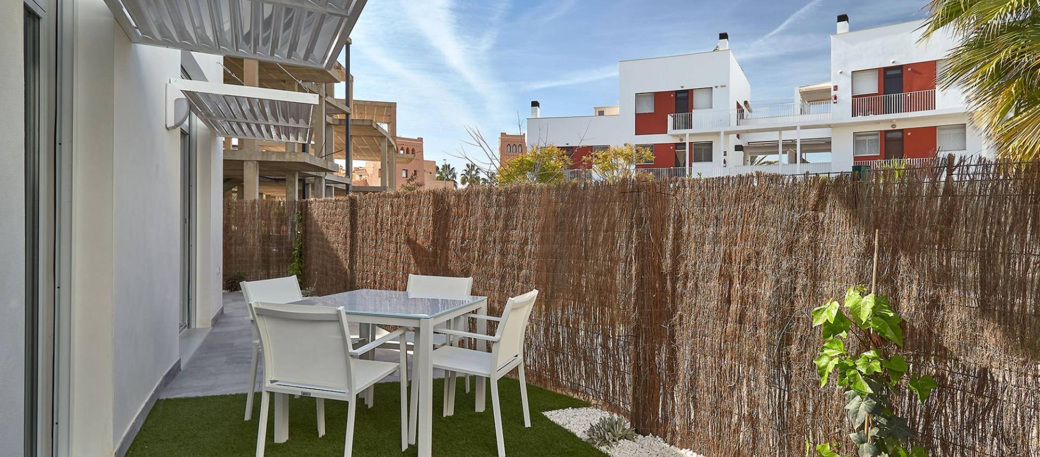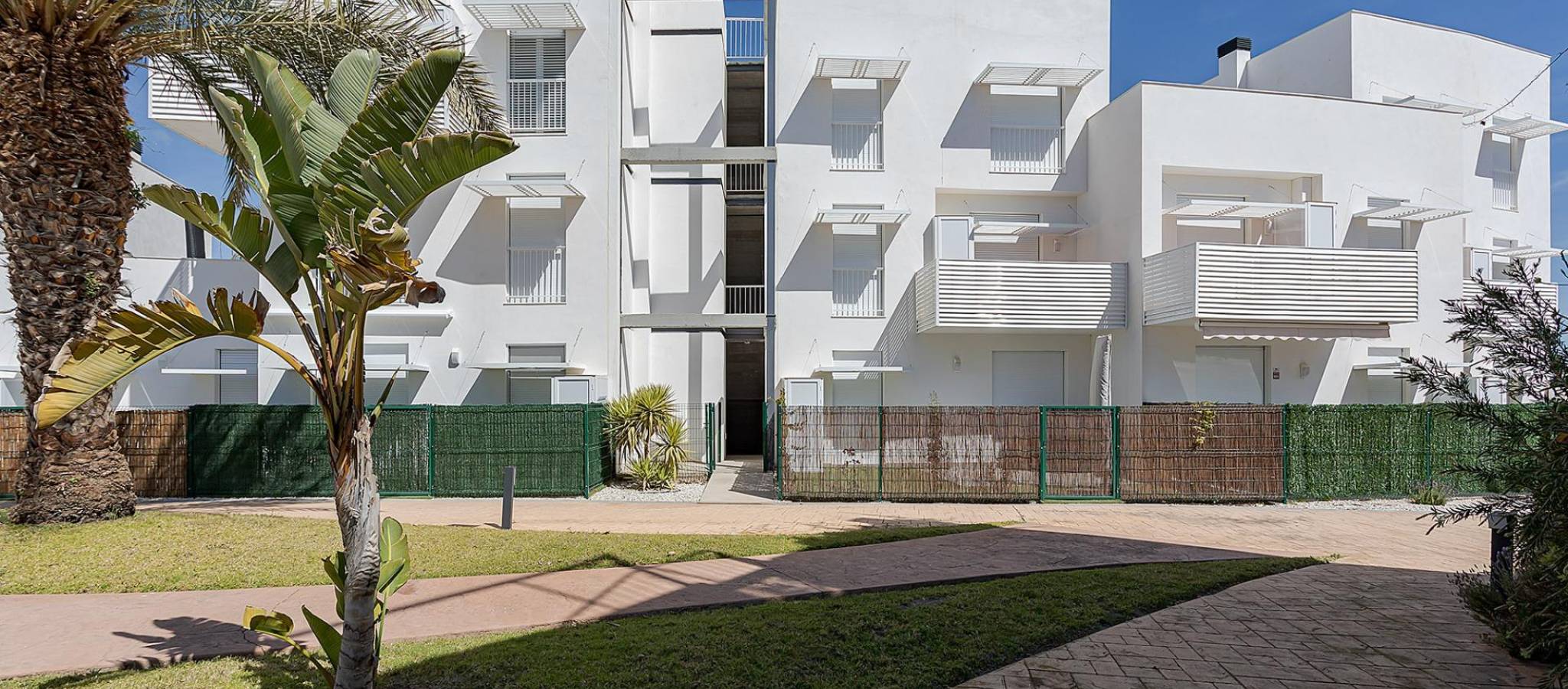 NYBYGG BOLIGKOMPLEKS I VERA Nybygget bolig med leiligheter i Vera bare 400 meter fra den enorme Vera-stranden kalt "El Playazo". Typologiene er i første etasje med to private hager, en i hver orientering, som lar deg nyte sol eller skygge når du vil, avhengig av tid på døgnet eller årstiden. De første etasjene har terrasser og toppleilighetene har store solarium. Alle leilighetene har ekstra takhøyde (2,95 m) som gir en god følelse av romslighet. Kjøkkenet er fullt møblert og utstyrt integrert med stue/spisestue med barområde. Dører og innbyggede garderober er lakkert i hvitt og gulvet er i laminert tre. Det varme-kalde klimaanlegget og det varme vannet genereres av en toppmoderne DAIKIN Aerothermal-enhet, en teknologi som sparer opptil 70 % av strømforbruket sammenlignet med tradisjonelle systemer. Alle badene kommer med dusj i stedet for badekar, med innfelte speil og også med benkeplate i stein og glassskillevegg på hovedbadet. Persiennene i stuen og hovedsoverommet er elektriske, hermetisk lukkede og med justerbare lameller. Hagene og solariet leveres med ferdige gulv som kombinerer kunstgress og en vakker belegningsimitasjon i tre. Hvert hus inkluderer en privat utendørs parkeringsplass. Hver blokk i kampanjen har en uavhengig heis. Både bygningene og leilighetene har en rekke bioklimatiske arkitekturkarakteristikker (orientering, isolasjon, vinduer og skodder, pergolaer) som tillater optimal naturlig regulering av ventilasjon, temperatur og lys gjennom de ulike årstidene. Fellesarealene er bygd opp av fotgjengerplasser og grøntarealer, med et stort svømmebasseng for voksne og et annet for barn på sentralplassen. Hele urbanisasjonen er fri for arkitektoniske barrierer for funksjonshemmede. Her er ro og avslapning garantert. Vera er et av de beste naturiststedene i Europa, anerkjent for kvaliteten og renheten til vannet. Det tilbyr seks kilometer med strender (Las Marinas-Bolaga, Puerto Rey, El Playazo, Quitapellejos). Vera grenser til kjente turistmål som Mojacar og Almanzora-hulene. Boligkompleks som ligger ca 1,5 times kjøretur fra Murcia - Corvera flyplass og ca 2 timer unna Alicante flyplass.