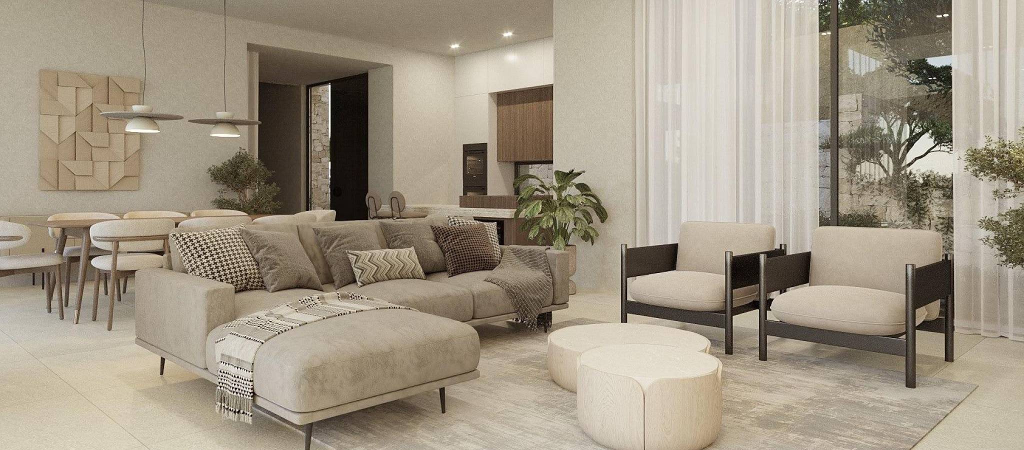 Luksuriøs nybygget villa med havutsikt i San Jaime, Benissa Eksklusiv bolig i en førsteklasses beliggenhet på Costa Blanca Denne eksepsjonelle nybyggede villaen ligger i det prestisjetunge San Jaime-området i Benissa, og tilbyr havutsikt, privatliv og moderne middelhavsdesign bare 2 km fra stranden. Eiendommen ligger i en rolig blindvei og garanterer ro, samtidig som den ligger nær viktige tjenester og fritidsfasiliteter på den nordlige Costa Blanca. San Jaime er et av de mest ettertraktede boligområdene i Benissa Costa, kjent for sine elegante villaer, grønne omgivelser og nærhet til golfbaner, strender og sjarmerende kystbyer. Villaen ligger på en romslig tomt på 1021 m2 med et totalt bebygget areal på 351 m2 og er for tiden under bygging, med strukturen ferdigstilt. Gjennomtenkt design over tre etasjer Denne moderne villaen er fordelt på tre nøye planlagte etasjer, som kombinerer funksjonalitet med raffinert estetikk. Inngangsetasjen har en privat garasje, vaskerom og teknisk rom, slik at praktiske rom er diskret integrert i den generelle designen. På hovedetasjen er den åpne stuen og spisestuen sømløst forbundet med et fullt utstyrt kjøkken, noe som skaper en lys og innbydende atmosfære som er ideell for hverdagsliv og underholdning. Denne etasjen har også to romslige soverom, hvert med eget bad. Uteplassen og det private svømmebassenget utvider boarealet og tilbyr en ideell setting for å slappe av, spise og nyte middelhavsklimaet med vakker havutsikt. Øverste etasje er dedikert til master suite, komplett med eget bad og direkte tilgang til en stor åpen terrasse hvor du kan nyte panoramautsikt og fredelige solnedganger. Førsteklasses spesifikasjoner og moderne komfort Villaen leveres med høykvalitets finish og avanserte systemer for å sikre maksimal komfort og effektivitet, inkludert: Fullt utstyrt kjøkken med hvitevarer Designer-bad med møbler Elektriske persienner Videointercom og alarmsystem Aerotermisk system for varmt vann og gulvvarme Fullt installert kanalisert klimaanlegg Førsteklasses beliggenhet nær golf, strender og tjenester Eiendommen ligger ved siden av Club de Golf Ifach og nær det populære supermarkedet Pepe La Sal. Kystlinjen og buktene i Benissa Costa ligger bare 2 km unna. Avstander til viktige severdigheter Strand 2 km Moraira 5 km Calpe 8 km Club de Golf Ifach 0,5 km Alicante lufthavn 80 km Valencia lufthavn 110 km Sikre deg din drømmevilla i Benissa Costa Denne enestående villaen kombinerer moderne arkitektur, havutsikt og en privilegert beliggenhet i San Jaime. Kontakt oss i dag for mer informasjon eller for å avtale en privat visning av denne eksklusive nybyggede eiendommen i Benissa.