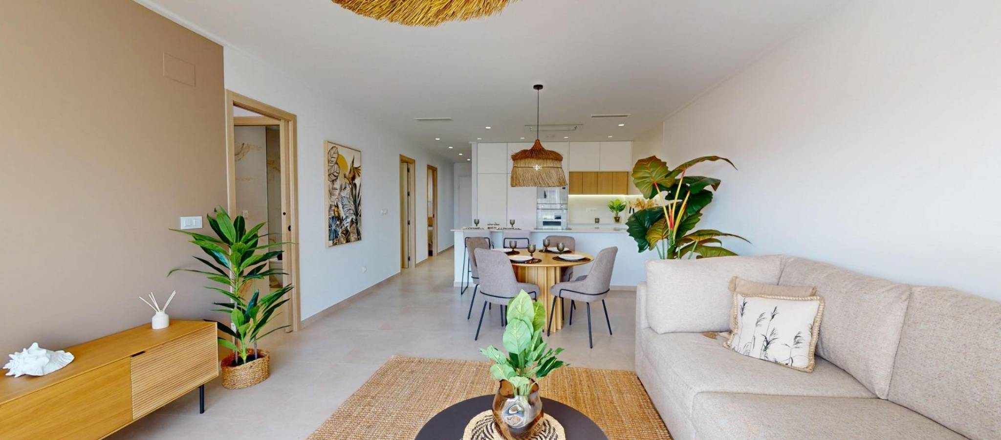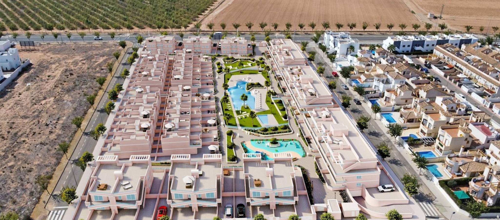 Eksklusivt nytt boligprosjekt i Pilar de la Horadada, Costa Blanca, Spania Moderne boliger nær sjøen Oppdag dette nye boligkomplekset i Pilar de la Horadada, en privilegert beliggenhet på Costa Blanca. Dette prosjektet ligger bare 2 km fra stranden, og tilbyr et bredt utvalg av boliger med 3 soverom og 2 bad, med privat parkering inkludert i prisen. Prosjektet har romslige fellesområder, inkludert et felles svømmebasseng, anlagte hager og et lekeområde for barn, ideelt for hele familien. Ulike typologier som passer din livsstil Dette prosjektet tilbyr ulike boalternativer: Leiligheter i første etasje med private hager. Leiligheter i mellometasjen med store terrasser. Toppleiligheter med privat solarium. Bungalower i første etasje med privat hage. Bungalower i toppetasjen med privat hage og solarium. Rekkehus og tomannsboliger med hage og solarium. Alle boligene er designet i en moderne og funksjonell stil, med materialer av høy kvalitet og moderne utførelser. Utstyr og kvaliteter Eiendommene er utstyrt med: Forhåndsinstallasjon av kanalisert klimaanlegg. Utvendig aluminiumsramme med termosperre og doble vinduer. Forsterket inngangsdør for økt sikkerhet. Aerotermisk system for effektiv varmtvannsproduksjon. Innebygde garderober med LED-belysning. Baderomsmøbler og skjermer inkludert. Pilar de la Horadada: Et privilegert sted å bo i Pilar de la Horadada er en kystby i den sørlige enden av Costa Blanca, med et eksepsjonelt klima og en utmerket livskvalitet. Den livlige hovedgaten tilbyr et bredt utvalg av butikker, supermarkeder, restauranter og viktige tjenester. Bare 5 minutters kjøring unna finner du de fantastiske strendene Torre de la Horadada og Mil Palmeras, med gyllen sand og en nydelig strandpromenade. I tillegg har området sykkelstier, turstier og flere sportsaktiviteter. Avstander til viktige punkter Lo Romero golfbane - 5 km (10 minutters kjøring). Corvera lufthavn (Murcia) - 40 km (40 minutter med bil). Alicante lufthavn - 55 km (55 minutter med bil). Zenia Boulevard kjøpesenter - 15 km (15 minutter med bil). Torre de la Horadada Marina - 3 km (5 minutter med bil). Be om mer informasjon i dag Ikke gå glipp av denne muligheten til å kjøpe en splitter ny eiendom i et av de beste områdene på Costa Blanca. Kontakt oss nå for mer informasjon og for å avtale visning.