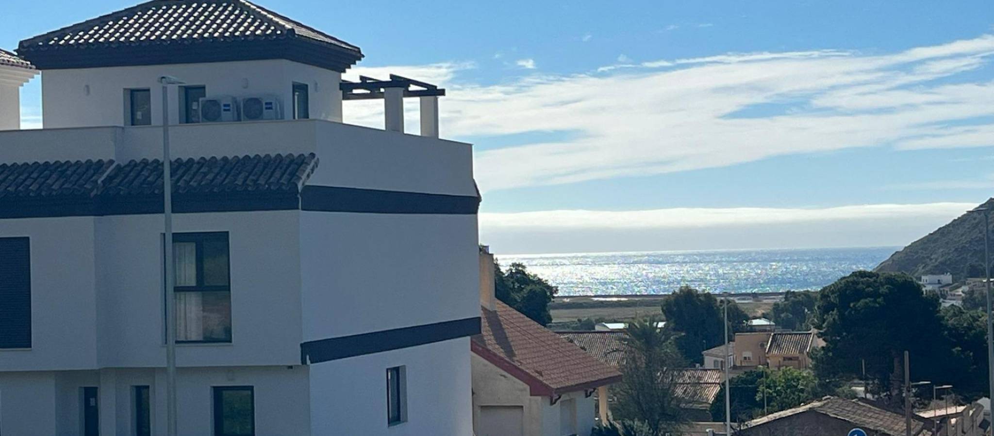 Nybyggede rekkehus med havutsikt i Portman Murcia Eksklusivt boligområde i Portman Bay Dette eksklusive boligprosjektet med 39 nybyggede rekkehus ligger høyt oppe i Portman og tilbyr panoramautsikt over Middelhavet og den vakre Portman Bay. Boligene ligger bare 1,6 km fra stranden og er designet for å omfavne den autentiske middelhavsstilen i fredelige og privilegerte naturomgivelser. Portman er en sjarmerende kystby omgitt av beskyttende fjell og åpen mot havet, med sørlig beliggenhet og milde temperaturer hele året. Området er ideelt for friluftsentusiaster, med tur- og terrengsykkelløyper, krystallklart vann for svømming og en avslappet atmosfære som er perfekt for å koble av. Samtidig ligger det bare 15 minutter med bil fra Cartagena, hvor du finner kjøpesentre, sykehus, kulturelle attraksjoner og en livlig marina. Moderne rekkehus med 2 og 3 soverom og privat solarium Prosjektet tilbyr rekkehus med 2 og 3 soverom, 1 komplett bad og 1 gjestetoalett, fordelt på 3 eller 4 etasjer, pluss et privat solarium på taket. Hver eiendom er nøye designet for å maksimere komfort, funksjonalitet og naturlig lys. Fra ditt private solarium kan du nyte 360 graders utsikt over havet og det omkringliggende landskapet, noe som skaper et unikt rom for avslapning, soling eller underholdning. Høykvalitets spesifikasjoner og praktiske rom Disse nybygde boligene leveres med materialer av høy kvalitet og moderne finish, inkludert: Moderne kjøkken utstyrt med hvitevarer fra toppmerker Pansret inngangsdør Bad med servantskap, speil, dusjvegger og elektriske håndkletørkere Aerotermisk system for varmt vann Forhåndsinstallasjon for split-klimaanlegg Romslig privat underjordisk garasje og oppbevaringsområde Store oppbevaringsområder gir ideell plass til sykler, strandutstyr eller dykkerutstyr, noe som gjør disse boligene perfekte for de som liker de mange friluftsaktivitetene som er tilgjengelige i regionen. Fellesområder for avslapning og sosialt samvær Boligkomplekset har anlagte hager og et felles svømmebasseng, som gir beboerne et komfortabelt og trygt miljø hvor de kan slappe av og nyte tiden med familie og venner. Avstander til viktige severdigheter Strand 1,6 km Cartagena 15 km La Manga Club Golf 12 km Cartagena havn 15 km Murcia internasjonale lufthavn 35 km Alicante lufthavn 120 km Oppdag din middelhavsstil i Portman Enten du er på utkikk etter en permanent bolig eller et feriehus ved sjøen, tilbyr disse rekkehusene i Portman utsikt, komfort og et eksepsjonelt naturmiljø. Kontakt oss i dag for å få mer informasjon eller for å avtale et besøk til dette enestående nye boligprosjektet.