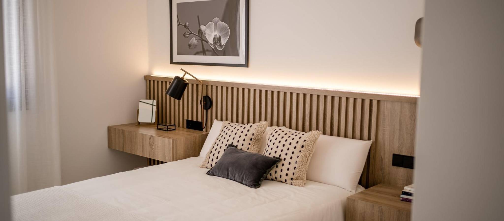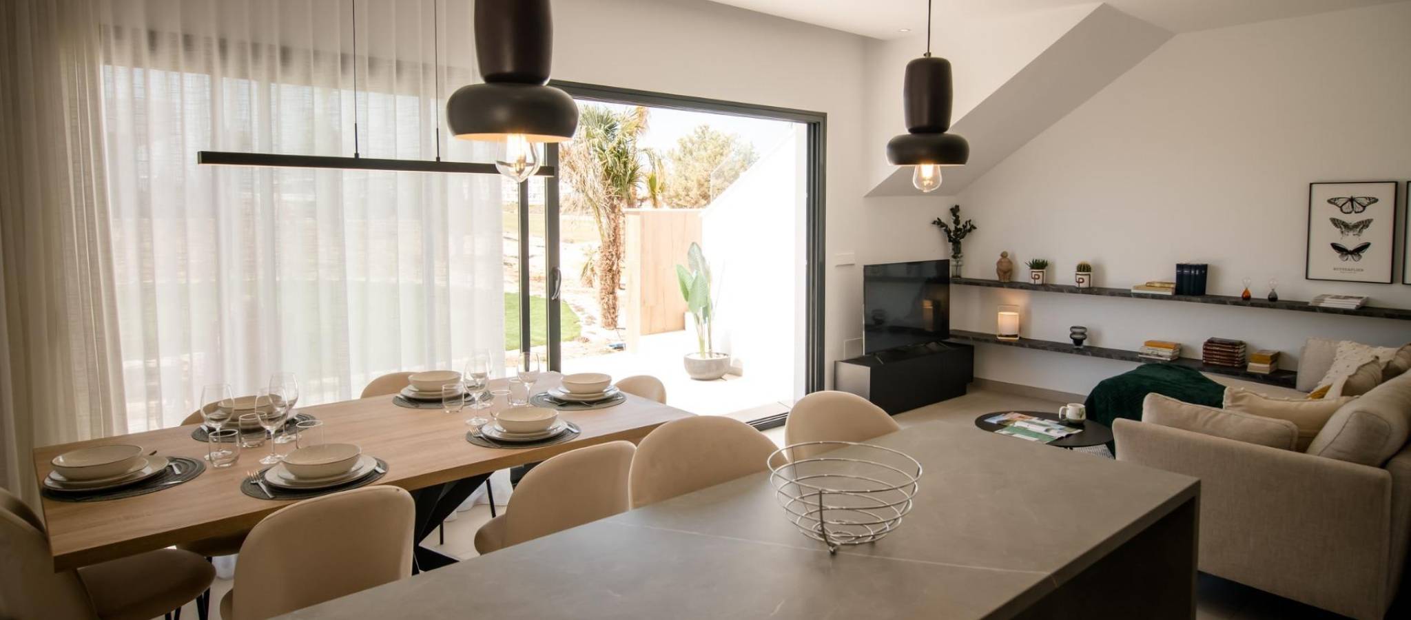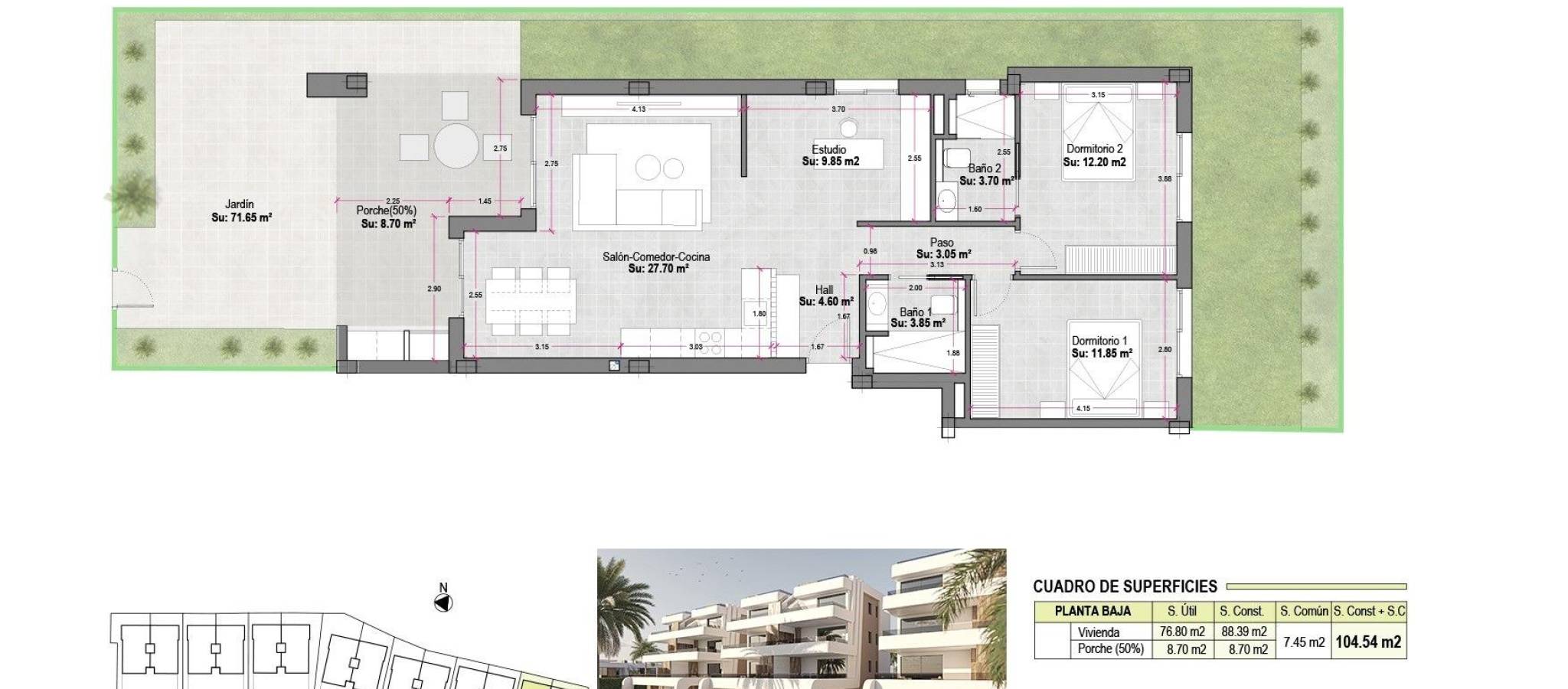 Nybyggede leiligheter på Condado de Alhama Golf Resort Murcia Moderne boende på et prestisjetungt golfresort Oppdag disse nybyggede leilighetene som ligger på det kjente Condado de Alhama Golf Resort i regionen Murcia. Dette eksklusive boligkomplekset med villaer og leiligheter ligger i et sikkert resort omgitt av natur, idrettsanlegg og en mesterskapsgolfbane, og tilbyr en eksepsjonell livsstil i et fredelig middelhavsmiljø. Condado de Alhama er et veletablert golfresort med kjøpesenter, supermarkeder, barer, restauranter, idrettsanlegg og anlagte hager. Det er et ideelt valg både for permanent bolig og feriebolig, og kombinerer komfort, sikkerhet og fritid. Moderne leiligheter med terrasser og solarium Leilighetene er fordelt på lave blokker med 8 enheter, med boliger i første, andre og tredje etasje. Hver blokk har heis som gir enkel tilgang til alle etasjer. Eierskapene i første etasje har 3 soverom og 2 komplette bad, med mulighet for å tilpasse til 2 soverom for et større oppholdsrom hvis ønskelig. De øvrige enhetene har 2 soverom og 2 bad. Leilighetene i øverste etasje har et privat solarium, perfekt for soling og for å nyte den åpne utsikten. Alle boligene er designet med et moderne åpent konsept, som integrerer et fullt utstyrt kjøkken med stue og spisestue. Romslige terrasser med sommerkjøkken utvider boarealet utendørs, slik at beboerne kan nyte det varme klimaet hele året. Høykvalitets spesifikasjoner og fellesarealer Bebyggelsen er bygget etter høye standarder og inkluderer: Fullt møblert og utstyrt kjøkken med integrert kjøleskap og oppvaskmaskin, induksjonstopp, avtrekksvifte, stekeovn og mikrobølgeovn i søyle Forhåndsinstallasjon for kanalisert klimaanlegg Aerotermisk system for varmt vann Pansret inngangsdør Fullt utstyrte bad med servantskap, hengende toalett og dusjvegger Innvendig og utvendig belysning Utendørs parkeringsplass for hver leilighet Oppbevaringsrom i utvalgte enheter Beboerne kan nyte godt av flere felles svømmebassenger omgitt av grønne områder, som skaper en avslappende og familievennlig atmosfære. Førsteklasses beliggenhet og avstander Alhama Signature Golf designet av Jack Nicklaus innenfor ferieanlegget Strendene i Mazarron og Bolnuevo 20 km Murcia internasjonale lufthavn 20 km Murcia by 40 km Cartagena 35 km Mazarron tilbyr mer enn 35 km kystlinje, inkludert flere strender med Blått flagg som er anerkjent for sin kvalitet og naturlige skjønnhet. Ditt hjem i Condado de Alhama venter Disse nybygde leilighetene tilbyr golf, sol og utmerkede fasiliteter i et av Murcias mest komplette feriesteder. Kontakt oss i dag for å få mer informasjon og sikre deg din eiendom på Condado de Alhama Golf Resort.