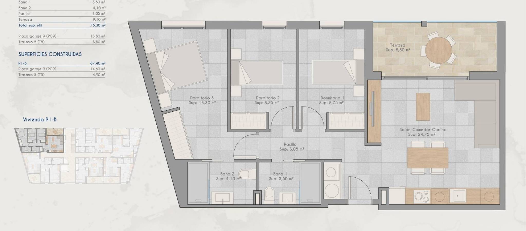 Nybyggede leiligheter til salgs i Lo Pagan (San Pedro del Pinatar) nær stranden Moderne middelhavsstil i Lo Pagan Oppdag disse stilige nybyggede leilighetene til salgs i Lo Pagan, et sjarmerende kystområde i San Pedro del Pinatar på den vakre Costa Calida. Dette boligprosjektet ligger i det velkjente nabolaget Los Cuarteros og tilbyr en privilegert livsstil bare 500 meter fra stranden og i nærheten av alle nødvendige tjenester, restauranter, butikker og fritidsområder. Lo Pagan er kjent for sin avslappede atmosfære ved sjøen, det rolige vannet i Mar Menor og mer enn 300 soldager hvert år. Området kombinerer tradisjonell spansk sjarm med moderne fasiliteter, noe som gjør det til et ideelt reisemål både for permanent opphold og ferieboliger. Moderne leiligheter med terrasser og private solterrasser Utbyggingen tilbyr et utvalg av leiligheter i første og andre etasje med romslige terrasser, samt eksklusive penthouse-leiligheter med private solterrasser på taket. Solterrassene har pergola og grillområde, noe som skaper den perfekte rammen for å spise ute og slappe av under middelhavssolen. Hver eiendom er designet for å kombinere moderne arkitektur med varm middelhavsstil. Det åpne kjøkkenet integreres sømløst med stue og spisestue, og skaper lyse og komfortable oppholdsrom. Store terrasser utvider innendørsarealene og gir det perfekte stedet for frokost eller kveldssamlinger utendørs. Soverommene har innebygde garderober, og de moderne badene er fullt utstyrte, noe som gir komfort og elegant finish i hele hjemmet. Kvalitetsfunksjoner og fellesfasiliteter Disse boligene er bygget med sans for detaljer og har høykvalitets spesifikasjoner for å sikre komfort og effektivitet. Fullt møblert kjøkken utstyrt med hvitevarer Fullt utstyrte bad med moderne finish Fullt installert klimaanlegg Privat parkeringsplass og bod inkludert i hver bolig Beboerne kan også nyte gode fellesfasiliteter, inkludert et svømmebasseng omgitt av avslapningsområder og et fullt utstyrt treningsstudio, ideelt for å opprettholde en aktiv livsstil hele året. Utmerket beliggenhet på Costa Calida Dette boligprosjektet har en strategisk beliggenhet nær strender, golfbaner og viktige destinasjoner langs kysten. Playa de Villananitos 0,5 km Real Club Nautico de Lo Pagan 0,5 km Lo Romero Golf 10 km Murcia internasjonale lufthavn 40 km Cartagena 35 km De nærliggende strendene i Mar Menor, som Playa de La Puntica, er kjent for sin fine sand og rolige vann, ideelt for svømming, seiling og vannsport. Ditt nye hjem ved sjøen venter Nyt sol, strender og et livlig kystliv i et av de mest ettertraktede områdene på Costa Calida. Kontakt oss i dag for mer informasjon om disse nybygde leilighetene i Lo Pagan og sikre deg din plass ved sjøen.