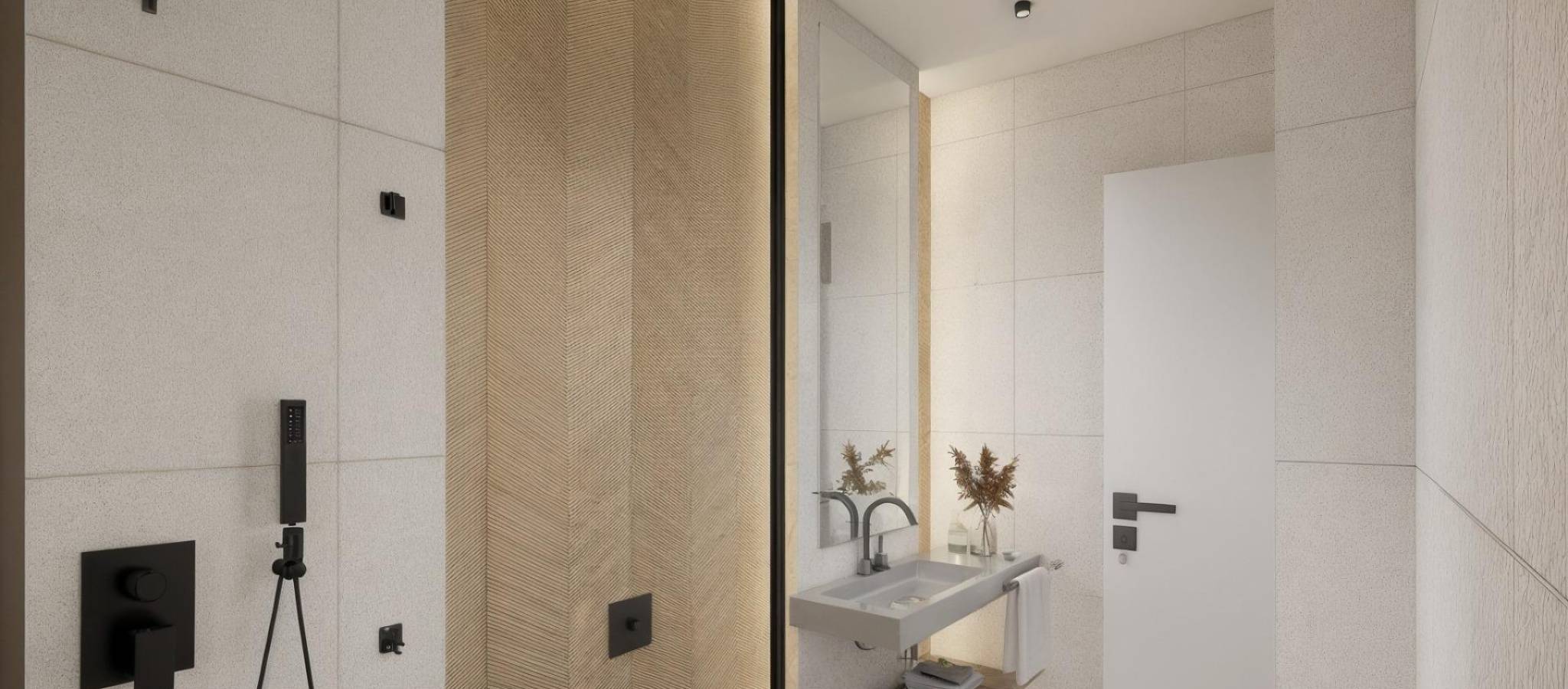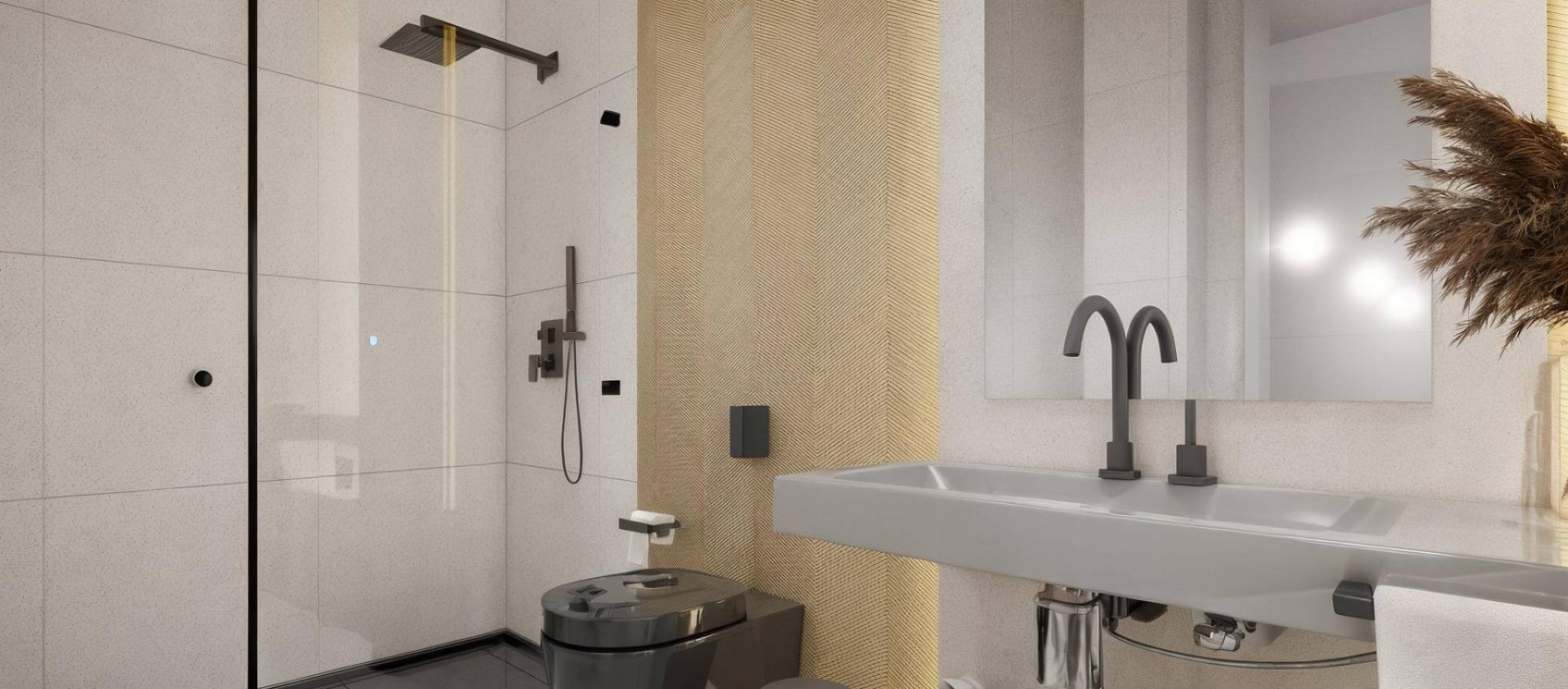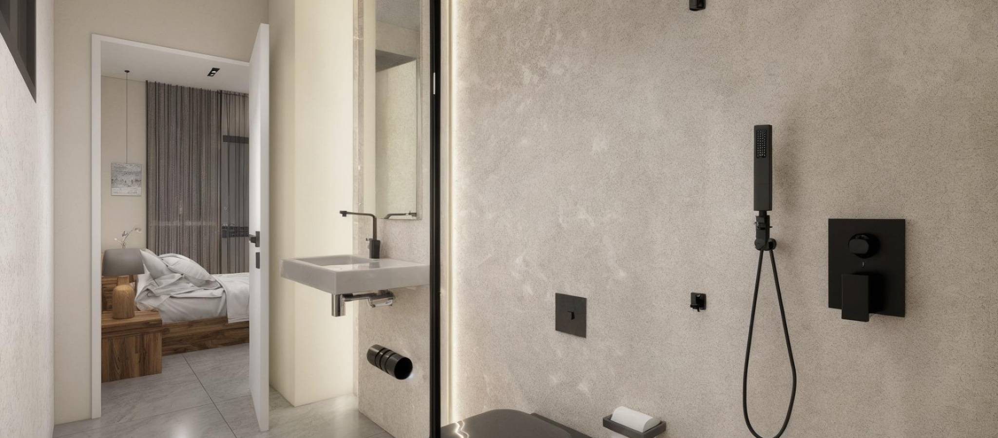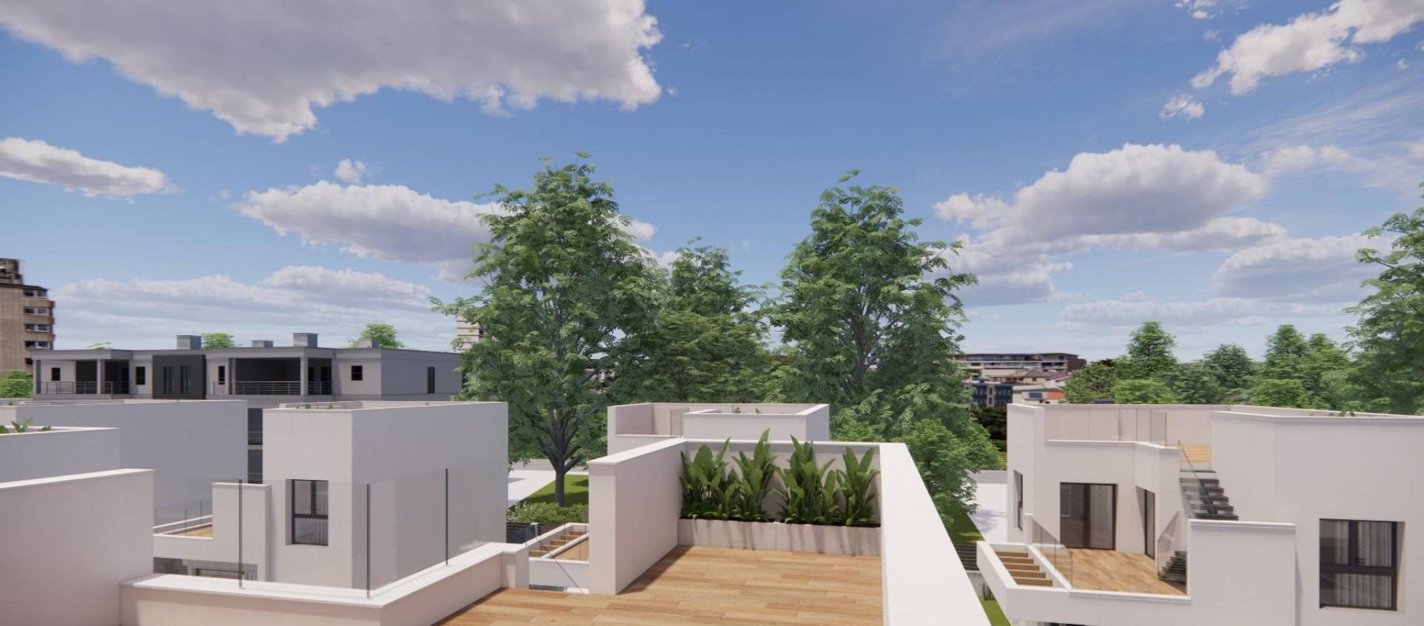 Moderne, nybygde villaer i La Herrada Los Montesinos med privat svømmebasseng Eksklusivt boligprosjekt i fredelige omgivelser Dette eksklusive boligprosjektet med 16 moderne villaer ligger i det prestisjefylte boligområdet La Herrada i Los Montesinos, og tilbyr privatliv, komfort og en utmerket livskvalitet. La Herrada er kjent for sin fredelige boligatmosfære, nærheten til dagligdagse fasiliteter og sin privilegerte beliggenhet mellom de berømte saltslettene Torrevieja og La Mata. Det er et ideelt sted for de som søker en avslappet og sunn middelhavsstil i den sørlige delen av Costa Blanca. Moderne design med optimalisert interiør Hver villa har 130 m² godt fordelt boareal fordelt på to etasjer, designet for å maksimere naturlig lys og funksjonalitet. Eiendommene er bygget på tomter fra 250 m² og tilbyr romslige uteområder som er perfekte for soling, underholdning eller avslapning ved det private bassenget. Komfortabel planløsning over to etasjer Første etasje har en åpen stue med fullt integrert kjøkken og direkte tilgang til hagen og bassengområdet. Denne etasjen har også to soverom, et komplett bad og et praktisk vaskerom. Ovenpå er det to romslige soverom, hvert med eget bad, hvorav det ene er en-suite. Begge soverommene har tilgang til en 28 m² åpen privat terrasse. For de som ønsker enda mer uteplass, er det et valgfritt solarium på taket tilgjengelig mot en ekstra kostnad. Høy kvalitet på finish og moderne funksjoner Villaene har kvalitetsfinish som baderomsmøbler, speil, dusjvegger og gulvvarme i alle bad. Det er forhåndsinstallert for sentral klimaanlegg, en motorisert inngangsport for biler, privat parkering på tomten og inngjerdet tilgang til boligområdet via en privat intern vei. Førsteklasses beliggenhet nær viktige fasiliteter og attraksjoner Guardamar og Torrevieja strender 9 km unna La Marquesa Golf, La Finca Golf og Vistabella Golf mindre enn 5 km unna Alicante flyplass 29 km unna Naturparker, saltsletter, sykkelruter og turstier i nærheten Bo komfortabelt i hjertet av Costa Blanca Disse nybygde villaene i Los Montesinos tilbyr den perfekte kombinasjonen av moderne komfort, naturlige omgivelser og utmerket tilgjengelighet. Enten du er på utkikk etter en permanent bolig eller et feriehus, tilbyr dette prosjektet alt du trenger for å nyte en fredelig og komfortabel middelhavsstil. Kontakt oss i dag for å avtale en visning og sikre deg ditt nye hjem i La Herrada.