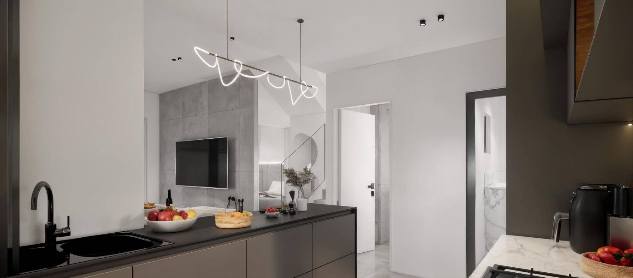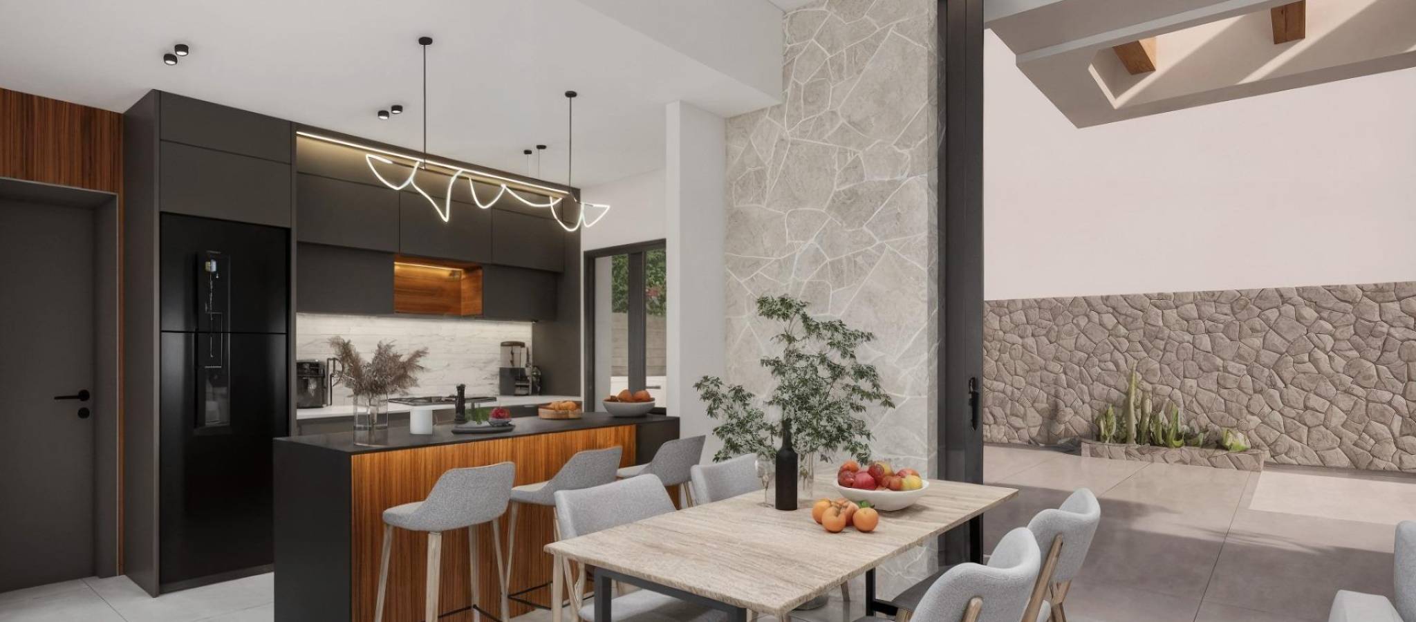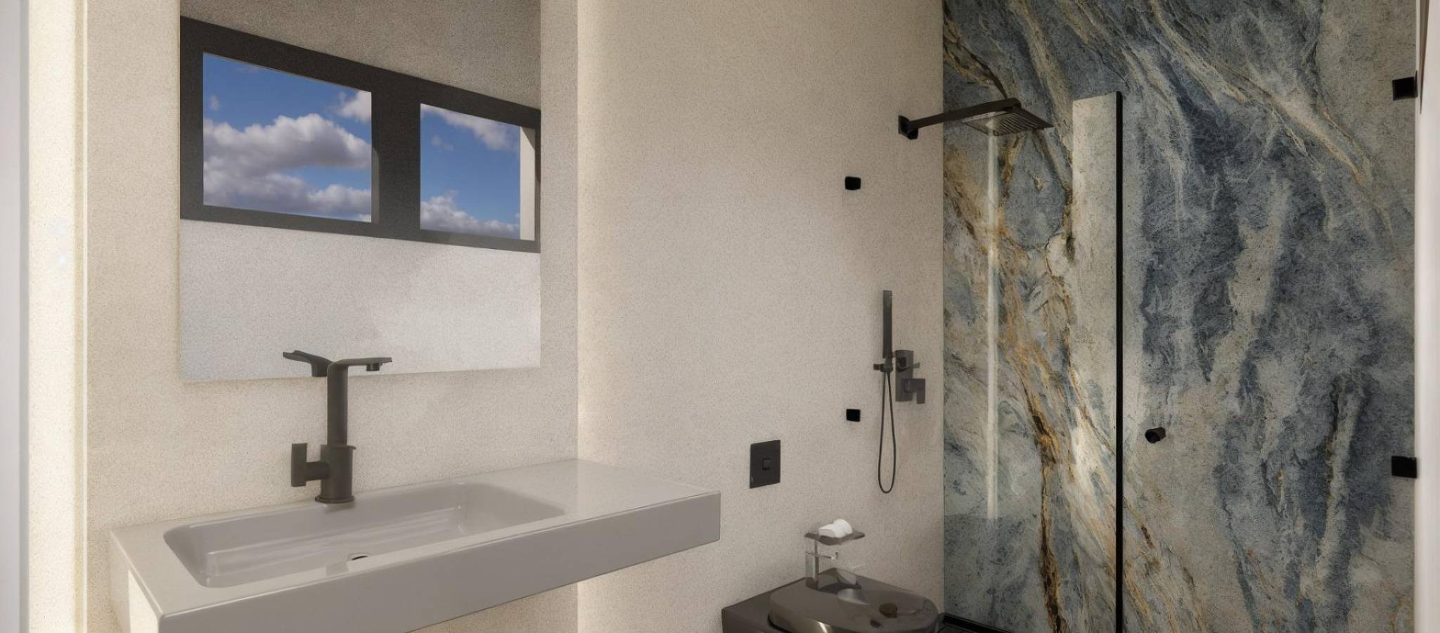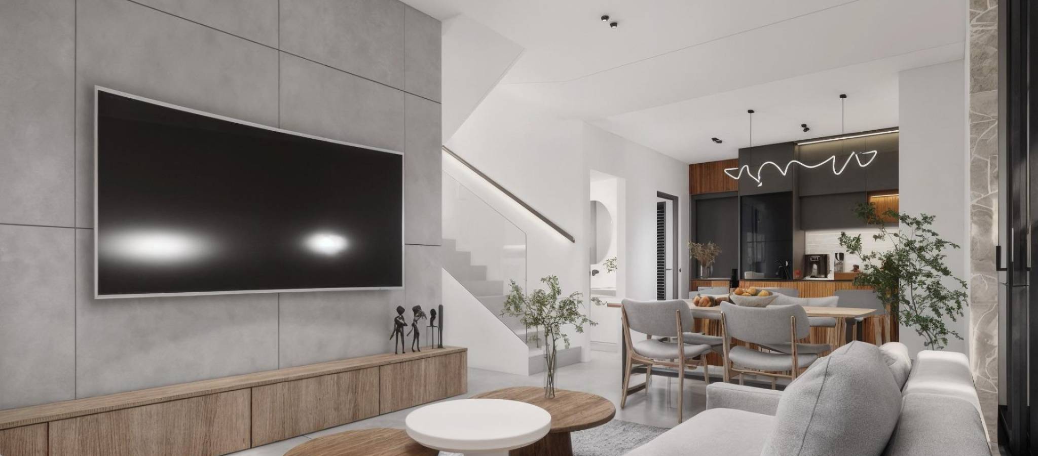 Moderne, nybygde villaer i La Herrada Los Montesinos med privat svømmebasseng Eksklusivt boligprosjekt i fredelige omgivelser Dette eksklusive boligprosjektet med 16 moderne villaer ligger i det prestisjefylte boligområdet La Herrada i Los Montesinos, og tilbyr privatliv, komfort og en utmerket livskvalitet. La Herrada er kjent for sin fredelige boligatmosfære, nærheten til dagligdagse fasiliteter og sin privilegerte beliggenhet mellom de berømte saltslettene Torrevieja og La Mata. Det er et ideelt sted for de som søker en avslappet og sunn middelhavsstil i den sørlige delen av Costa Blanca. Moderne design med optimalisert interiør Hver villa har 130 m² godt fordelt boareal fordelt på to etasjer, designet for å maksimere naturlig lys og funksjonalitet. Eiendommene er bygget på tomter fra 250 m² og tilbyr romslige uteområder som er perfekte for soling, underholdning eller avslapning ved det private bassenget. Komfortabel planløsning over to etasjer Første etasje har en åpen stue med fullt integrert kjøkken og direkte tilgang til hagen og bassengområdet. Denne etasjen har også to soverom, et komplett bad og et praktisk vaskerom. Ovenpå er det to romslige soverom, hvert med eget bad, hvorav det ene er en-suite. Begge soverommene har tilgang til en 28 m² åpen privat terrasse. For de som ønsker enda mer uteplass, er det et valgfritt solarium på taket tilgjengelig mot en ekstra kostnad. Høy kvalitet på finish og moderne funksjoner Villaene har kvalitetsfinish som baderomsmøbler, speil, dusjvegger og gulvvarme i alle bad. Det er forhåndsinstallert for sentral klimaanlegg, en motorisert inngangsport for biler, privat parkering på tomten og inngjerdet tilgang til boligområdet via en privat intern vei. Førsteklasses beliggenhet nær viktige fasiliteter og attraksjoner Guardamar og Torrevieja strender 9 km unna La Marquesa Golf, La Finca Golf og Vistabella Golf mindre enn 5 km unna Alicante flyplass 29 km unna Naturparker, saltsletter, sykkelruter og turstier i nærheten Bo komfortabelt i hjertet av Costa Blanca Disse nybygde villaene i Los Montesinos tilbyr den perfekte kombinasjonen av moderne komfort, naturlige omgivelser og utmerket tilgjengelighet. Enten du er på utkikk etter en permanent bolig eller et feriehus, tilbyr dette prosjektet alt du trenger for å nyte en fredelig og komfortabel middelhavsstil. Kontakt oss i dag for å avtale en visning og sikre deg ditt nye hjem i La Herrada.