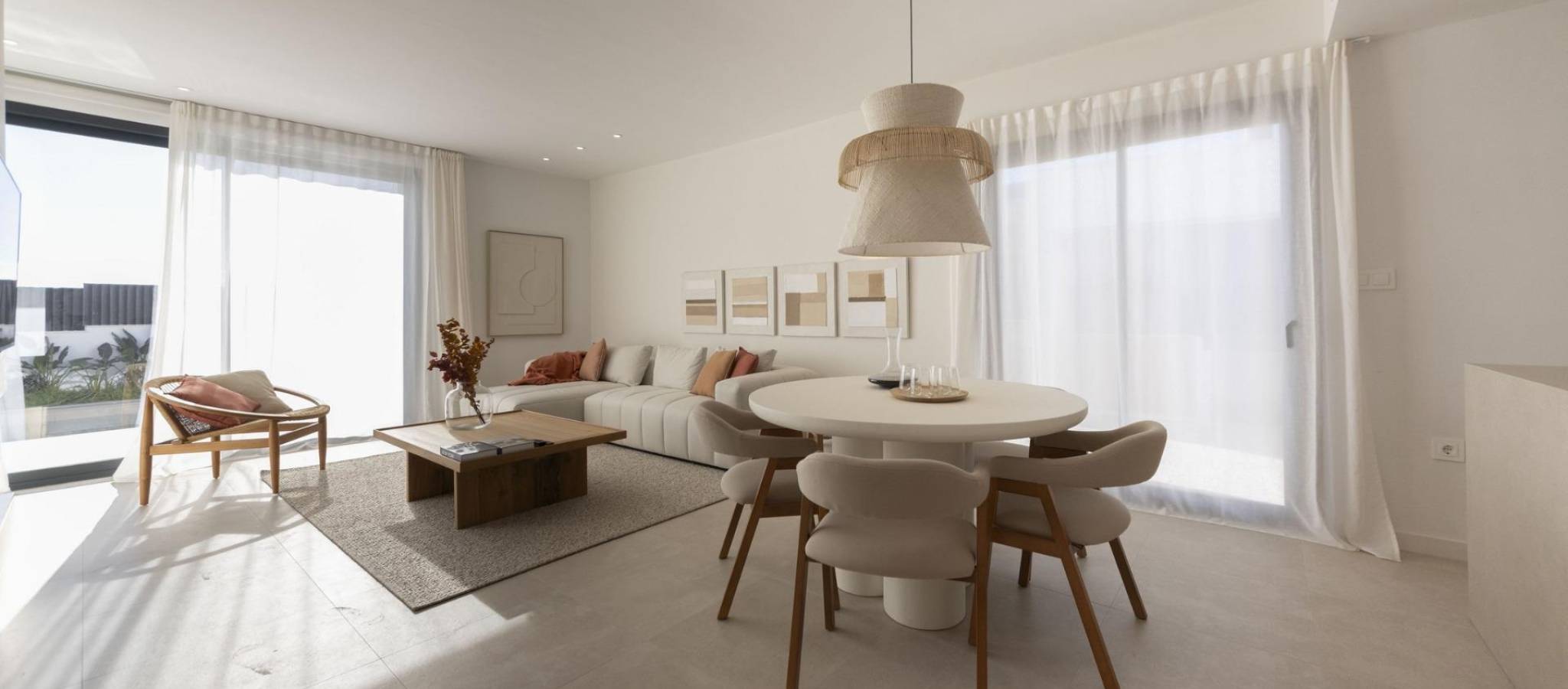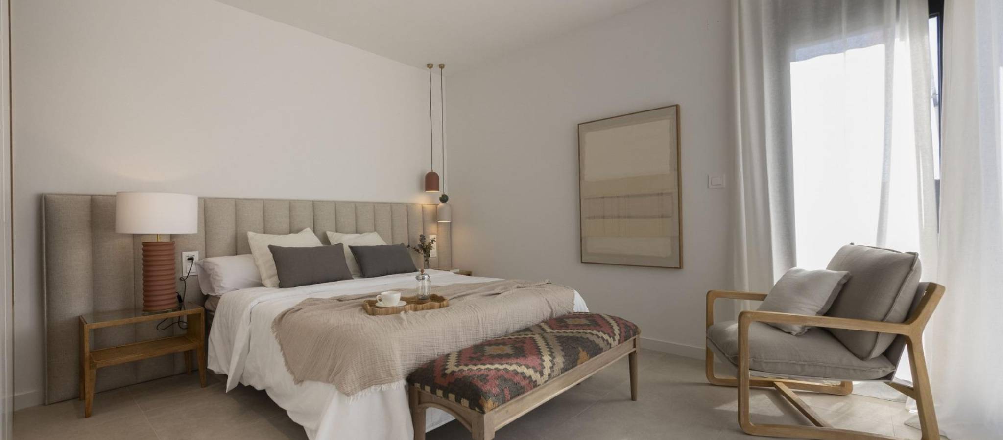 Nybygde villaer i Altaona Golf Resort i Murcia med privat basseng og fjellutsikt Moderne villaer i Altaona Golf Resort i Murcia Oppdag et eksklusivt nybyggprosjekt med moderne villaer i Altaona Golf Resort, et av de mest attraktive boligområdene i Murcia. Omgitt av naturlandskap og fjell tilbyr dette sikre golfresortet et fredelig miljø, samtidig som det ligger bare en kort kjøretur fra byen Murcia og Middelhavskysten. Disse nybygde villaene er designet for å tilby komfort, privatliv og en avslappet middelhavsstil. Prosjektet tilbyr et utvalg av villaer i ett plan med valgfritt solarium eller i to plan, alle med tre soverom og to bad, inkludert et hovedsoverom med eget bad. Romslig design med private hager og basseng Hver villa er bygget på en privat tomt på minst 300 m², og tilbyr rikelig med uteplass for å nyte solskinnet hele året. Eiendommene inkluderer privat svømmebasseng, anlagte hageområder og parkering på tomten. Interiøret er utformet for å maksimere naturlig lys og skape en sømløs overgang mellom inne- og utearealene. Åpne stue- og spisestueområder går direkte ut til terrassen og bassenget, og skaper den perfekte rammen for avslapning eller for å ha besøk av familie og venner. Kvalitetsutførelse og moderne funksjoner Disse villaene er bygget med materialer av høy kvalitet og moderne byggeteknikker for å sikre komfort og energieffektivitet. Funksjonene inkluderer en forsterket sikkerhetsinngangsdør, fullt utstyrt kjøkken med hvitevarer, gulvvarme på badene og LED-belysning innendørs. Ytterligere spesifikasjoner inkluderer forhåndsinstallasjon for kanalisert klimaanlegg og varmtvannsproduksjon via et energieffektivt aerotermisk system, som gir både bærekraft og kostnadsbesparelser. Førsteklasses beliggenhet nær golf, by og kyst Altaona Golf Resort er kjent for sin 18-hulls golfbane, fredelige omgivelser og utmerket sikkerhet, noe som gjør det ideelt for både permanent bolig og fritidsbolig. Anlegget tilbyr en unik kombinasjon av natur, sport og nærhet til viktige destinasjoner. Murcias sentrum ligger bare 15 km unna og tilbyr et bredt utvalg av butikker, restauranter, kulturelle attraksjoner og tjenester. Strendene ved Mar Menor og Middelhavskysten ligger omtrent 20 km unna, perfekt for å nyte solfylte dager ved sjøen. Andre viktige avstander inkluderer Murcia Corvera lufthavn 15 km, Cartagena by 35 km og flere golfbaner innen kort kjøretur, noe som gjør dette til en ideell beliggenhet for golfelskere og internasjonale kjøpere. Ideell investering og mulighet for middelhavslivsstil Disse nybygde villaene i Altaona Golf Resort tilbyr en utmerket mulighet til å nyte en livsstil av høy kvalitet i et naturlig og trygt miljø, med enkel tilgang til både byen og kysten. Kontakt oss i dag for mer informasjon eller for å avtale en visning, og oppdag ditt nye hjem i Murcia.