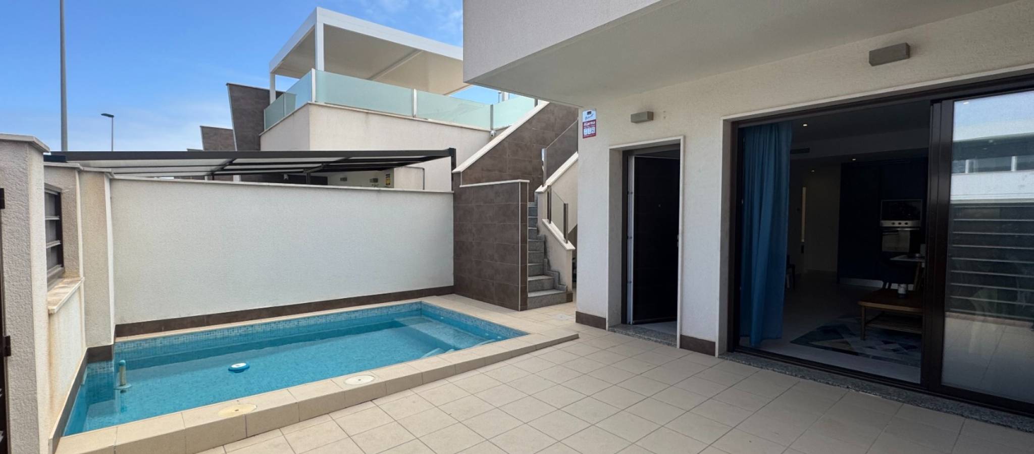Denne moderne eiendommen ligger i hjertet av San Pedro del Pinatar, og byr på både stil og bekvemmelighet. Bygget i 2018, utført i førsteklasses materialer og moderne design, gir dette hjemmet en komfortabel livsstil på et ettertraktet sted. Eiendommen har en ideell beliggenhet innen gangavstand til alle lokale fasiliteter i det sjarmerende kystområdet San Pedro del Pinatar. Enten du leter etter en familiebolig eller et feriested, leverer dette moderne hjemmet på alle nivåer.