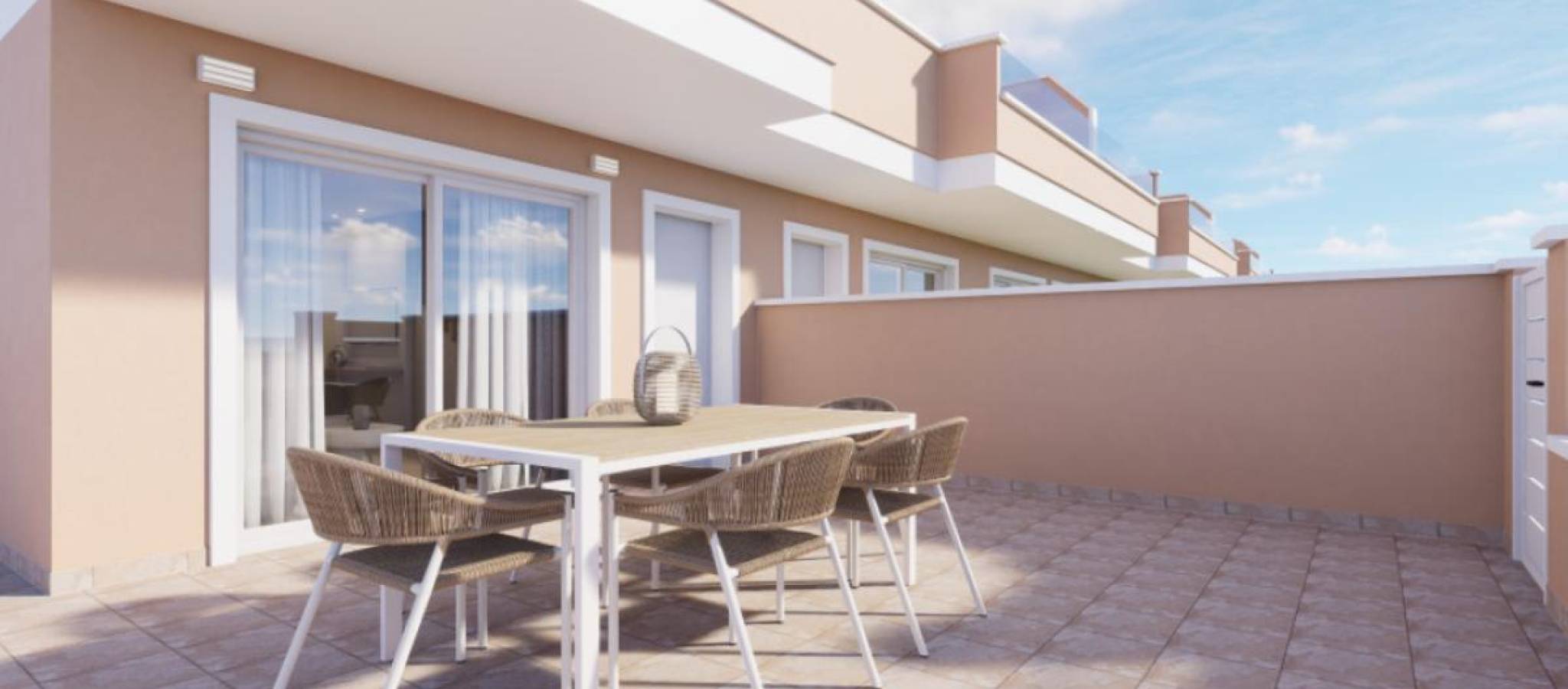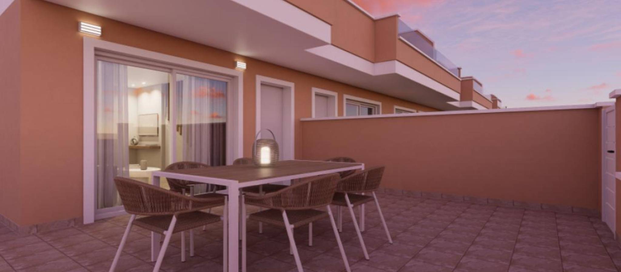 Eksklusiv nyopprettet boligområde i byen Pilar de la Horadada, på den vakre Costa Blanca. Kun 2 km fra sjøen tilbyr dette komplekset moderne boliger med 3 soverom og 2 bad, inkludert privat parkering i prisen. Boligområdet har store og hyggelige fellesområder, som et felles svømmebasseng, anlagte hageområder og en lekeplass, perfekt for hele familien å nyte. Denne utbyggingen tilbyr ulike typologier som tilpasser seg dine behov: Rekkehus og halvpart av tomannsbolig med hage og solarium Alle boligene er designet i en moderne stil, med materialer av høy kvalitet og moderne finish. Boligene har utstyr av førsteklasses kategori, inkludert: Preinstallasjon for klimaanlegg via kanalerUtvendig aluminiumstømmer med termisk brudd og dobbel glassArmerte inngangsdører for økt sikkerhetAerotermisk system for effektiv produksjon av varmtvannInnebygde skap med LED-belysningBadmøbler og dusjvegger inkludert Plassert i sør på Costa Blanca tilbyr Pilar de la Horadada et spektakulært kystmiljø med et misunnelsesverdig klima og en eksepsjonell livskvalitet. Det livlige sentrum kan by på et variert utvalg av butikker, supermarkeder, restauranter og nødvendige tjenester. På bare 5 minutter med bil kan man nyte strendene i Torre de la Horadada og Mil Palmeras, med gyllen sand og en sjarmerende strandpromenade. I tillegg har området sykkelstier, turstier og et bredt utvalg av sportsaktiviteter.