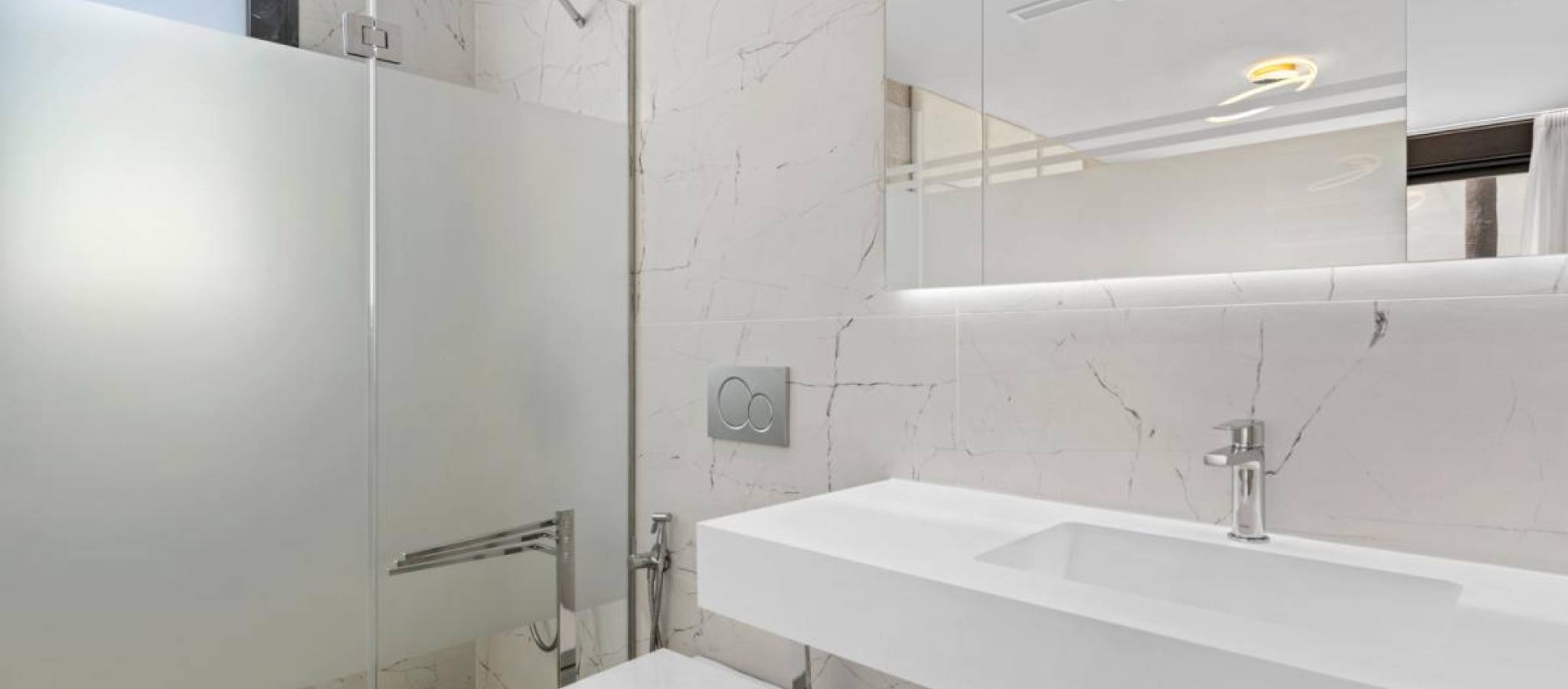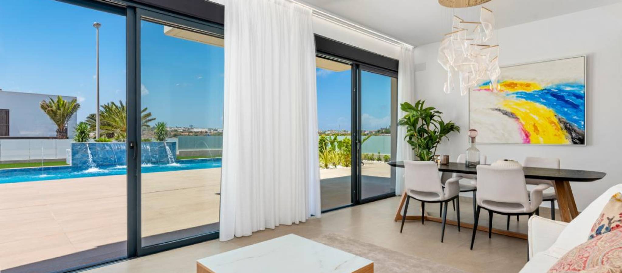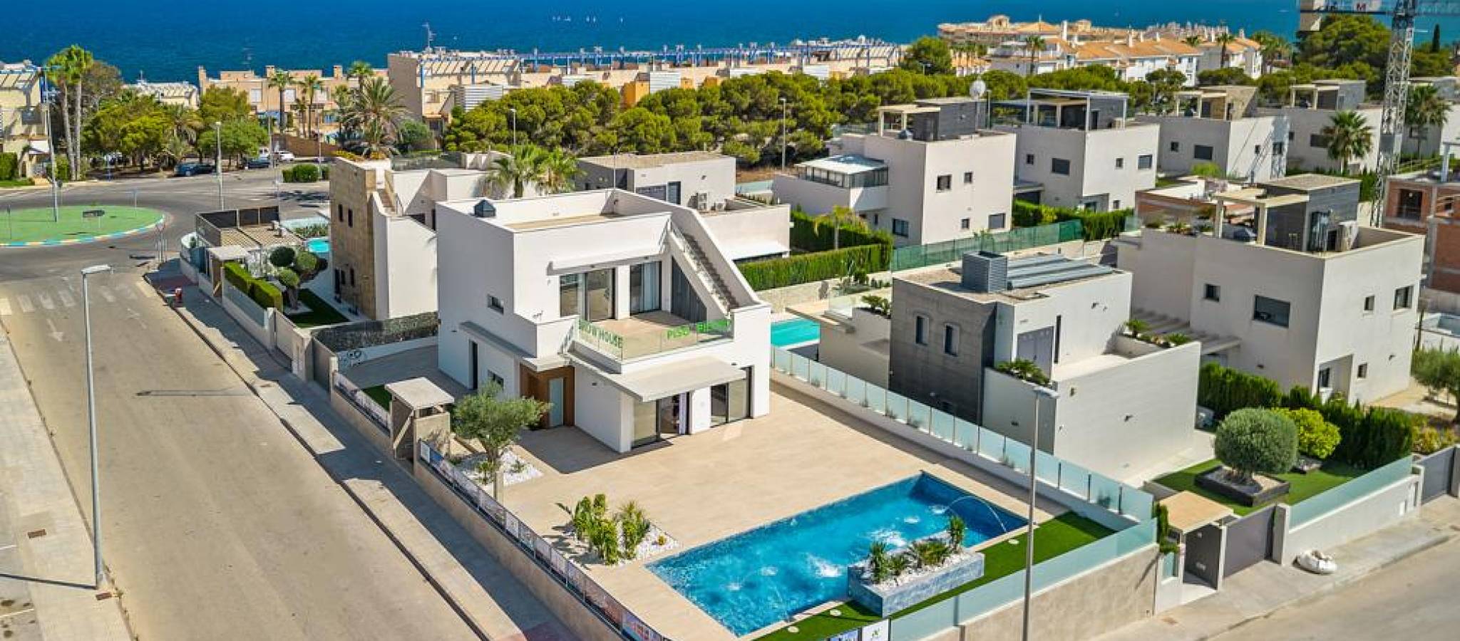 Eksklusiv villa av nybygg beliggende i det prestisjetunge området, kun fire minutter fra strendene og omgitt av et bredt utvalg av tjenester, butikker og fritidstilbud. Boligen skiller seg ut med sine romslige interiørområder og et moderne design som fremhever naturlig lys gjennom store vindusflater. Den åpne stue-spisestuen kobles direkte til utendørsterrassen, hvor det finnes et privat basseng med fossefall, og skaper en perfekt atmosfære for avslapning og utendørs nytelse. Den private hagen gir et ideelt rom for å arrangere grillfester eller skape avslapningsområder, mens solariumet lar deg nyte unike øyeblikk under den middelhavske himmelen. Innredningen inkluderer: 3 soverom3 bad2 stuer2 kjøkken Arkitekturen satser på komfort og allsidighet, og tillater tilpasning av hvert rom til ulike livsstiler og behov. Boligen tilbyr også muligheten til å tilpasse finish, møbler og dekorative elementer, og skaper et hjem helt skreddersydd og tilpasset fremtidige eiers smak.