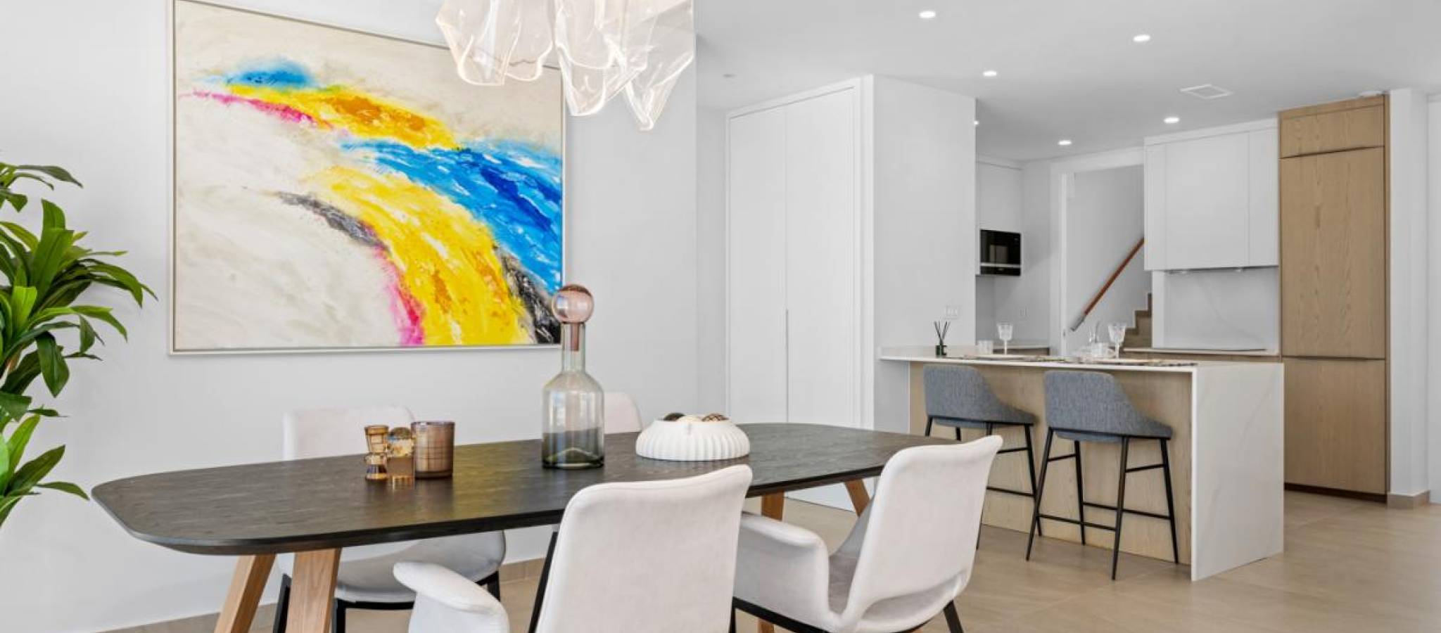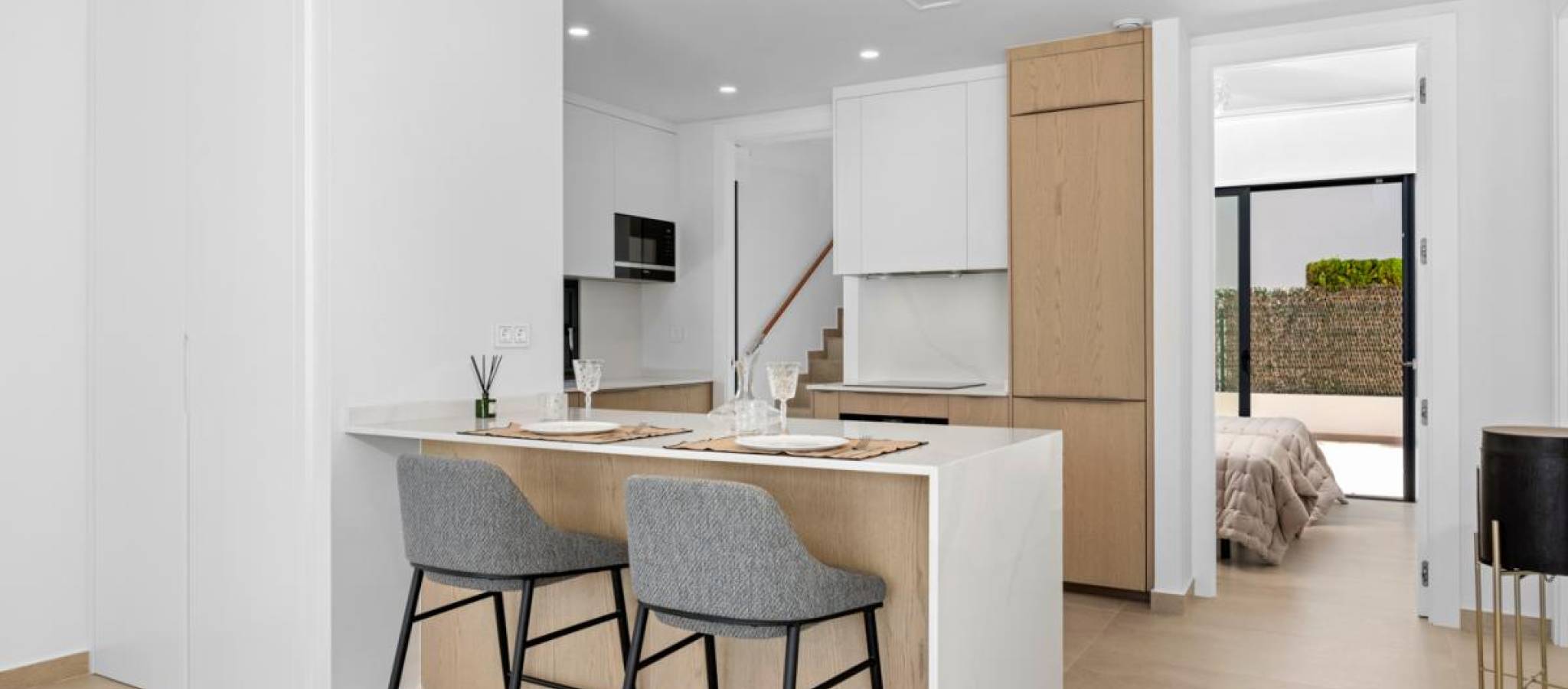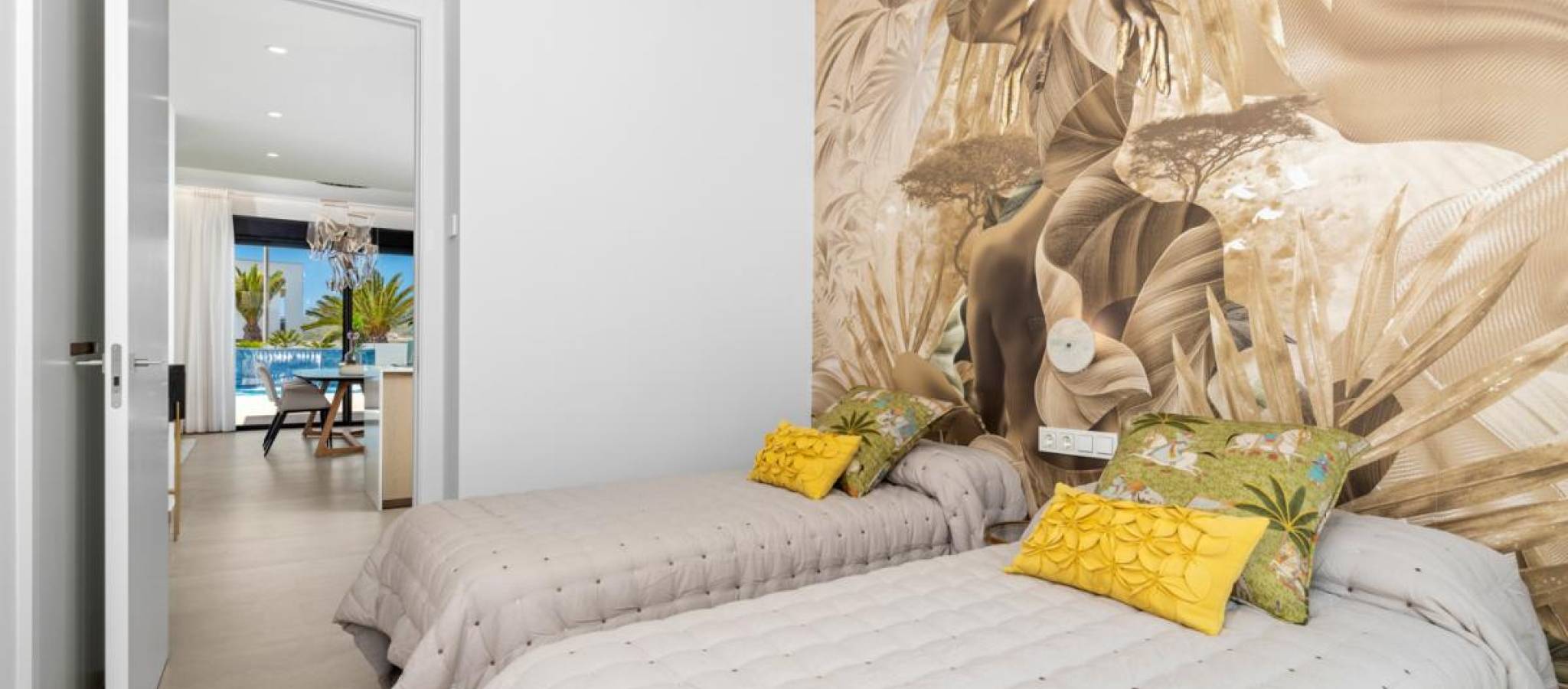 Eksklusiv villa av nybygg beliggende i det prestisjetunge området, kun fire minutter fra strendene og omgitt av et bredt utvalg av tjenester, butikker og fritidstilbud. Boligen skiller seg ut med sine romslige interiørområder og et moderne design som fremhever naturlig lys gjennom store vindusflater. Den åpne stue-spisestuen kobles direkte til utendørsterrassen, hvor det finnes et privat basseng med fossefall, og skaper en perfekt atmosfære for avslapning og utendørs nytelse. Den private hagen gir et ideelt rom for å arrangere grillfester eller skape avslapningsområder, mens solariumet lar deg nyte unike øyeblikk under den middelhavske himmelen. Innredningen inkluderer: 3 soverom3 bad2 stuer2 kjøkken Arkitekturen satser på komfort og allsidighet, og tillater tilpasning av hvert rom til ulike livsstiler og behov. Boligen tilbyr også muligheten til å tilpasse finish, møbler og dekorative elementer, og skaper et hjem helt skreddersydd og tilpasset fremtidige eiers smak.