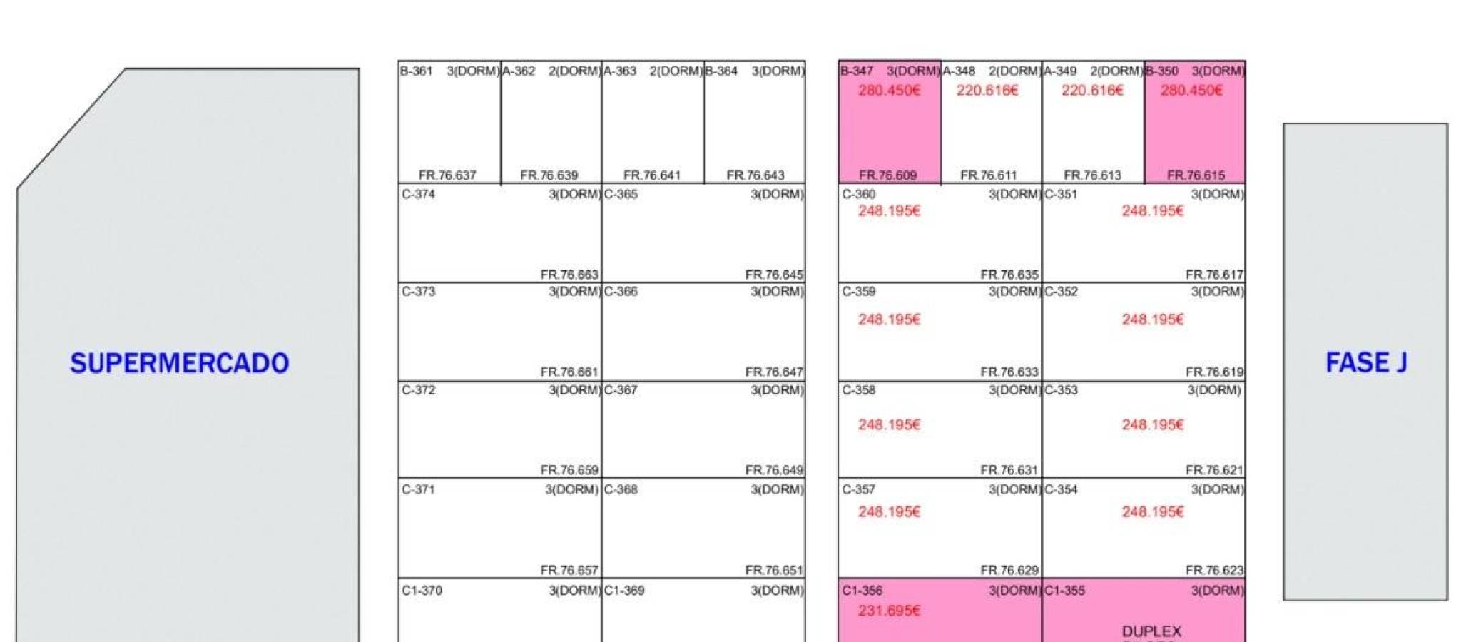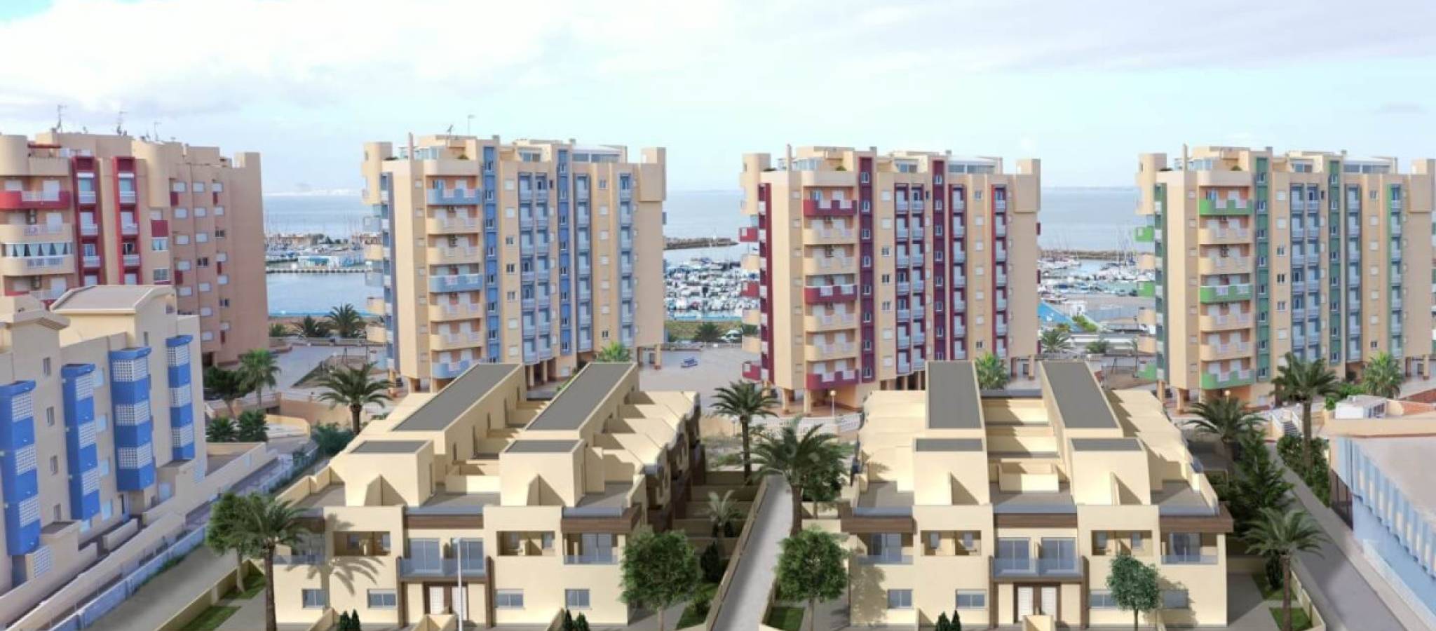 Dette eksepsjonelle boligutviklingsprosjektet ligger på en unik beliggenhet i Murcia, La Manga Del Mar Menor, på en privilegert tomt langs kanalen. Det ligger bare 50 meter fra den fantastiske kysten av Middelhavet, og kun 800 meter fra et pulserende område fylt med liv, med barer, kafeer, restauranter, butikker og andre essensielle tjenester som supermarkeder, apotek og banker som beriker den daglige opplevelsen. I sluttfasen av dette fascinerende prosjektet tilbys 28 praktfulle duplekser med to og tre soverom. Disse boligene har en størrelse som varierer mellom 97 m² og 109 m², og tilbyr et komfortabelt og tilpasningsdyktig miljø som svarer på ulike familiers behov, samtidig som det garanterer funksjonalitet og plass. Hver bolig i denne eksklusive utviklingen er designet med stor oppmerksomhet på detaljer, for å maksimere hver tilgjengelige krok. Det nøye valget av materialer og design gjør disse eiendommene til et uslåelig alternativ for de som søker den perfekte balansen mellom kvalitet og komfort. I tillegg gir prisspennet, som går fra 260 560 € til 350 000 €, attraktive løsninger for ulike budsjetter. Å bo i La Manga Del Mar Menor representerer en unik mulighet til å leve, og kombinerer sjarmen til en kystregion med vitaliteten til en turistdestinasjon. Samfunnet tilbyr et vell av tjenester og aktiviteter, og tillater natur og en moderne livsstil å eksistere i harmoni, noe som skaper et eksepsjonelt miljø å leve i.
