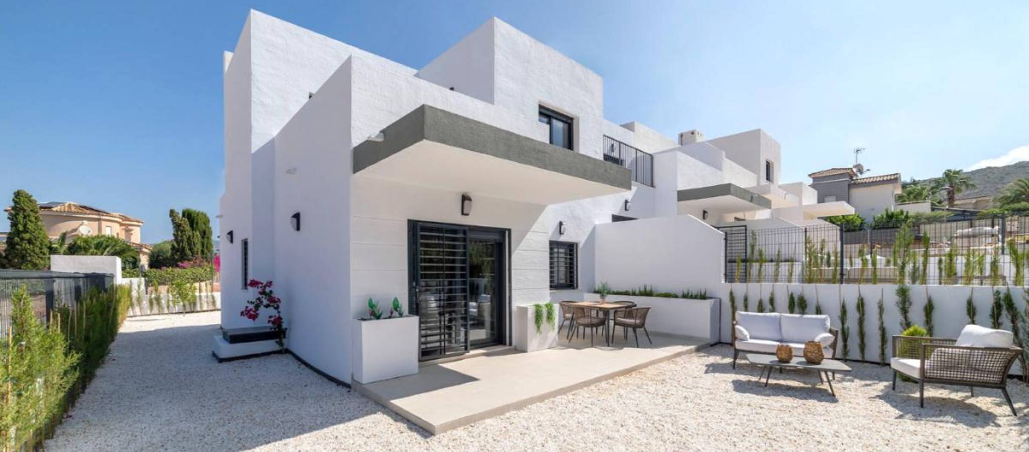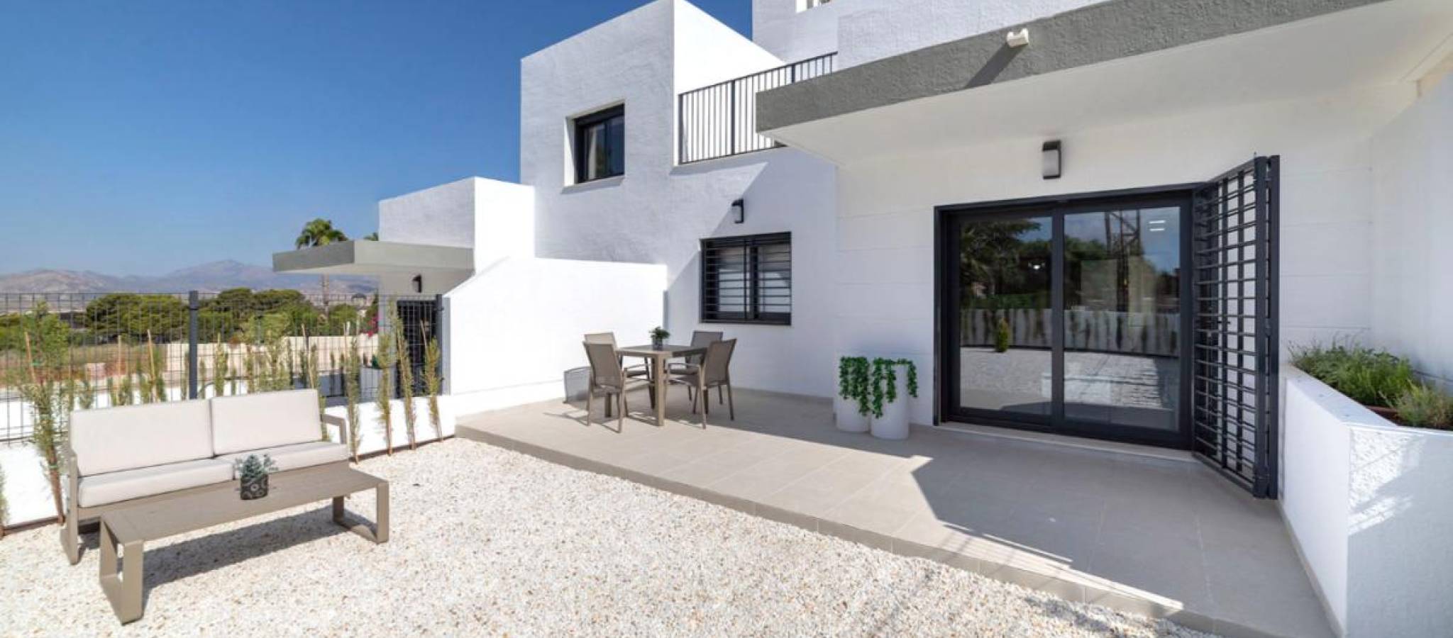 Oppdag en ny livsstil i et unikt miljø, omgitt av natur og bare noen minutter fra Alicantes kyst. Denne boligutviklingen tilbyr moderne frittstående, sammenkoblede og rekkehusboliger med 2 og 3 soverom, 2 bad, privat hage og parkering på eiendommen. Boligene er designet for komfort og ro, utstyrt med klimaanlegg og tilpasningsmuligheter for å passe din livsstil. Beboerne har tilgang til et felles svømmebasseng, boblebad og store grønne områder, perfekte for avslapning eller tid med familien. Den privilegerte beliggenheten ved foten av Sierra del Cabeço d'Or kombinerer fjellets ro med nærheten til Middelhavets strender. I tillegg vil du nyte nærheten til golfbaner, noe som gjør denne utviklingen til en utmerket mulighet både for helårsbolig og en investering i en sekundærbolig. Et sted hvor sjø, fjell og livskvalitet møtes.