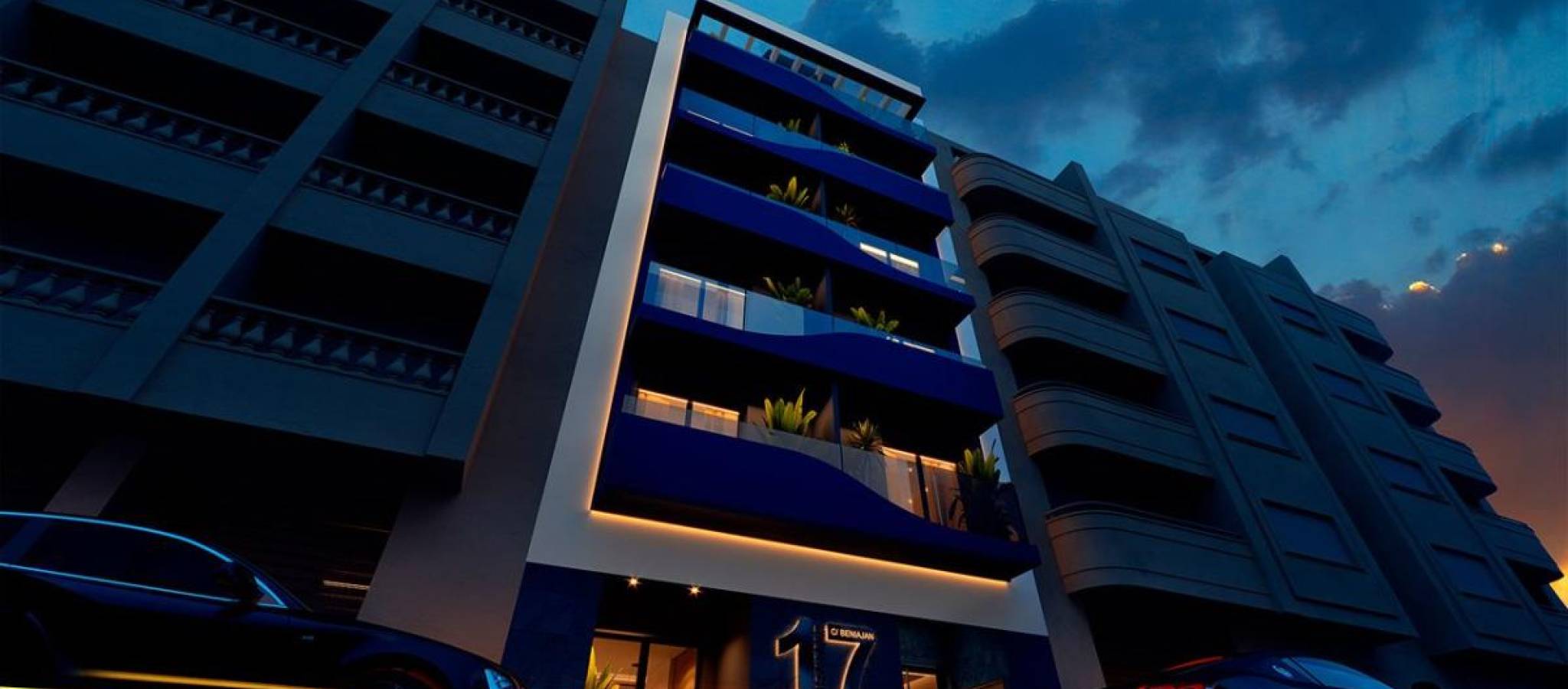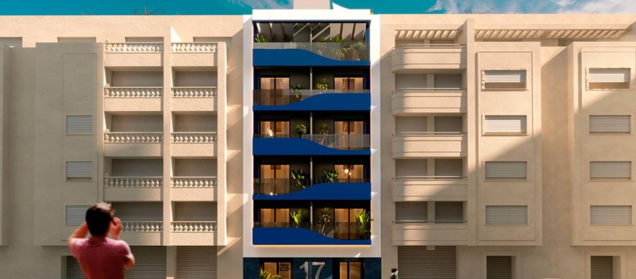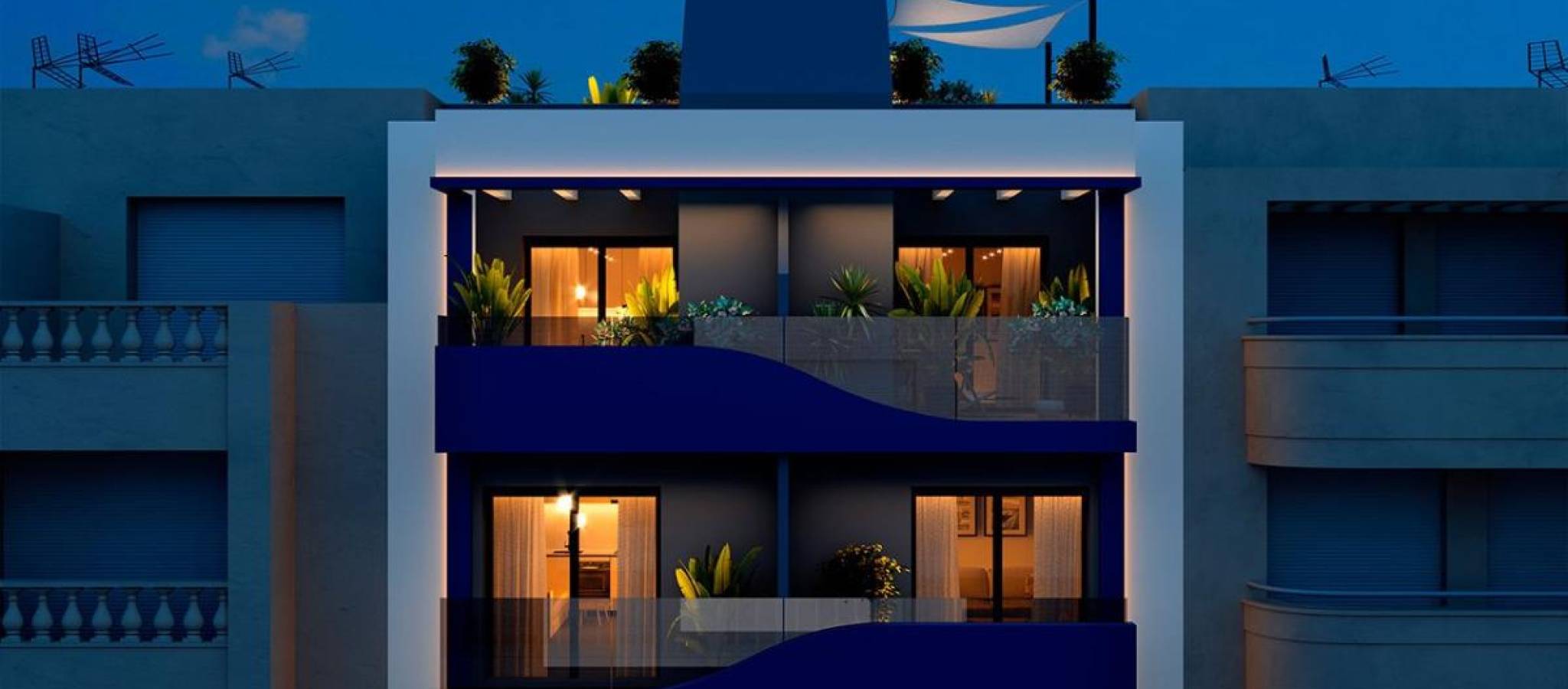 Utforsk en unik boligbygning med kun 11 leiligheter fordelt på fem etasjer, lokalisert nær de vakre strendene i Torrevieja. Dette stedet kombinerer moderne design med komfort og nærheten til havet, ideelt både som sekundær boliger og en pålitelig investering. Hver eiendom er designet med fokus på funksjonalitet og velvære, og tilbyr åpne rom som flyter sammen kjøkken, spisestue og stue. Leilighetene, tilgjengelige med ett eller to soverom og ett eller to bad, har private balkonger (unntatt første etasje) hvor du kan nyte utendørsmåltider og delvis havutsikt, noe som forsterker den autentiske middelhavslivsstilen. Bygningen tilbyr førsteklasses bygging og finish, med høy kvalitet fundament og struktur i armert betong. Fasader er kledd med materialer av høy kvalitet som sikrer holdbarhet og motstand. PVC-vinduer og laminerte glassrekkverk komplementerer utseendet og funksjonaliteten. Interiøret tilbyr forsterkede inngangsdører, innebygde skap, og avansert termisk og akustisk isolasjon. Kjøkken er fullt utstyrt og bad er designet med sanitærutstyr fra de beste merkene og moderne dusjkar. I tillegg integreres teknologi og komfort med forhåndsinstallert energieffektiv aircondition, LED-belysning og digital video inngangsdør. Som en ekstra verdi kan beboerne nyte en fellesterrasse på taket som inkluderer et privat basseng, avslapningsområder og panoramautsikt over havet, og skape den perfekte atmosfæren for å slappe av og sosialisere under Middelhavets sol. Med en beliggenhet kun få skritt fra havet, tilbyr dette prosjektet en fremragende beliggenhet nær strandpromenaden og marinaen. Med enkel tilgang til supermarkeder, restauranter og ulike tjenester, samt anerkjente golfbaner, er det et eksepsjonelt valg for å nyte alt det Torrevieja har å tilby. Det handler ikke bare om en leilighet, men om en eksklusiv livsstil ved havet. Ikke gå glipp av muligheten til å bo eller investere i en av de mest ønskede destinasjonene på Costa Blanca.