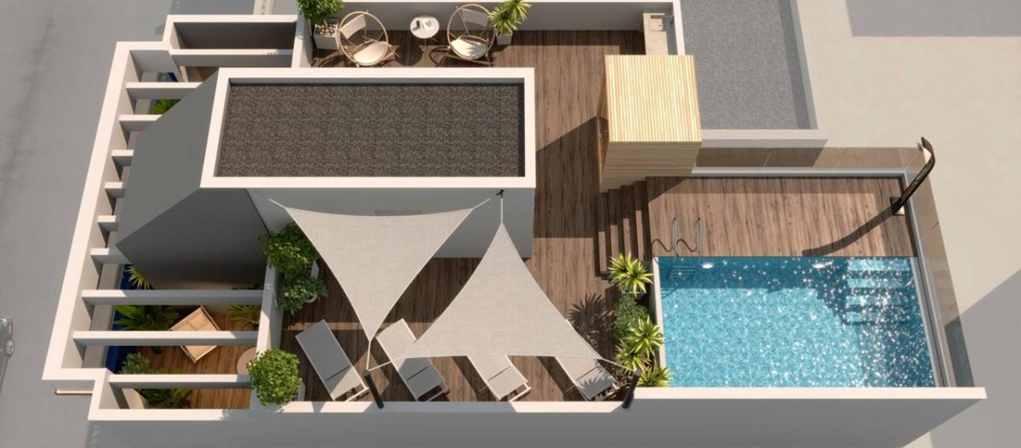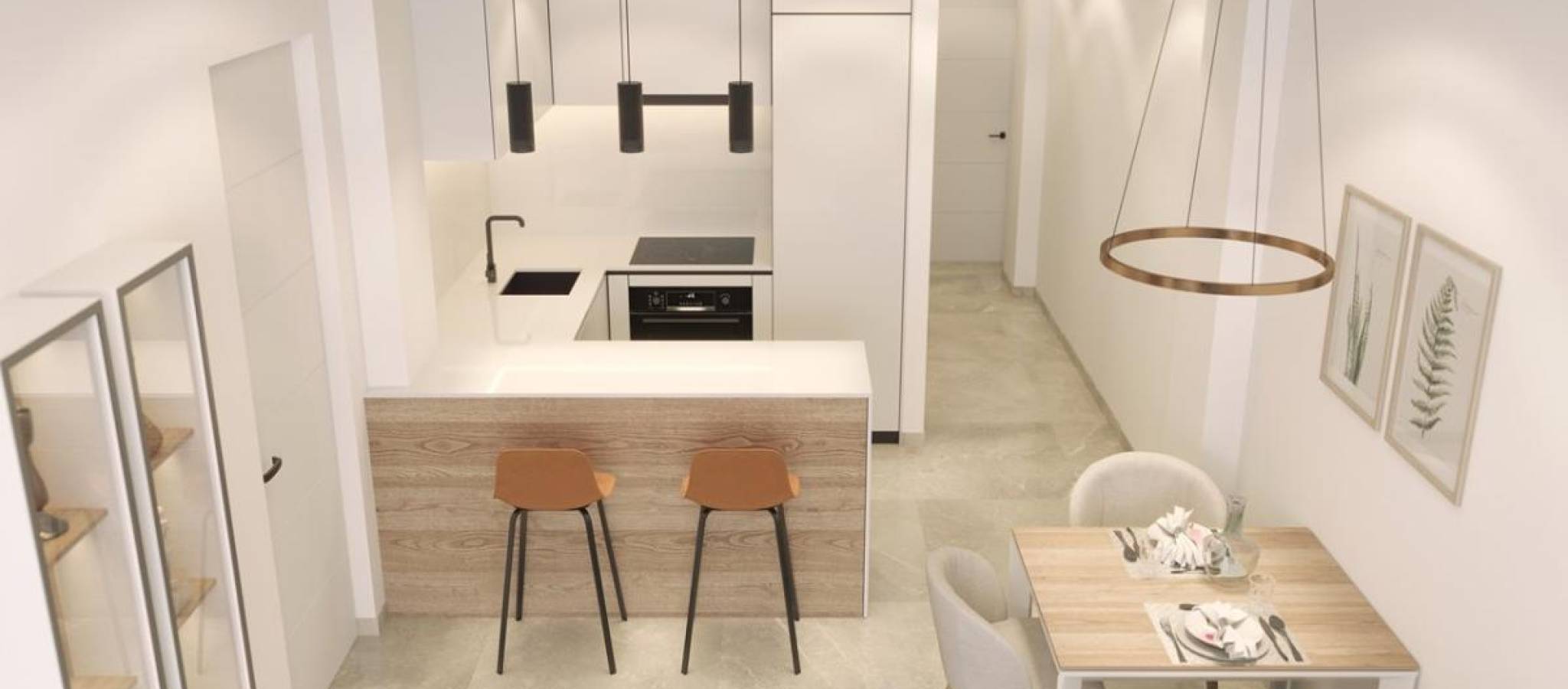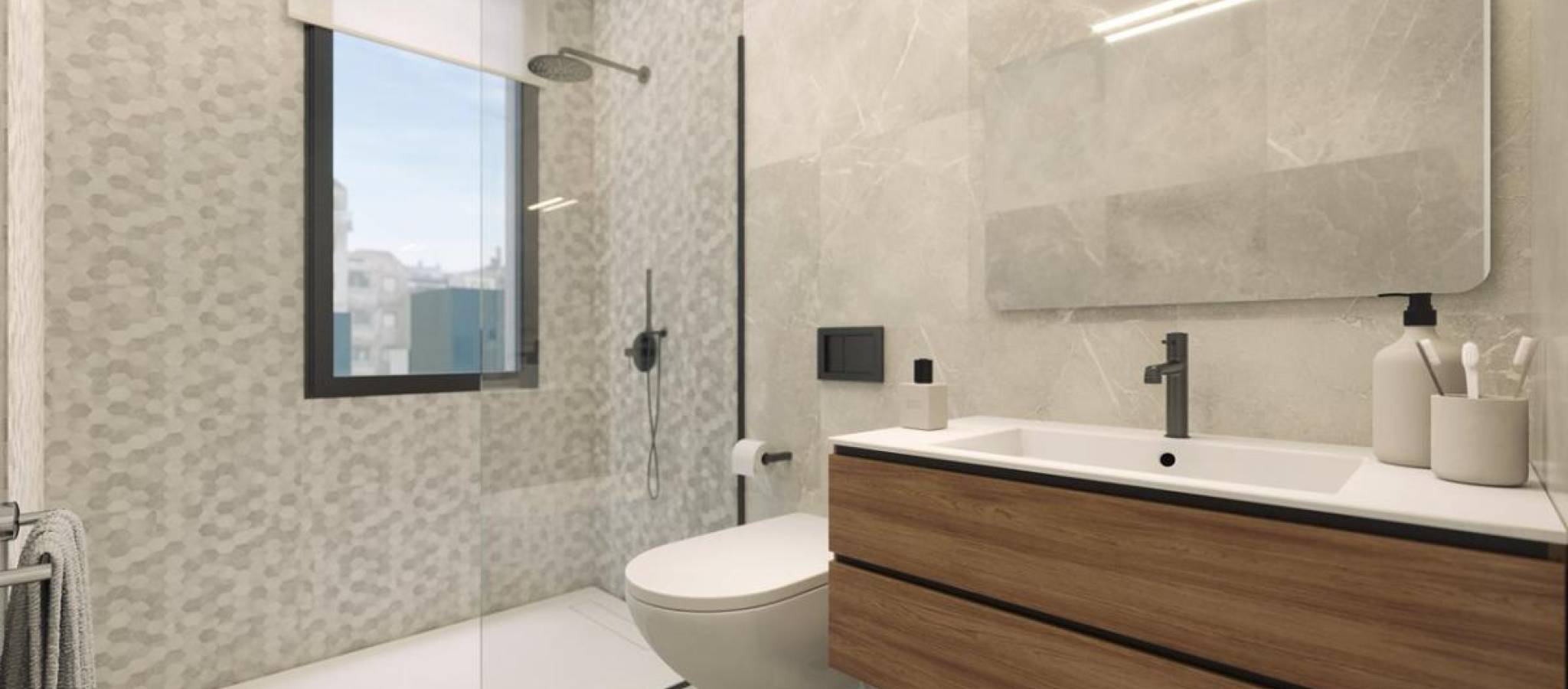 Utforsk en unik boligbygning med kun 11 leiligheter fordelt på fem etasjer, lokalisert nær de vakre strendene i Torrevieja. Dette stedet kombinerer moderne design med komfort og nærheten til havet, ideelt både som sekundær boliger og en pålitelig investering. Hver eiendom er designet med fokus på funksjonalitet og velvære, og tilbyr åpne rom som flyter sammen kjøkken, spisestue og stue. Leilighetene, tilgjengelige med ett eller to soverom og ett eller to bad, har private balkonger (unntatt første etasje) hvor du kan nyte utendørsmåltider og delvis havutsikt, noe som forsterker den autentiske middelhavslivsstilen. Bygningen tilbyr førsteklasses bygging og finish, med høy kvalitet fundament og struktur i armert betong. Fasader er kledd med materialer av høy kvalitet som sikrer holdbarhet og motstand. PVC-vinduer og laminerte glassrekkverk komplementerer utseendet og funksjonaliteten. Interiøret tilbyr forsterkede inngangsdører, innebygde skap, og avansert termisk og akustisk isolasjon. Kjøkken er fullt utstyrt og bad er designet med sanitærutstyr fra de beste merkene og moderne dusjkar. I tillegg integreres teknologi og komfort med forhåndsinstallert energieffektiv aircondition, LED-belysning og digital video inngangsdør. Som en ekstra verdi kan beboerne nyte en fellesterrasse på taket som inkluderer et privat basseng, avslapningsområder og panoramautsikt over havet, og skape den perfekte atmosfæren for å slappe av og sosialisere under Middelhavets sol. Med en beliggenhet kun få skritt fra havet, tilbyr dette prosjektet en fremragende beliggenhet nær strandpromenaden og marinaen. Med enkel tilgang til supermarkeder, restauranter og ulike tjenester, samt anerkjente golfbaner, er det et eksepsjonelt valg for å nyte alt det Torrevieja har å tilby. Det handler ikke bare om en leilighet, men om en eksklusiv livsstil ved havet. Ikke gå glipp av muligheten til å bo eller investere i en av de mest ønskede destinasjonene på Costa Blanca.